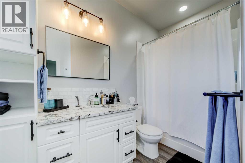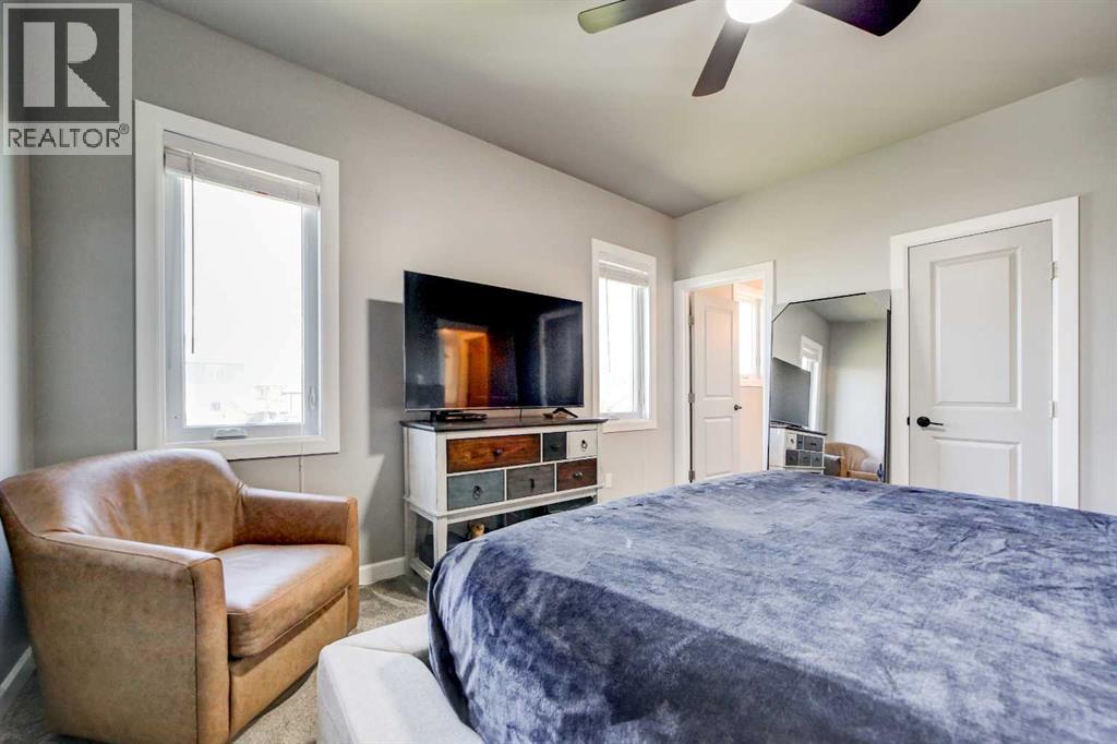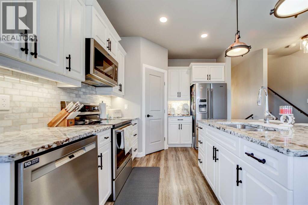 This three-bedroom, three-bathroom home was built in 2022, and has been very gently lived in. The bright, open living area features granite countertops in the kitchen, and mountain views from the deck off the dining room. The layout provides privacy with the primary bedroom and ensuite on the main level and two additional bedrooms on the second level. The unfinished basement has large windows and potential for more bedrooms or a great rec room, with plumbing for another three-piece bathroom, and a gas line for a fireplace. Ceramic tinted windows keep the UV rays and heat out, and custom blinds have been installed on the main level and upstairs. The nearly 10,000 square foot yard is fully fenced with lots of room for kids or pets. There is a 8' x 16' shed, colour matched to the house, that provides storage for your lawn mower, patio furniture, and whatever else you want out of your way in the heated, double attached garage. This home is move-in ready. Call your favourite REALTOR® to schedule a viewing today. (id:28267)