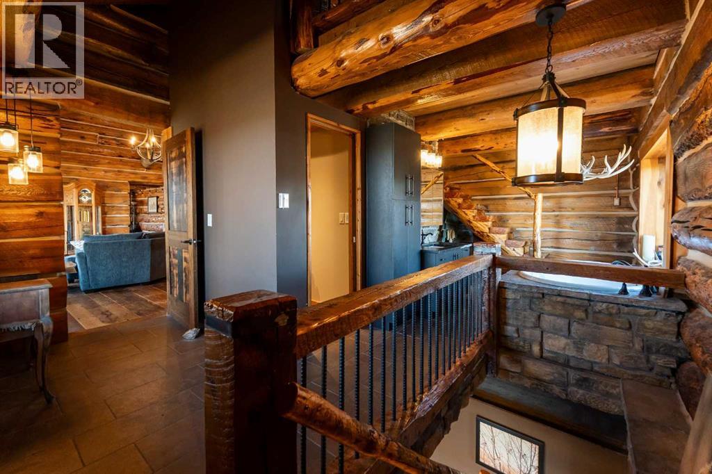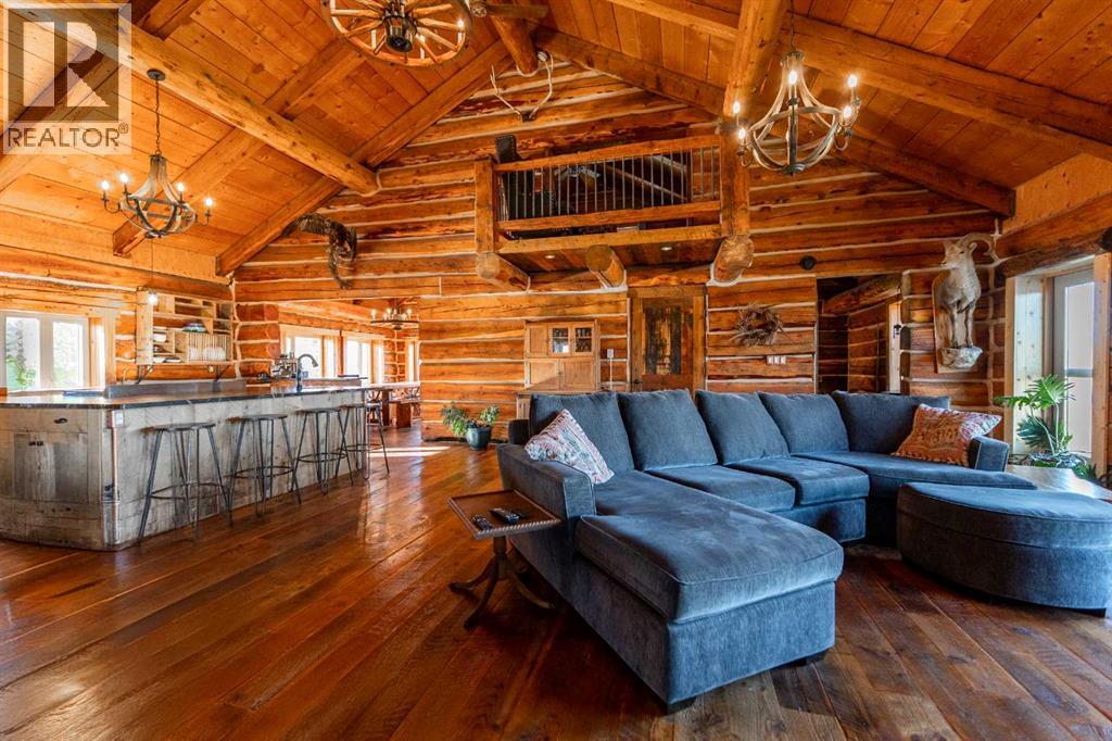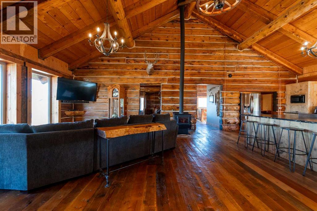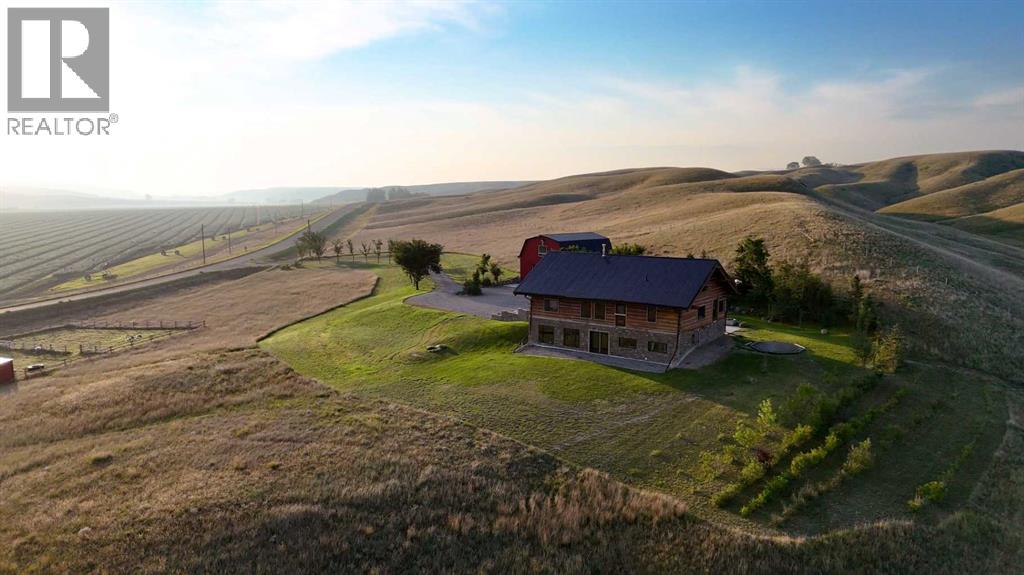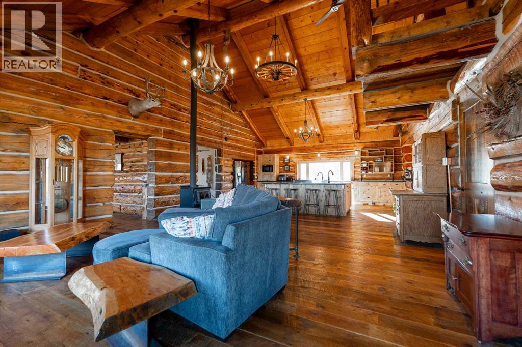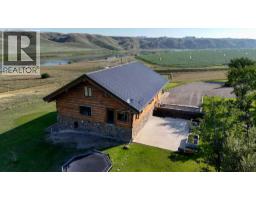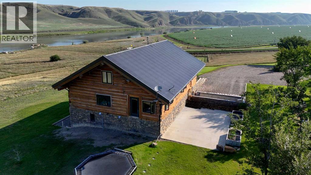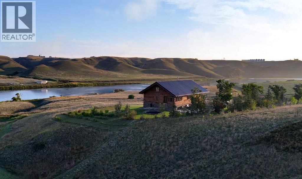 Tucked along the banks of the Oldman River, this handcrafted log home rests on over 15 acres of private countryside, framed by rolling coulees, endless skies, and uninterrupted water views. Built in 2018, it’s a home that tells a story — one written in massive timber beams, soaring vaulted ceilings, and the warmth of reclaimed wood floors that echo the rhythm of the land outside.At its heart, a grand great room opens under exposed log walls and wagon-wheel chandeliers — the kind of space that feels both grounded and alive. The open-concept kitchen pairs old-world craftsmanship with modern sensibility, complete with stone counters, a central island, and premium appliances. Gather around the wood-burning stove, step out onto the deck at golden hour, and watch the landscape fade into a quiet that few ever get to call their own.Below, a fully finished walk-out basement offers more living space and additional bedrooms for family or guests — all with the same sense of warmth and connection to nature.Beyond the main home, a detached heated garage and workshop with a full second-floor loft extends the property’s versatility — perfect for a studio, guest suite, or private office overlooking the river valley.Whether you’re drawn to its architectural soul, the peace of its setting, or the sheer rarity of a property like this. (id:28267)