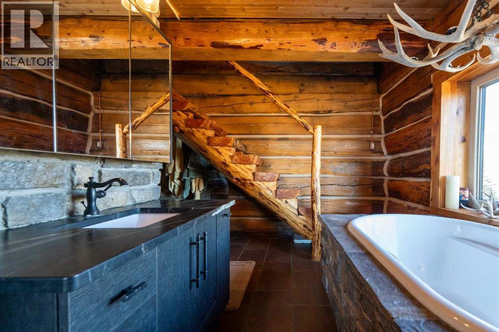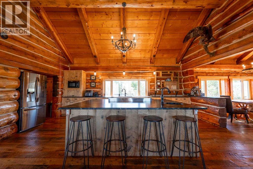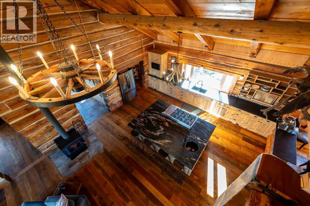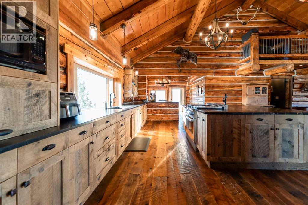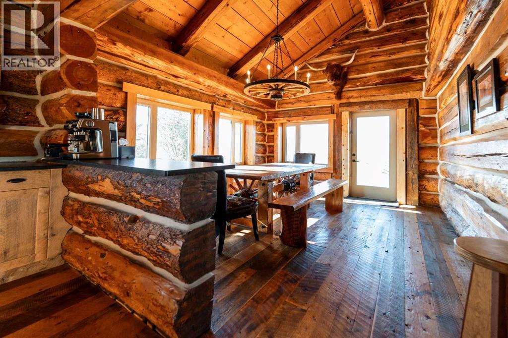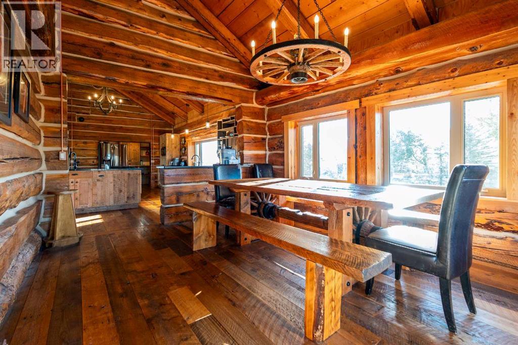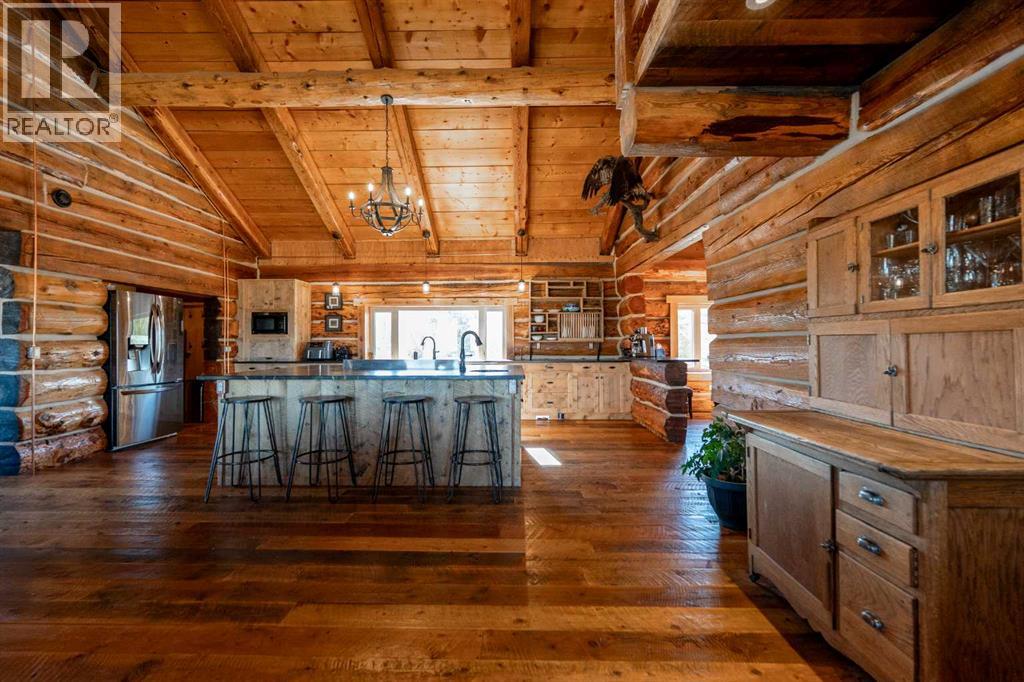 Tucked along the banks of the Oldman River, this handcrafted log home rests on over 15 acres of private countryside, framed by rolling coulees, endless skies, and uninterrupted water views. Built in 2018, it’s a home that tells a story — one written in massive timber beams, soaring vaulted ceilings, and the warmth of reclaimed wood floors that echo the rhythm of the land outside.At its heart, a grand great room opens under exposed log walls and wagon-wheel chandeliers — the kind of space that feels both grounded and alive. The open-concept kitchen pairs old-world craftsmanship with modern sensibility, complete with stone counters, a central island, and premium appliances. Gather around the wood-burning stove, step out onto the deck at golden hour, and watch the landscape fade into a quiet that few ever get to call their own.Below, a fully finished walk-out basement offers more living space and additional bedrooms for family or guests — all with the same sense of warmth and connection to nature.Beyond the main home, a detached heated garage and workshop with a full second-floor loft extends the property’s versatility — perfect for a studio, guest suite, or private office overlooking the river valley.Whether you’re drawn to its architectural soul, the peace of its setting, or the sheer rarity of a property like this. (id:28267)