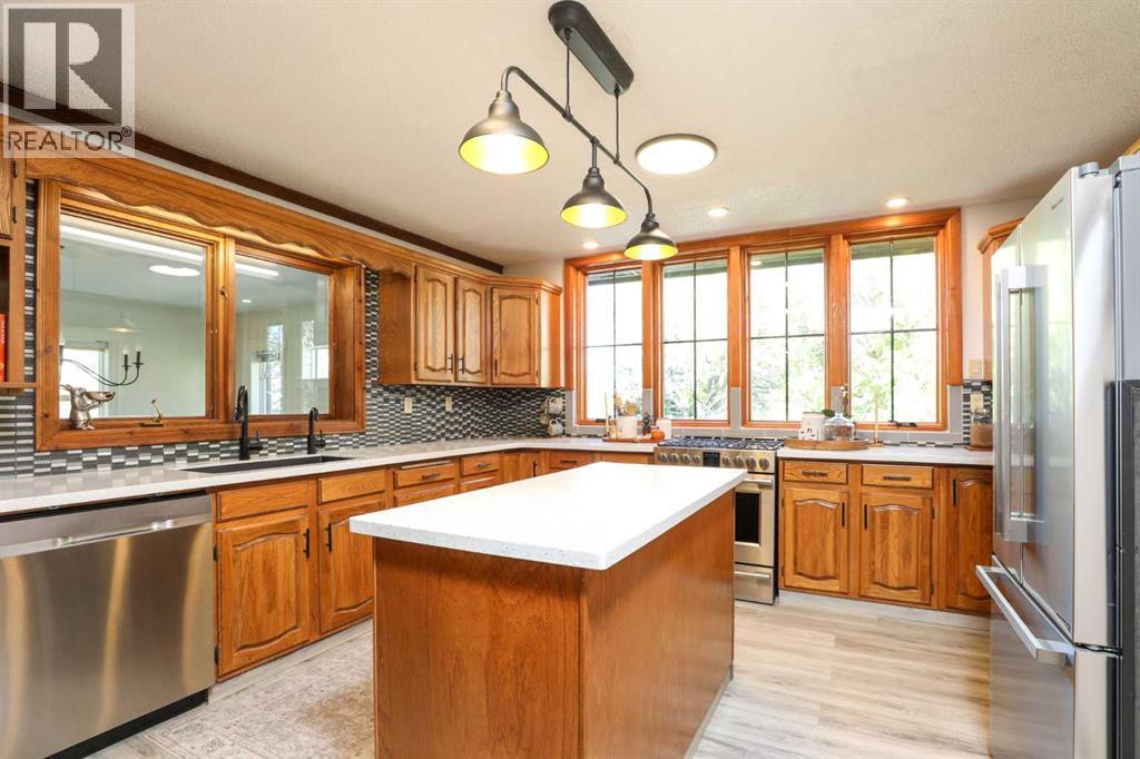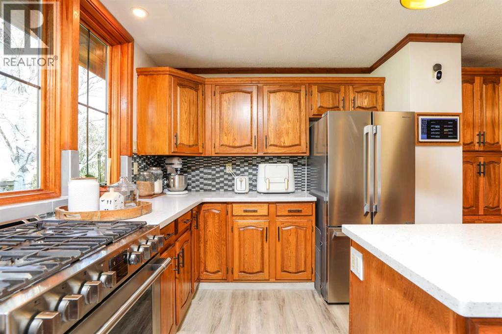 Discover a truly exceptional property offering the perfect blend of privacy, expansive living space, and an unparalleled location. Rarely does a home hit the market where the "invisible" details have been as cared for as the aesthetics. This nearly 3,000 sq ft residence has undergone a comprehensive structural and cosmetic overhaul, including a newer roof truss system, reinforced joists, improved insulation, and a complete electrical update. The heating system has been modernized with a high-efficiency radiant hot water setup featuring individual touchscreen zone controls, complemented by Split/Mini AC units for year-round climate perfection. Step inside the stunning 2-Storey foyer where where bespoke reclaimed fir accents set a tone of rustic elegance and high-end craftsmanship. The main level is designed for both grand entertaining and cozy family life. The massive updated kitchen is a chef's dream, boasting abundant cabinetry, sleek Corian countertops, modern appliances, and a central island. Four newly installed windows are perfectly situated to capture year-round morning sunrises, flooding the space with warm, natural light. The expansive dining room provides ample space for hosting large gatherings, and the adjacent sitting room is a cozy haven with a charming wood-burning fireplace. The true showstopper is the immense TV room, featuring dramatic 12-foot ceilings and oversized windows that flood the space with natural light and offer picturesque views of the park. This versatile room is ideal for a home theater, studio, or a vibrant playroom. Upstairs, the well-designed layout offers three spacious bedrooms, including a master suite with a 3pc ensuite. All bathrooms have been modernized with new fixtures, finishes, and improved ventilation. Outside, the property is secured by an attractive 7-foot stucco perimeter wall, ensuring your over 9,000 sq ft lot remains a silent sanctuary. For the buyer who demands both architectural beauty and mechanical excellence, this park-backing estate is unparalleled. Schedule your private showing today! (id:28267)