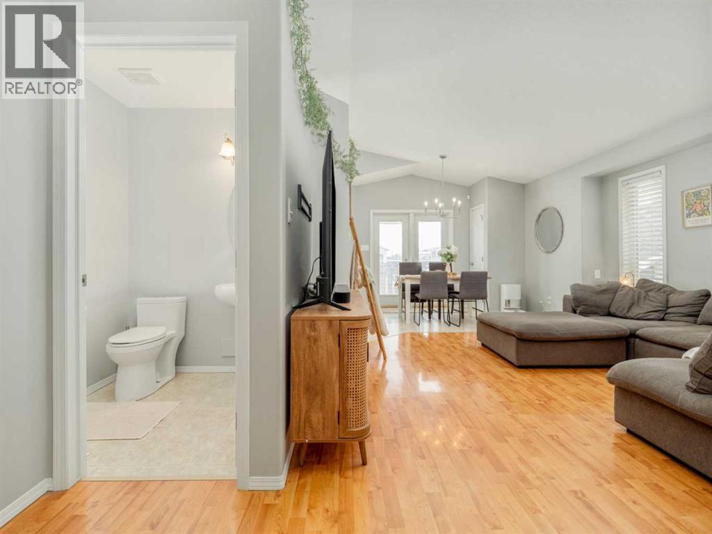 Fantastically appointed bi-level home in West Lethbridge with nice open floor plan. Welcoming entry open to above with front closet. Main level features vaulted ceilings. Living room has laminate flooring. Dining room features a good space with garden doors to deck out back. Kitchen features upper white cabinets and lower lighter blue cupboards. There is a full appliance package and a pantry. Primary bedroom is also on this level and features a full ensuite with tub/shower bath combo and large walk-in closet. The main floor also has another 2 piece bathroom. Basement is fully developed with large family room that includes an entertainment unit with electric fireplace. Basement also has 2 good size bedrooms and another full bath with tub/shower combo. There is also good storage under the stairs. Home has convenience of central a/c for the warmer months. Yard is fenced and has gravel on the side, and includes a hot tub, and a patio with pergola. Parking pad out back for 2 vehicles with alley access. Just down the alley is access to WIllow Pointe Park and home is within walking distance to Willow Brook Park and Mike Mountain Horse Elementary School and Park. (id:28267)