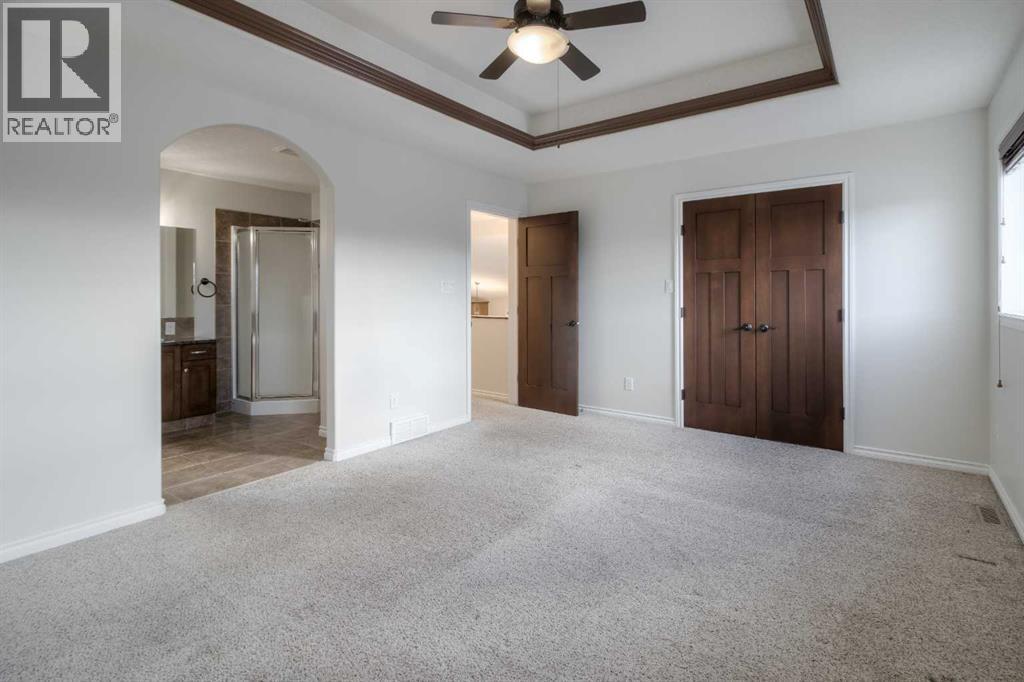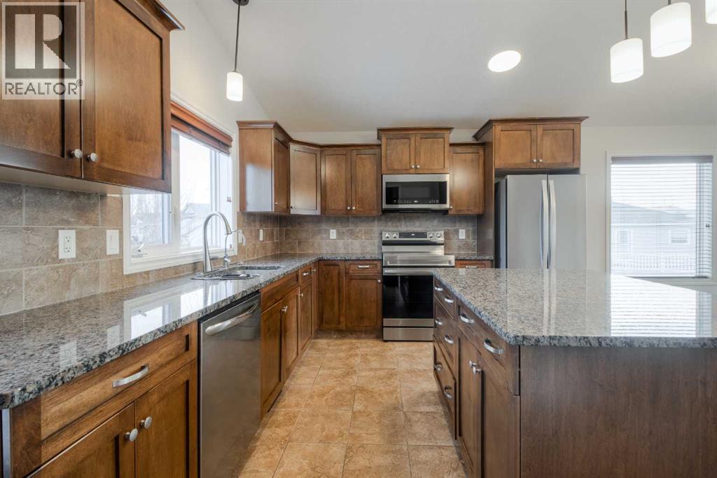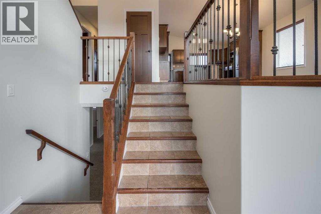 Welcome to 11 Cougar Cove North! This large bi-level home is located on a quiet street in the north Lethbridge community of Uplands. The main floor includes rich wood tones of maple cabinets, real hardwood floors, and spindle wood railings. Vaulted ceilings through the main floor living room, dining room, and kitchen provide a wide open feel accented by large windows that send natural light through this area. Two bedrooms and a 4-piece bathroom can be found on the main floor with the laundry room conveniently located adjacent to all. The secluded primary bedroom is located over the attached double garage and houses a large ensuite and walk-in closet. The basement in this bi-level is fully developed and is home to one of the largest family rooms you'll find at almost 750 square feet! You'll also find another bedroom in the basement as well as a full 4-piece bathroom and storage room. A solid home with plenty of space on a fully fenced large yard with alley access. Nothing to do but move in and enjoy. (id:28267)