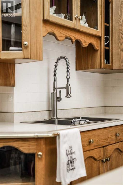 This home unfolds with character at every turn. Statement chandeliers, detailed trim work, and solid entrance doors immediately set the tone, creating a sense of craftsmanship and intention that carries throughout the space. The style blends classic Victorian influence with thoughtful modern updates, giving the home personality and presence without feeling overdone. Every detail feels considered, creating that quiet “wow” factor the moment you walk in. The upper level is designed for gathering. The kitchen, dining area, and living room are all connected, creating a natural flow for family time, entertaining, and everyday living. The living room centres around a gas fireplace and is framed by large windows that bring in mountain views and natural light. The kitchen offers generous space for cooking and hosting, while the dining area comfortably accommodates large family meals and celebrations. Six bedrooms and three and a half bathrooms provide flexibility for a growing family, guests, or shared living, while oversized washer and dryer units add ease to daily routines. The yard feels like something out of a magazine. Set on a rare 12,000 square foot in-town lot, the outdoor space is beautifully landscaped with mature trees, garden areas, underground sprinklers, and a pond that adds a sense of calm and privacy. A pergola and fire pit area create an inviting place to gather outdoors, while the fully fenced yard offers both beauty and function. There is ample parking, a double detached garage, and a 266 square foot breezeway that works well as a gym, hobby space, or gear storage, seamlessly connecting indoor living with the outdoors. The fully legal suite, completed in 2024, is bright, well finished, and thoughtfully laid out. It includes a full kitchen with updated cabinetry and appliances, a comfortable living area, a spacious bedroom, and a modern bathroom with clean, neutral finishes. Large windows bring in natural light, giving the space an open and welcoming feel that stands on its own. Separate laundry adds privacy and convenience, making this a functional and self contained living space. Whether used as a long term rental, guest accommodation, or additional space for extended family. Located just steps from the Crowsnest River, the community swimming pool, and local shops, this home is deeply connected to the Blairmore lifestyle. Views of Turtle Mountain and Pass Powderkeg Ski Hill are part of the daily backdrop, with outdoor recreation, walking paths, and mountain adventures close at hand. This is a home that offers space, character, and flexibility, grounded in a setting that makes everyday life feel rich and intentional. (id:28267)