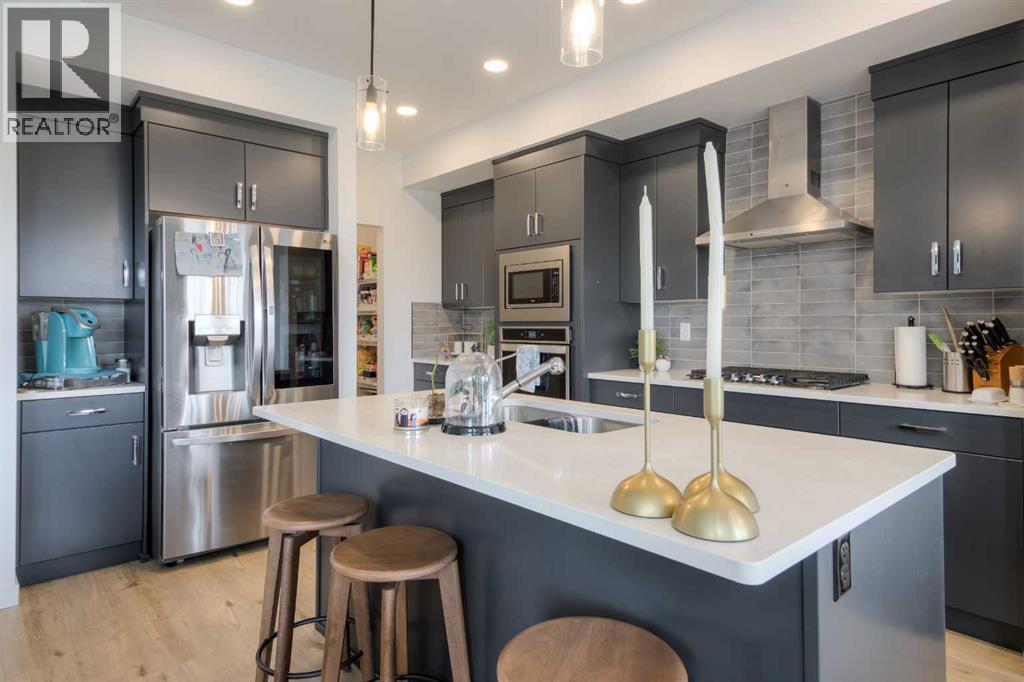A gorgeous, fully finished 2 storey backing onto a green space! This delightful home is stylish, modern and enjoys a walk-out basement, 3 living rooms and tons of extras. There's plentiful natural light in this home with huge windows, a walk-through pantry off of the mud room, quartz counters in your kitchen and a gas fireplace in your living room! There's a cozy living room upstairs, 3 bedrooms, 4 piece bathroom and laundry room with a sink! The primary offers a well-sized walk in closet and 5 piece ensuite with gorgeous soaker tub! The finished basement is a great entertaining space with wet bar, secondary fireplace and access to your covered patio. (id:28267)