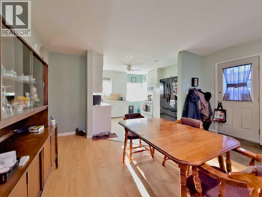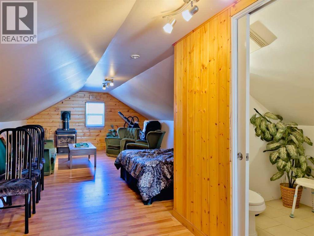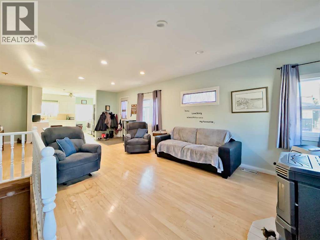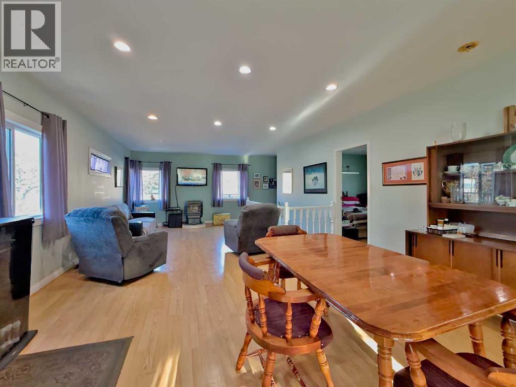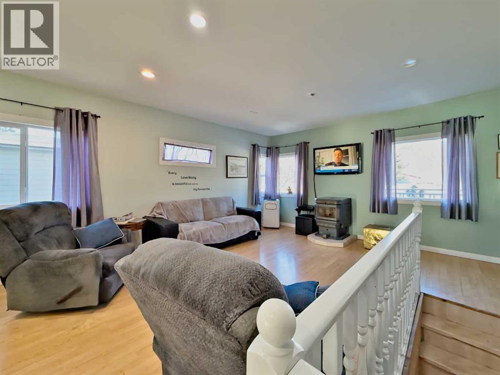Welcome to this inviting Blairmore home where comfort and mountain-town living come together. The bright, open-concept main floor features a welcoming kitchen, dining, and living space. A pellet stove efficiently warms the main level, creating a cozy atmosphere through the colder seasons.Upstairs, you’ll find a generously sized bedroom with ample room to create additional living or workspace, complemented by a convenient 2-piece bathroom/ensuite and a gas fireplace that adds warmth and character. The full, undeveloped basement provides plenty of storage space, and possibility for further development, with a walk up entrance at the rear of the home. Numerous updates—including vinyl windows, a high-efficiency furnace, and a durable metal roof—add peace of mind and long-term value.Set in a central Blairmore location close to shops, services, and amenities, this property also offers abundant off-street parking and plenty of room for your RV. (id:28267)