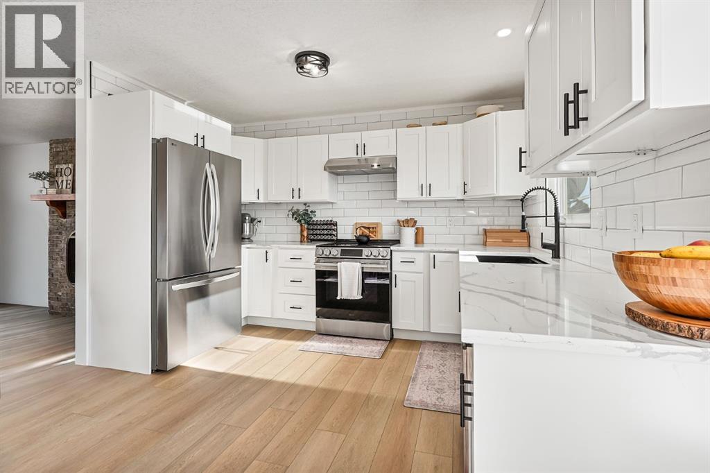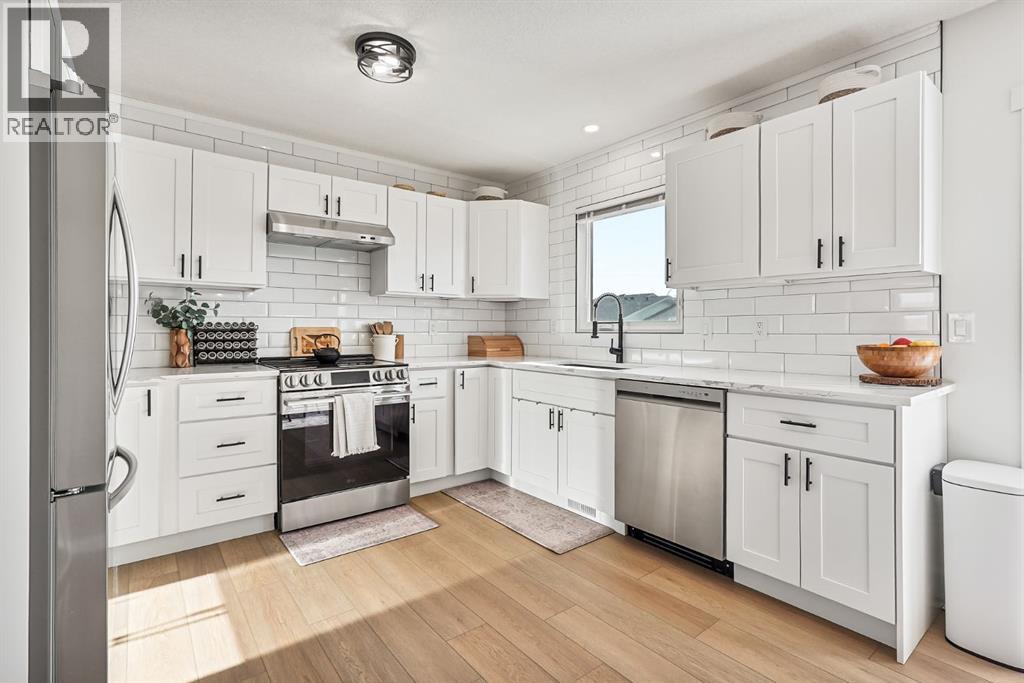 Welcome to 13 Rice Bay SE, nestled in a beautiful, quiet cul-de-sac in sought-after Medicine Hat SE. This fully updated home offers exceptional curb appeal with new cement board siding, a vinyl fence, and a double attached garage.Inside, you’ll find modern finishes throughout, including durable vinyl plank flooring and ceramic tile in the bathrooms. The stunning updated kitchen features quartz countertops, updated appliances, and a clean, contemporary design perfect for everyday living and entertaining.The upper level offers 3 spacious bedrooms and 1.5 bathrooms, while both the main floor and basement feature cozy wood-burning fireplaces — ideal for those chilly Alberta evenings. Custom railings add a stylish architectural touch.The walkout basement provides additional functional living space, including a large gym area and another bedroom, making it perfect for growing families or guests. All windows and appliances have been updated, offering peace of mind and improved efficiency.This move-in-ready home combines quality upgrades, space, and an unbeatable cul-de-sac location — a must-see! (id:28267)