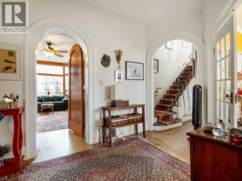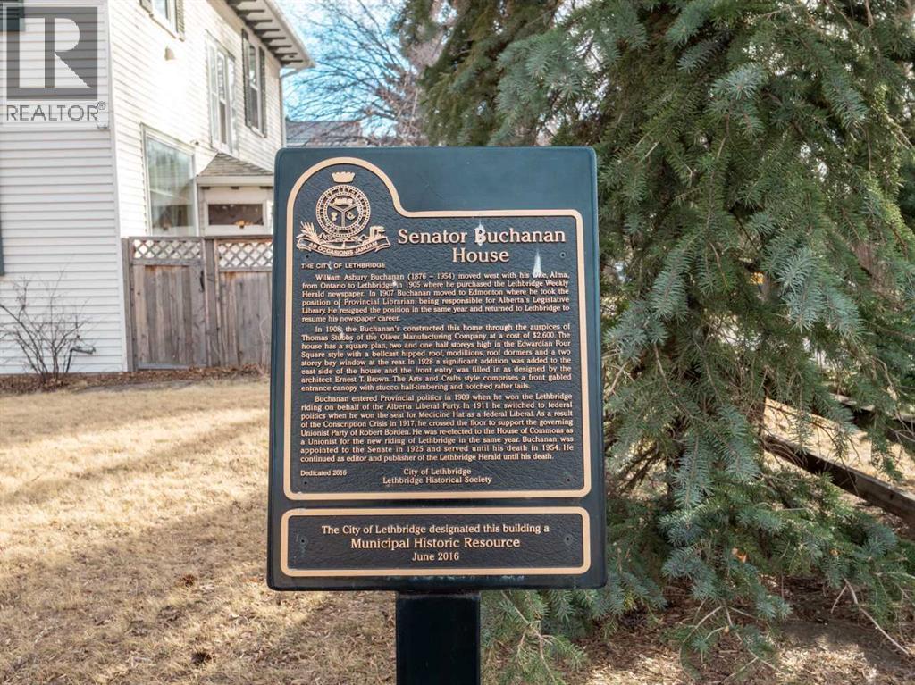Welcome to a RARE piece of Lethbridge history - the Senator Buchanan House, an elegant Edwardian era residence built in 1908 and rich with original architectural character. This distinguished home stands as a testament to early 20th century craftsmanship and heritage charm. Step inside to discover spacious principal rooms with original details including crafted wood trim and paneling, hardwood floors, as well as arched openings and doors. The main level is ideal for entertaining, gracious with space, while the second floor offers generous bedroom sizes and the flexibility to turn the study and attic into 2 more bedrooms. The backyard offers tons of space as well as an extra long single detached garage with alley access. Whether you're a historical enthusiast or a family seeking a unique legacy home this home blends historic charm with exciting potential! (id:28267)