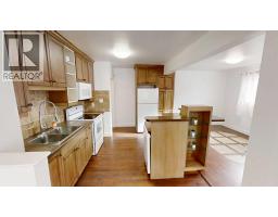 Cute 4 bedroom, 2 bathroom bungalow with detached garage conveniently located close to the hospital and schools. Main floor offers hardwood with tile inlay as well as vinyl and cork flooring, an open concept kitchen, living and dining, 2 bedrooms and 4 piece bathroom with tiled shower surround. The kitchen has been updated to include maple cabinets with eat up island and new fridge, stove and dishwasher. Downstairs offers a large bedroom with walk in closet (previously used as the primary), this room would also function as a family room with walk in storage space. Down here you also have another bedroom or office/workout/craft space (no closet) and 3 piece bathroom with tiled walk in shower. The side entry offers ease of access from your rear off street parking and detached garage (with power, shelving and garage opener) coupled with the laundry location, offers shared access for potential for basement suite. This home also offers fiber board siding, new shingles on the front side of the house and PVC windows. (id:28267)