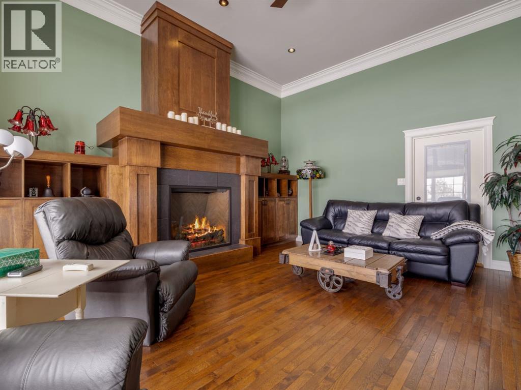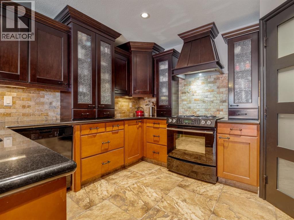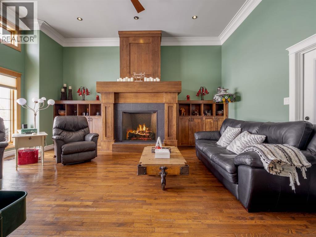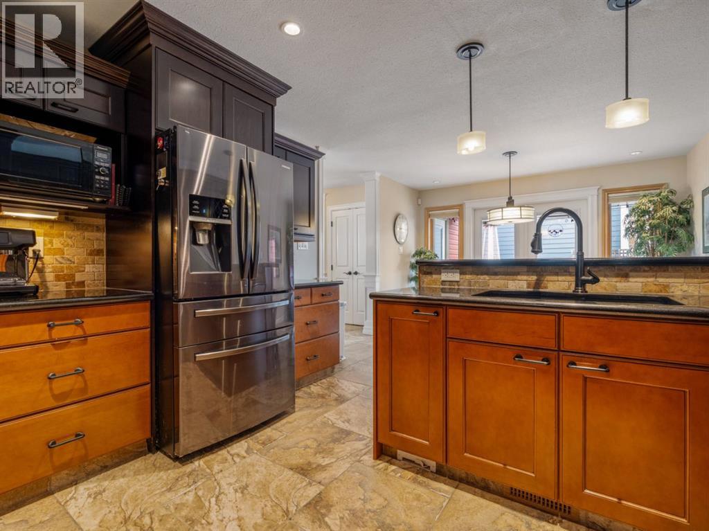 Imagine starting your day surrounded by peaceful views and quiet natural beauty — a distinguished residence in Riverstone where timeless architecture and refined comfort create a home that feels both elegant and welcoming. Custom built and beautifully appointed, this exceptional home captures scenic views of the natural habitat and parkland across, offering a serene backdrop for everyday living. Rich antique oak hardwood floors, soaring 12-foot ceilings, detailed crown mouldings, and a striking custom mantle with gas fireplace showcase exceptional craftsmanship while creating an atmosphere of warmth and quiet sophistication. Thoughtfully designed with beautifully defined living spaces — a refreshing alternative to typical open layouts — this home offers inviting rooms to gather, relax, and enjoy. The gourmet kitchen is designed for both relaxed mornings and effortless entertaining, featuring in-floor heating, maple cabinetry with corner pull-outs, an appliance lift, granite countertops, and a tumbled travertine backsplash, with quality finishes carried throughout. The adjoining nook opens to a sheltered private courtyard deck, an intimate outdoor setting perfect for your morning coffee or evenings with family and friends. The main floor also offers a laundry room, 3-piece bath with body jets, and a versatile office or bedroom with direct access to a second deck and south-facing patio, providing multiple outdoor spaces to enjoy throughout the day. The upper level is devoted entirely to a luxurious primary retreat, designed as a private sanctuary with a spa-inspired 5-piece ensuite featuring a 10ft. granite vanity, heated floors, soaker tub, and double shower with body jets. Two walk-in closets, a second laundry area, and a private balcony with tranquil views create a peaceful place to unwind. The fully developed lower level extends the home’s comfort with cork flooring, two additional bedrooms, a spacious family room with a second fireplace, full bath, and media room ideal for family movie nights. With 3596sqft of total living space, exceptional custom construction, and a rare collection of outdoor living areas, this home offers a lifestyle defined by comfort, character, and quiet elegance in one of Riverstone’s most desirable settings — a place to be enjoyed for years to come. (id:28267)