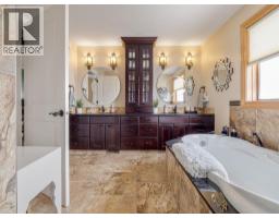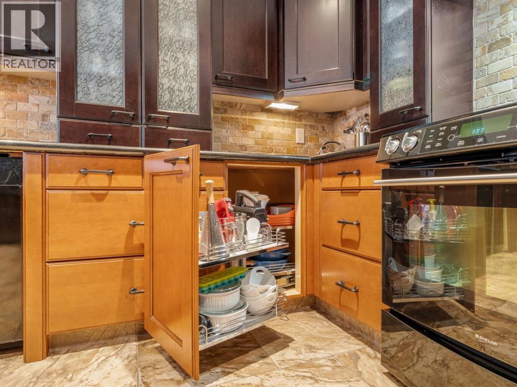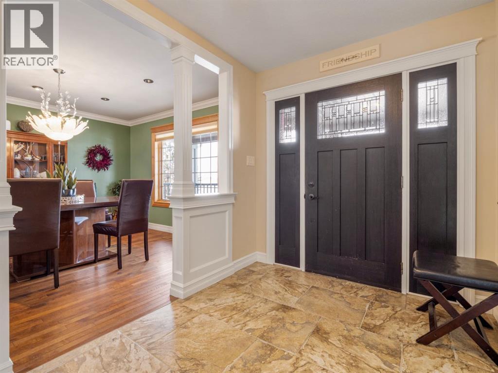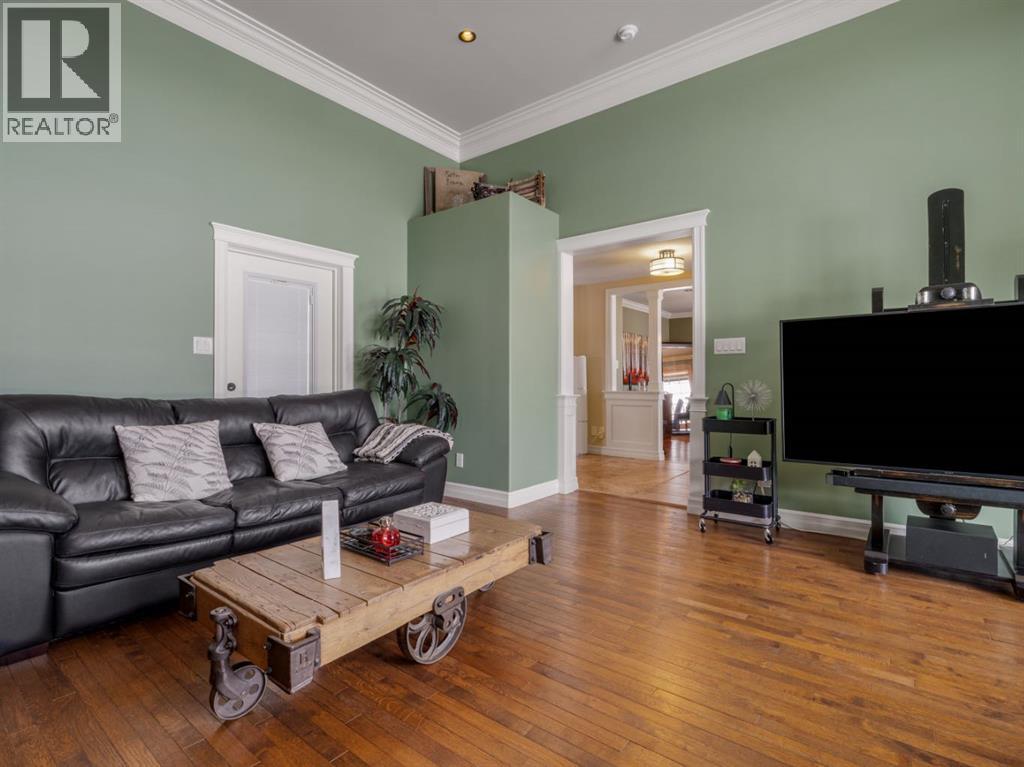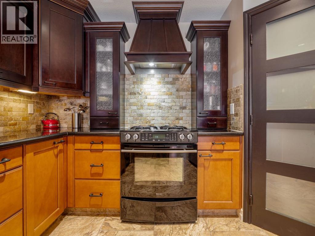 Imagine starting your day surrounded by peaceful views and quiet natural beauty — a distinguished residence in Riverstone where timeless architecture and refined comfort create a home that feels both elegant and welcoming. Custom built and beautifully appointed, this exceptional home captures scenic views of the natural habitat and parkland across, offering a serene backdrop for everyday living. Rich antique oak hardwood floors, soaring 12-foot ceilings, detailed crown mouldings, and a striking custom mantle with gas fireplace showcase exceptional craftsmanship while creating an atmosphere of warmth and quiet sophistication. Thoughtfully designed with beautifully defined living spaces — a refreshing alternative to typical open layouts — this home offers inviting rooms to gather, relax, and enjoy. The gourmet kitchen is designed for both relaxed mornings and effortless entertaining, featuring in-floor heating, maple cabinetry with corner pull-outs, an appliance lift, granite countertops, and a tumbled travertine backsplash, with quality finishes carried throughout. The adjoining nook opens to a sheltered private courtyard deck, an intimate outdoor setting perfect for your morning coffee or evenings with family and friends. The main floor also offers a laundry room, 3-piece bath with body jets, and a versatile office or bedroom with direct access to a second deck and south-facing patio, providing multiple outdoor spaces to enjoy throughout the day. The upper level is devoted entirely to a luxurious primary retreat, designed as a private sanctuary with a spa-inspired 5-piece ensuite featuring a 10ft. granite vanity, heated floors, soaker tub, and double shower with body jets. Two walk-in closets, a second laundry area, and a private balcony with tranquil views create a peaceful place to unwind. The fully developed lower level extends the home’s comfort with cork flooring, two additional bedrooms, a spacious family room with a second fireplace, full bath, and media room ideal for family movie nights. With 3596sqft of total living space, exceptional custom construction, and a rare collection of outdoor living areas, this home offers a lifestyle defined by comfort, character, and quiet elegance in one of Riverstone’s most desirable settings — a place to be enjoyed for years to come. (id:28267)