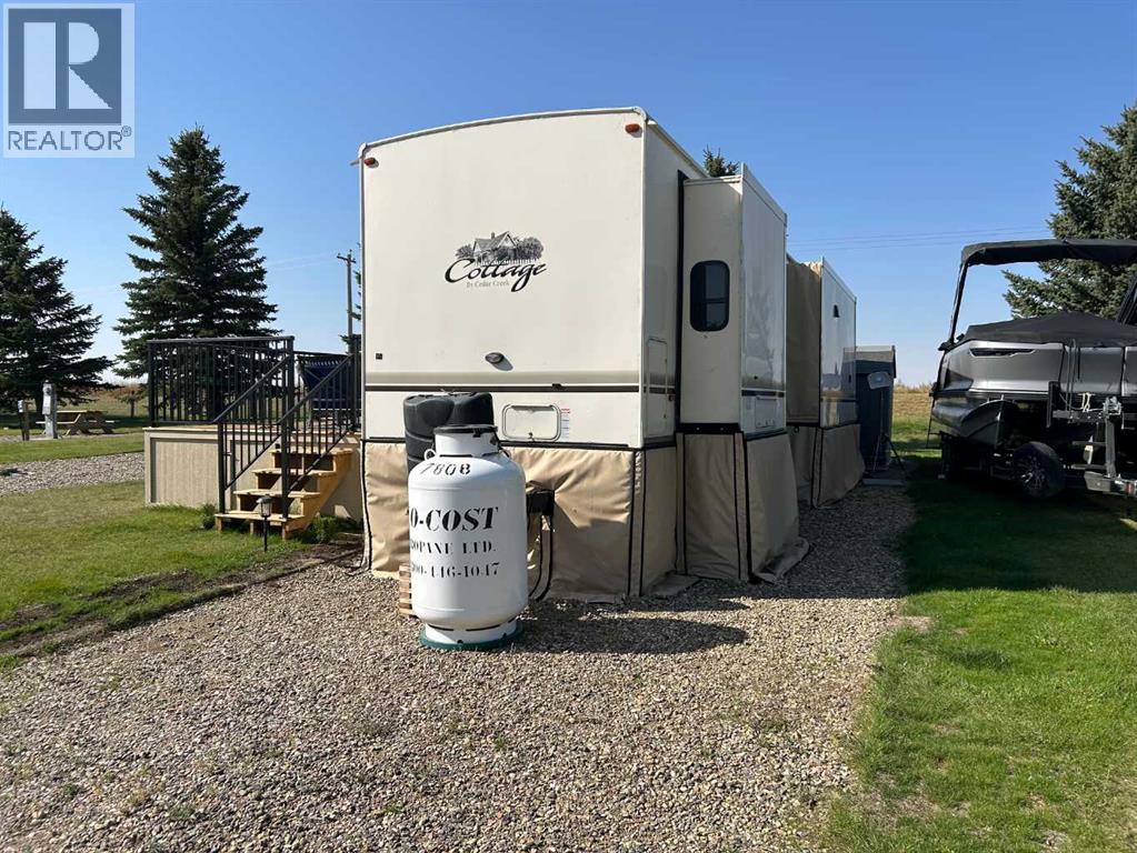 Lake Macgregor Country Estates offers the ultimate in recreational living! The amenities available in this development are truly impressive. With access to a private marina and beach, as well as both indoor and outdoor swimming pools, this community has it all. This charming "Cottage" by Cedar Creek, built in 2017, is a well-designed, four-season “Destination” home located on its own lot. The spacious bedroom accommodates a king-size bed and includes a full bathroom along with ample storage. The kitchen is equipped with a standard-sized fridge, an oven, and a dishwasher that have never been used, as well as a new over-the-range microwave. This home has been meticulously maintained and features vinyl flooring, carpeting, and Corian countertops. While there are hookups for a washer and dryer in the bedroom, the machines are not included; however, the resort does provide a laundry facility. This home also includes all the furniture, gas fireplace, and TV.Recently, the seller added a 16’ x 14’ pressure-treated deck with aluminum railing to the side of the home, enhancing the appeal of resort-style living. An awning provides shade and extra protection, making the space even more enjoyable.For just $300 a month, the HOA fee covers all the amenities offered by the resort, as well as water, sewer, and garbage. At the back of the home, there's an 8’ x 10’ Costco shed, perfect for storing seasonal items.Lake Macgregor Country Estate is a fantastic year-round community suitable for all ages and is the ideal getaway, just two hours from Calgary and one hour from Lethbridge. The resort features green spaces, tennis courts, a playground, and a clubhouse that includes a gym, a games room for children, a conference room, a lounge, a bar area, and boat storage. Escape the hustle and bustle of the city and experience this tranquil, recreational paradise. Contact your favorite REALTOR®? today to schedule a showing! (id:28267)