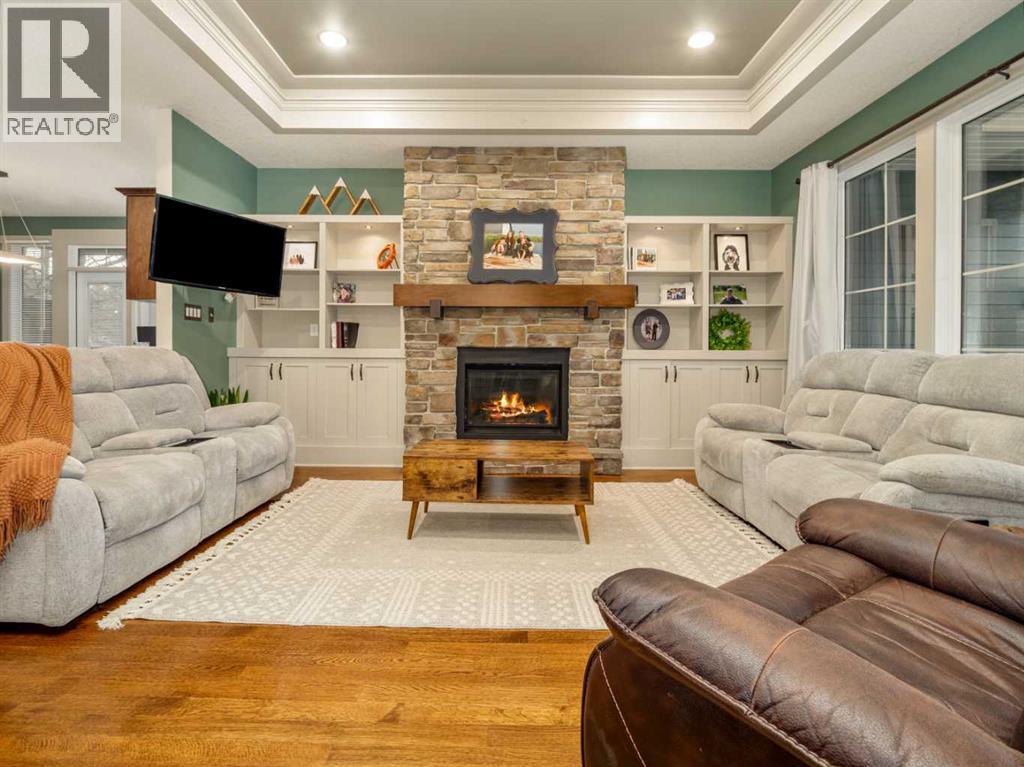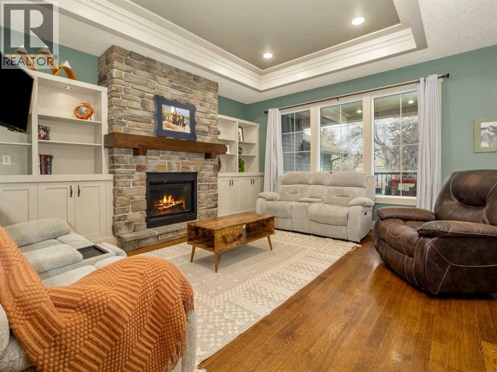 If you’ve been searching for a newer bungalow in a beautiful, mature neighbourhood, your search may be over! Properties like this don’t come around very often, a stunning home perfectly combining modern comfort with timeless charm.Built on a corner lot surrounded by mature trees, this residence impresses from the moment you arrive. The exposed aggregate steps, Hardie board siding, and a large covered front porch create incredible curb appeal that will make you fall in love at first sight.Step inside and experience the warmth of an open-concept floor plan designed for both elegance and ease. The living room draws you in with its striking gas fireplace, custom built-ins, and detailed ceiling design. The chef’s kitchen features granite countertops, gas stove, built-in double ovens, a pantry, and even a built-in china cabinet and desk area near the dining space — perfect for both entertaining and everyday living.The main floor offers three spacious bedrooms, including a luxurious primary suite with a corner jetted tub, separate shower, and walk-in closet.Downstairs, the fully developed lower level is an entertainer’s dream, boasting a massive family and games room complete with a wet bar and second gas fireplace, plus two additional large bedrooms and a full bathroom.Outside, enjoy morning coffee on the covered porch, relax on the back deck overlooking the fenced yard, and appreciate the convenience of a double attached garage, air conditioning, and underground sprinklers. New furnace, Humidifier & Central A/C in 2025.This home truly checks all the boxes, luxury finishes, modern amenities, mature surroundings, and impeccable design.Don’t miss your opportunity to make this incredible bungalow yours. Contact your favourite REALTOR® today! (id:28267)