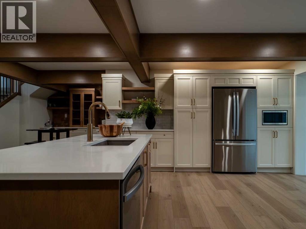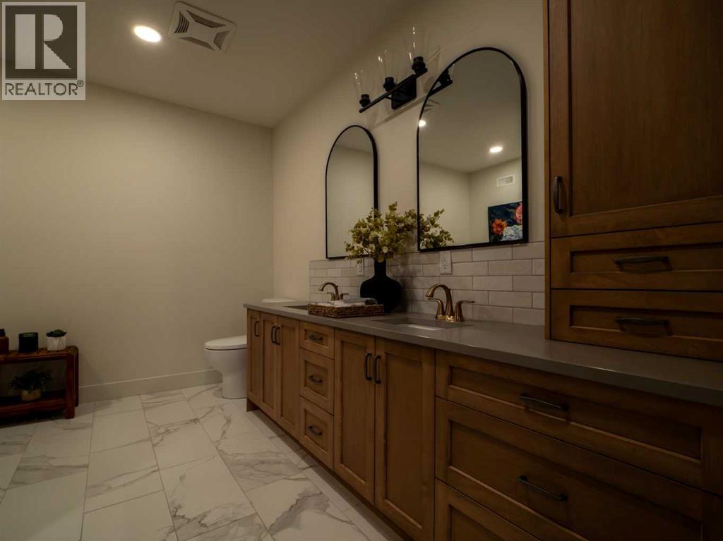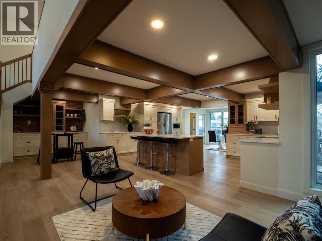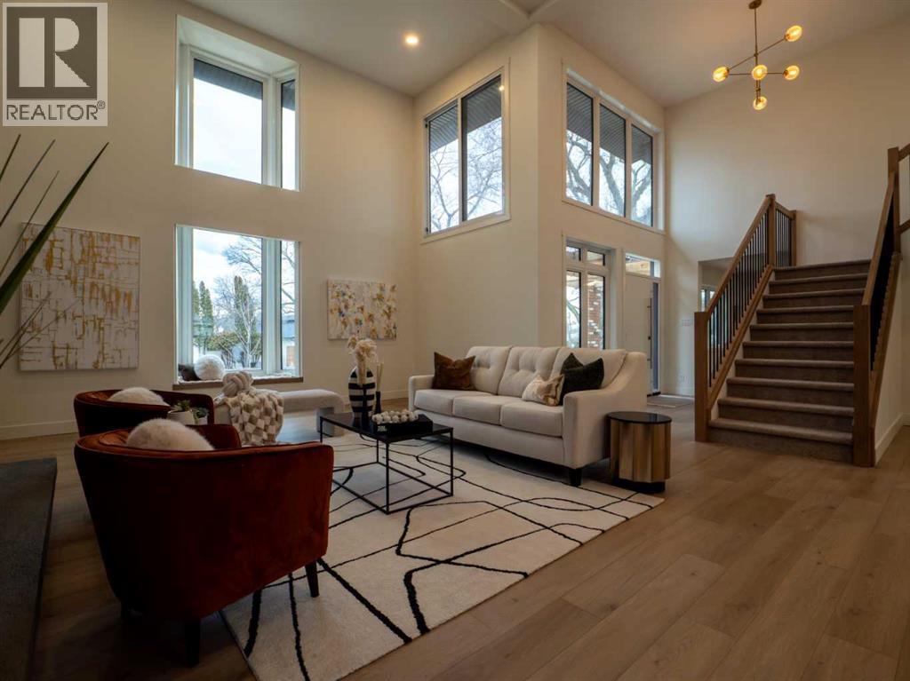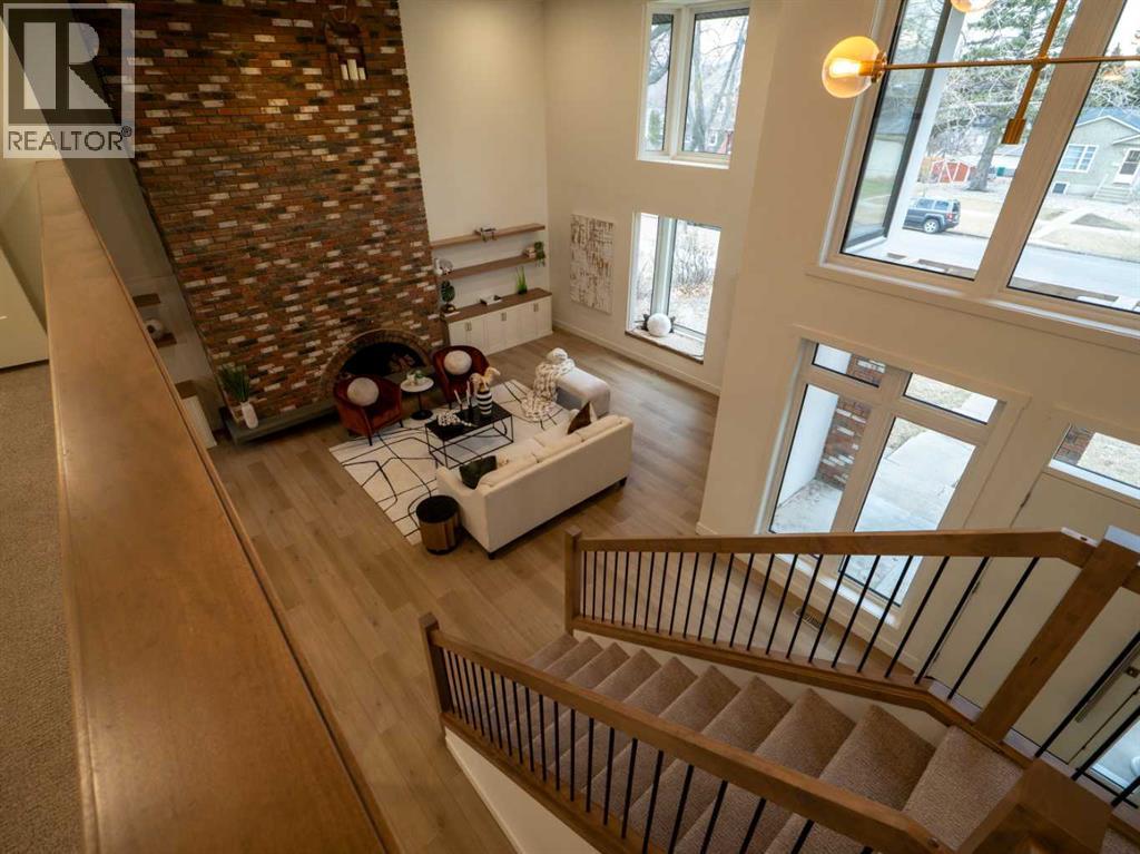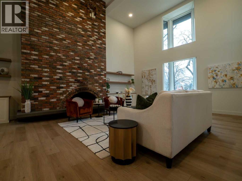 Welcome to the iconic 7th Ave Mansion, an extraordinary, fully renovated residence located on 7th Avenue South—one of the most prestigious and sought-after streets in the city. Offering an impressive 3,830 sq ft above grade and 5,156 sq ft total, this landmark home blends timeless character with modern luxury on a grand scale. Completely transformed in recent years, the home features 7 bedrooms plus a den, 3 full bathrooms, and 3 half bathrooms, making it ideal for large families, professionals, or those who love to entertain. Major upgrades include new windows throughout and a new roof (October 2022), providing peace of mind and long-term value. The main floor is nothing short of spectacular. A dramatic floor-to-ceiling brick fireplace anchors the space, flanked by two expansive living rooms perfect for both formal gatherings and relaxed everyday living. The chef’s kitchen showcases custom cabinetry, quartz countertops, and brand-new appliances, with two pantry spaces offering exceptional storage. Off the dining room, step onto a newly built deck, ideal for outdoor entertaining. This level also features a half bathroom, a generous laundry room with a laundry chute from upstairs, and a main-floor bedroom complete with a walk-in closet and private 4-piece ensuite—perfect for guests or multigenerational living. Upstairs, the home continues to impress with a luxurious primary retreat featuring two walk-in closets and a spa-inspired 5-piece ensuite. Three additional large bedrooms complete this level, two with walk-in closets, offering exceptional space and flexibility. The fully developed lower level adds even more versatility with two additional bedrooms, a den, and a large living room. One bedroom includes a private 2-piece ensuite, complemented by an additional 2-piece bathroom and a laundry area with a shower—ideal for busy households or extended stays. A large utility and storage room rounds out the basement, ensuring ample space for organization. Completing the p roperty is an oversized double garage, providing excellent parking and storage. This is a rare opportunity to own a statement home on one of the city’s most coveted streets—a true blend of historic presence, modern renovation, and unmatched scale. Homes of this calibre on 7th Avenue South are seldom offered. (id:28267)