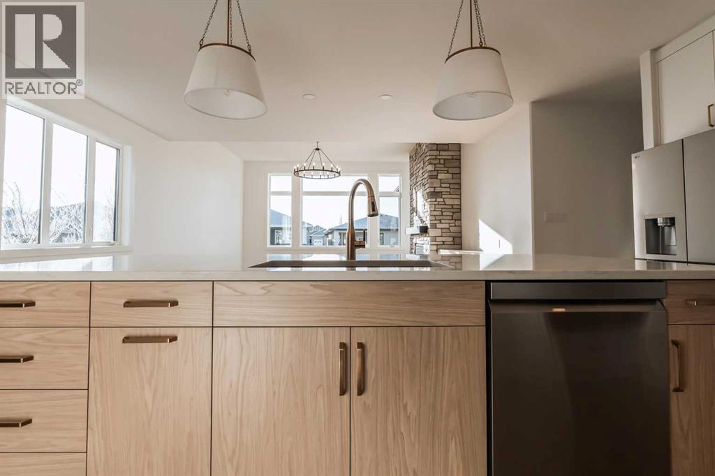 With over 2,000 sq. ft. of thoughtfully designed living space, this modern home offers five spacious bedrooms, 3.5 bathrooms, and a triple car garage. Step into a grand, welcoming foyer that leads to an expansive open-concept main floor—perfect for both entertaining and everyday living. Please note that the exterior images are architectural renderings and not photos of the actual property. Interior photos are from a previous build and are shown for reference only. Finishes, features, and layout may vary.The main level features a stylish kitchen, generous dining area, and a cozy living room with a fireplace and large windows that flood the space with natural light. The private primary suite includes a 3-piece ensuite, a large walk-in closet, and direct access to the laundry room for ultimate convenience. A 2-piece powder room completes the main floor.Upstairs, two additional bedrooms and a 4-piece bathroom offer a private, comfortable space for family or guests. The fully finished basement adds even more versatility with a spacious rec room, two more bedrooms, a 4-piece bath, and a utility room with plenty of storage. The Interior photos are not current as this property is still under construction. (id:28267)