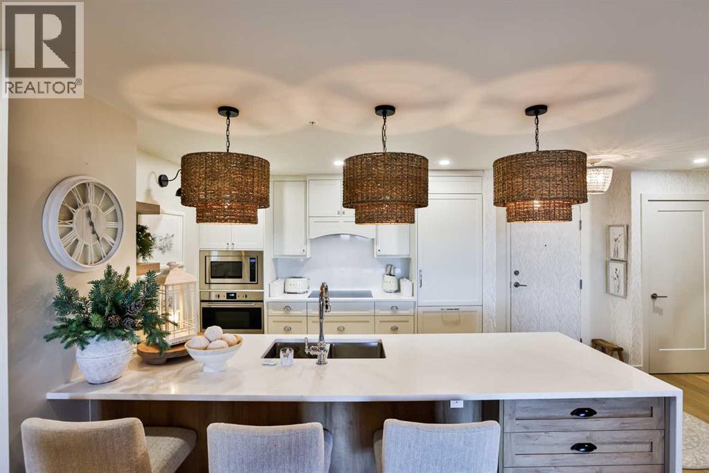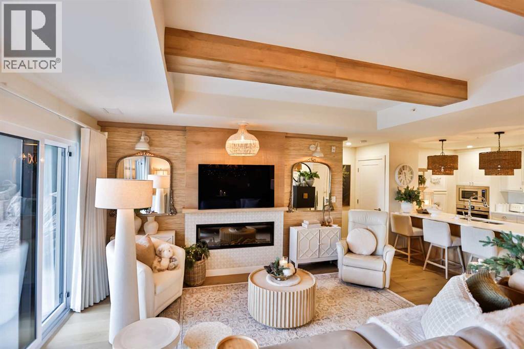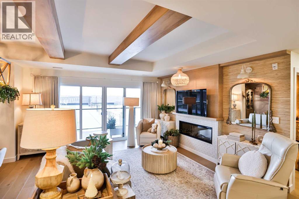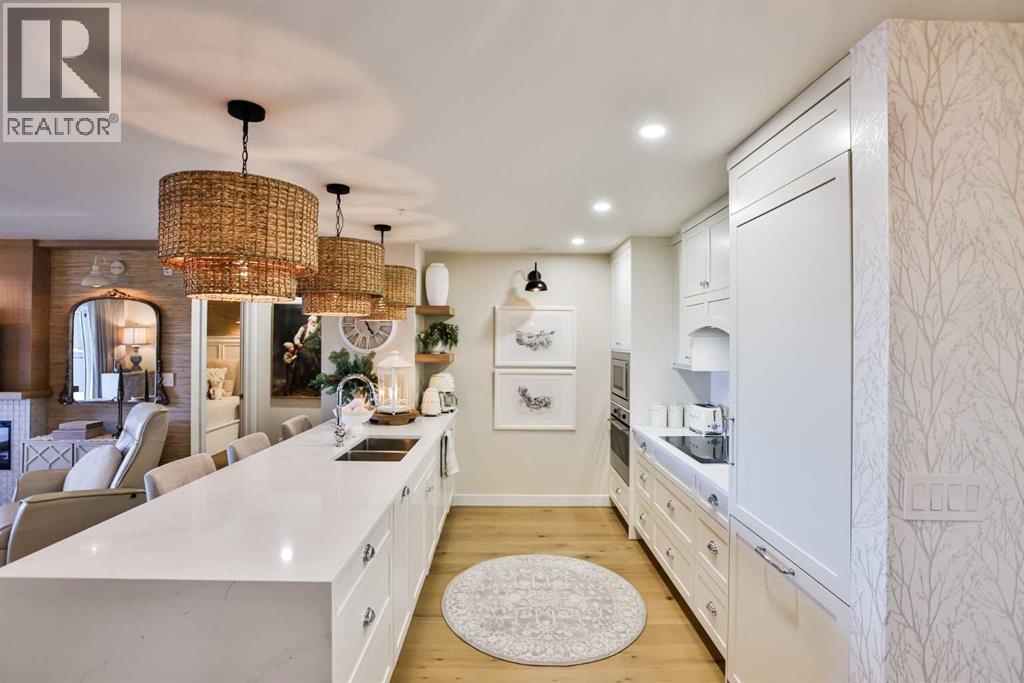 $469.62 MonthlyLuxury condo living with stunning views at 102 Scenic Drive. This beautifully decorated, high-end 2 bedroom, 2 bathroom residence offers over $40,000 dollars worth of upgrades to create a truly amazingly appointed and unique home. The inviting living space features a lovely dining room and living room space that blend together seamlessly featuring a built-in fireplace and large custom wood beams, all overlooking the courtyard. This condo is decorated in warm neutral colors, bleached wood laminate floors, and custom paint and wallpaper features in every room. The custom kitchen showcases off-white shaker cabinetry, custom paneled fridge and dishwasher, built-in wall oven and microwave, and an induction cooktop with a custom hoodfan. The upgraded fridge offers water and ice dispenser for true convenience. The finishing touch to this beautiful kitchen is the crisp quartz countertops with a custom quartz waterfall edge on the peninsula and a full seamless quartz backsplash behind the stove. The gorgeous master suite has a large walk through closet with custom built-in cabinets, a glass tiled shower, vanity with make-up desk and extra tall vanity cabinet, quartz countertop, and sliding glass doors to the balcony. The second bedroom can function either as a guest bedroom or your personal home office, featuring tall floor to ceiling custom cabinets and sliding glass doors to the balcony. The expansive balcony offers an amazing view and access from every room in the condo. The underground parking and storage unit included with this condo are perfectly located close to the elevator to add everyday ease. Enjoy exceptional building amenities including a gym, sauna, theatre, golf simulator, car wash and more. A rare opportunity to enjoy luxury, views, and the convenience of lock-and-leave living, in one of Lethbridge’s most desirable locations. Contact your favorite real estate agent to view. (id:28267)