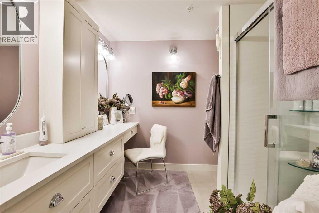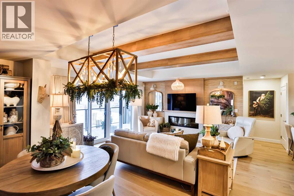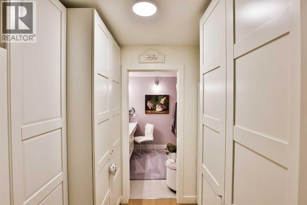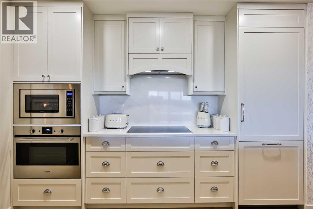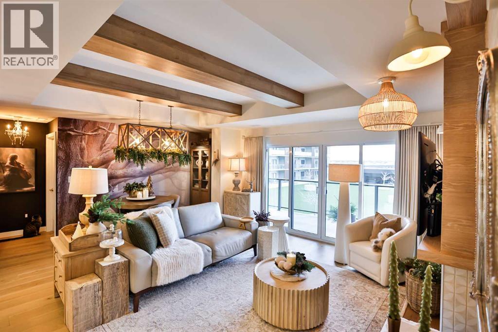 $469.62 MonthlyLuxury condo living with stunning views at 102 Scenic Drive. This beautifully decorated, high-end 2 bedroom, 2 bathroom residence offers over $40,000 dollars worth of upgrades to create a truly amazingly appointed and unique home. The inviting living space features a lovely dining room and living room space that blend together seamlessly featuring a built-in fireplace and large custom wood beams, all overlooking the courtyard. This condo is decorated in warm neutral colors, bleached wood laminate floors, and custom paint and wallpaper features in every room. The custom kitchen showcases off-white shaker cabinetry, custom paneled fridge and dishwasher, built-in wall oven and microwave, and an induction cooktop with a custom hoodfan. The upgraded fridge offers water and ice dispenser for true convenience. The finishing touch to this beautiful kitchen is the crisp quartz countertops with a custom quartz waterfall edge on the peninsula and a full seamless quartz backsplash behind the stove. The gorgeous master suite has a large walk through closet with custom built-in cabinets, a glass tiled shower, vanity with make-up desk and extra tall vanity cabinet, quartz countertop, and sliding glass doors to the balcony. The second bedroom can function either as a guest bedroom or your personal home office, featuring tall floor to ceiling custom cabinets and sliding glass doors to the balcony. The expansive balcony offers an amazing view and access from every room in the condo. The underground parking and storage unit included with this condo are perfectly located close to the elevator to add everyday ease. Enjoy exceptional building amenities including a gym, sauna, theatre, golf simulator, car wash and more. A rare opportunity to enjoy luxury, views, and the convenience of lock-and-leave living, in one of Lethbridge’s most desirable locations. Contact your favorite real estate agent to view. (id:28267)