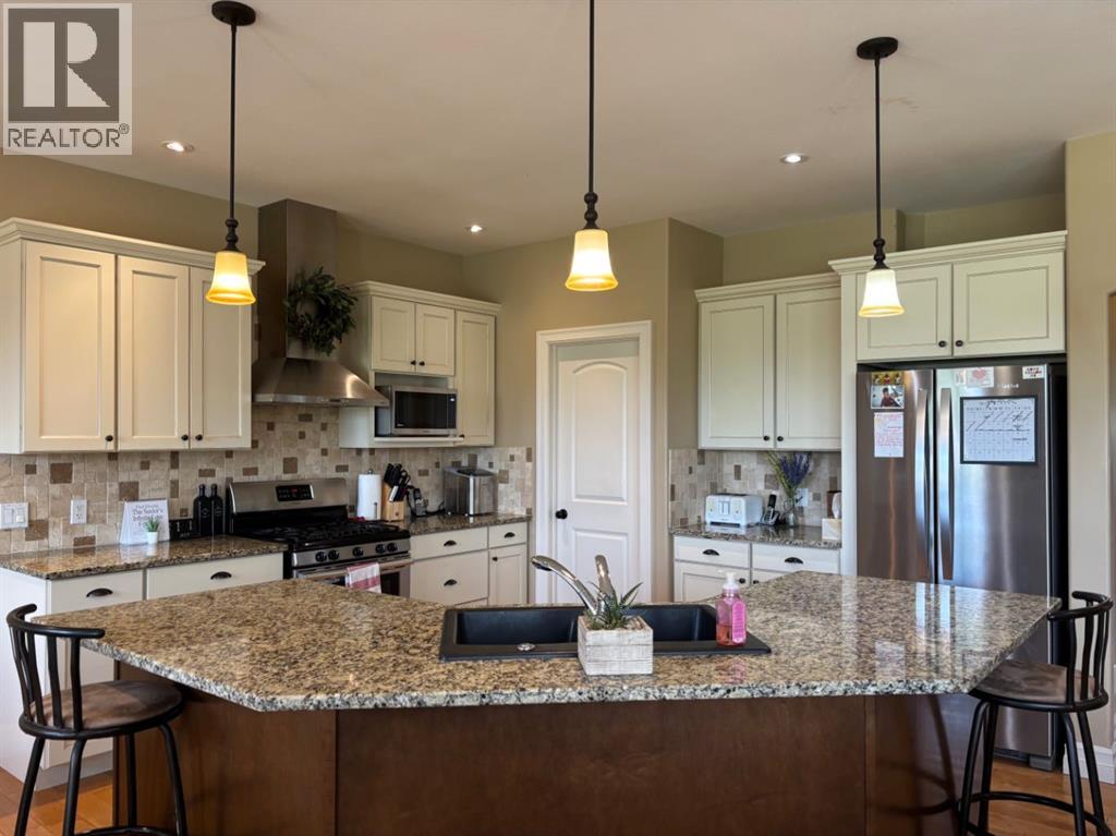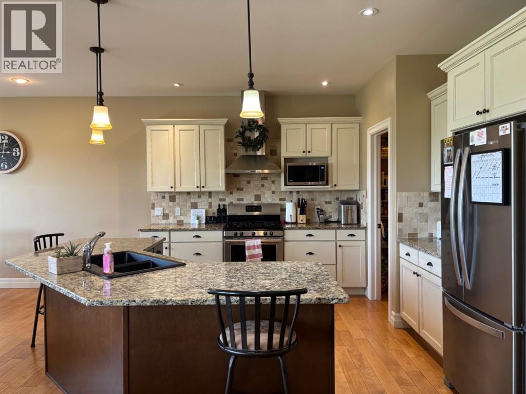 A Beautiful Family Home in the village of Stirling! This custom built home features 9’ ceilings up and down, a large tiled mud room shared by both the front entrance and the garage, a MASSIVE pantry, a wood-burning fireplace that takes up to 30” logs and can pump heat down into the basement, a built-in granite computer desk in the living room, a conveniently placed 3 piece bathroom from the garage and a laundry room just off the kitchen, a large downstairs family room great for teenage get-togethers or family gatherings, a natural gas heated garage with sturdy built-in storage shelves, a perfect front porch that faces southwest and a view of Chief Mountain and the Rockies, and so much more! With 3 bedrooms up and 4 bedrooms down, an open living–kitchen–dining area, and a large front and back yard to enjoy, this home is perfect for a family looking to enjoy the Community of Stirling. Come check it out! (id:28267)