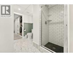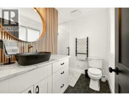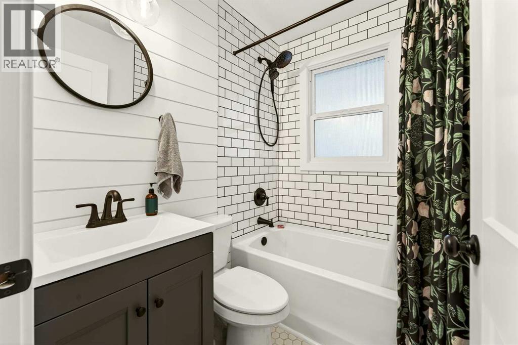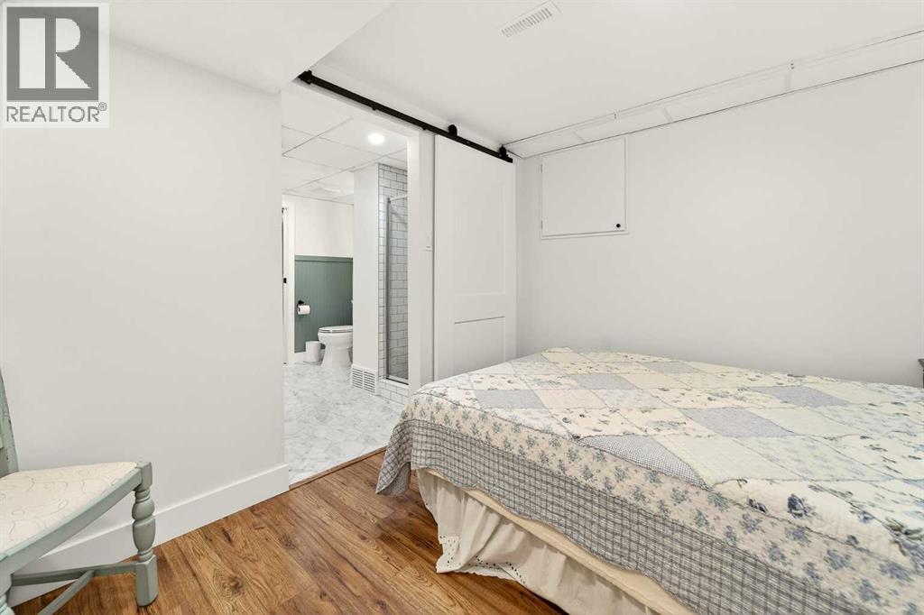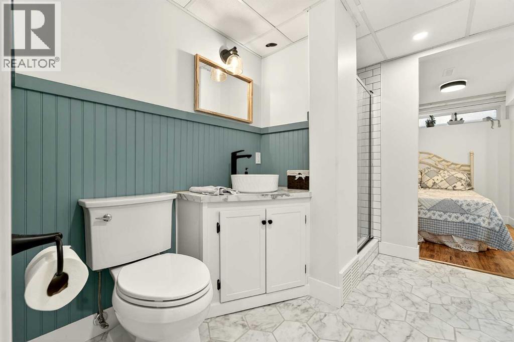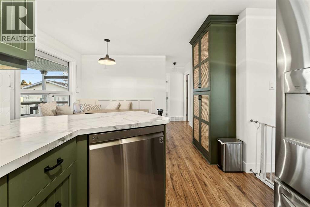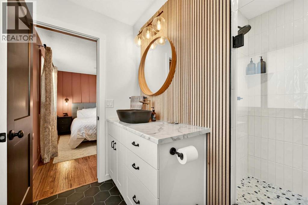 This fully renovated bungalow is a rare blend of high-design finishes and thoughtful energy-efficient upgrades, resulting in a home that feels both elevated and intentionally built for long-term comfort. From the outside in, nearly every detail has been updated, including solar panels, vinyl windows, and thickened exterior walls with added insulation—improving efficiency without sacrificing style.The main living space feels bright and welcoming, anchored by warm flooring, clean white walls, and large windows that flood the room with natural light. The aesthetic throughout the home is modern but approachable, with carefully selected textures and finishes that create visual interest without feeling overdone.The kitchen is the showpiece. Custom green cabinetry adds depth and character, paired beautifully with striking countertops, a crisp tile backsplash, and under-mount cabinet lighting that gives the space a soft, ambient glow in the evenings. Matte black hardware and fixtures tie everything together, creating a cohesive, designer look that feels both current and timeless.The primary bedroom is spacious and calming, finished with warm tones, new wall sconces, and a walk-in closet. The ensuite is nothing short of stunning, featuring a curbless tile shower with a glass door, modern fixtures, and layered textures that give the space a boutique-hotel feel. Just next door, the four-piece main bathroom continues the design theme with a new tile floor, tiled shower surround, and clean, contemporary finishes. A second bedroom on this level has also been fully updated and works perfectly as a guest room, nursery, or home office.Downstairs, the fully developed basement adds substantial living space with plush carpet in the family room, creating a cozy area for movie nights or relaxing evenings. Additional storage has been thoughtfully incorporated, along with a dedicated laundry area. Two more generously sized bedrooms are located on this level, along with another upda ted bathroom that maintains the same modern design language as the rest of the home.Outside, the double detached garage provides excellent parking and storage, rounding out a property that has been comprehensively renovated with both form and function in mind. There is also a carport at the front of the home for additional parking. This is a home where design, efficiency, and everyday livability come together seamlessly—offering a truly move-in-ready experience with standout style. (id:28267)