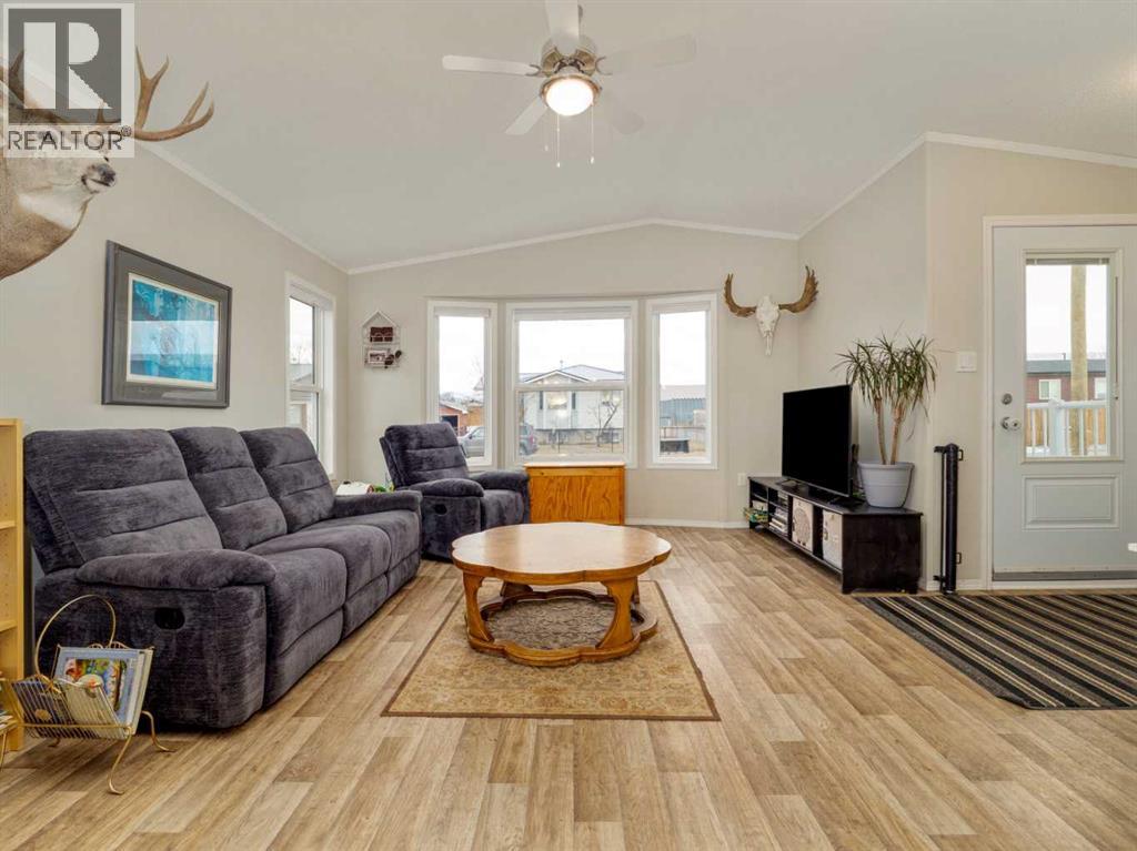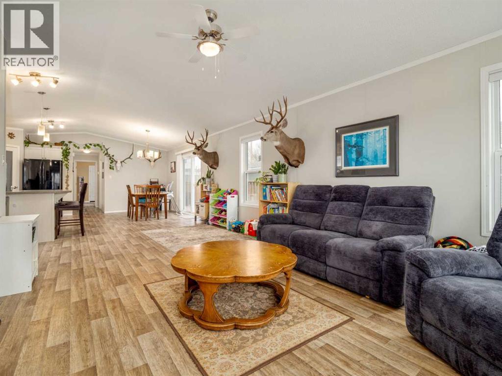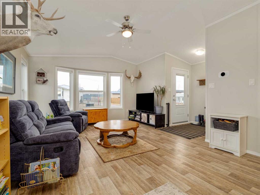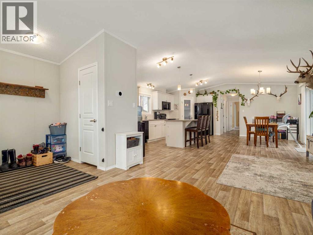 Welcome to this beautifully maintained 2018 manufactured home in the charming community of Cowley. Offering 1,250 sq ft of thoughtfully designed living space, this well-laid-out home features 2 bedrooms and 2 full bathrooms, providing comfort, functionality, and easy living.The spacious kitchen is a true highlight, featuring ample counter space, abundant cabinetry, and a layout that flows seamlessly into the main living area, perfect for entertaining or everyday life. Vinyl flooring runs throughout the home, creating a modern and cohesive feel. The primary bedroom offers a private retreat with a full ensuite and a generously sized walk-in closet. Adjacent to the kitchen, you'll find a cozy laundry and utility room, providing both convenience and functionality. This space seamlessly connects to the backyard.Step outside to enjoy the newly built deck overlooking the fully fenced yard—ideal for relaxing or hosting guests. The property also offers plenty of parking space, with ample room for multiple vehicles, trailers, or RV parking, adding to its overall convenience and versatility.Located just 10 minutes from Pincher Creek, approximately 35 minutes to Crowsnest Pass, and under an hour to Castle Mountain Resort, you’ll enjoy quick access to amenities, skiing, hiking, fishing, and endless outdoor recreation.This is an excellent opportunity to enjoy peaceful small-town living with modern comfort and adventure close to home. (id:28267)