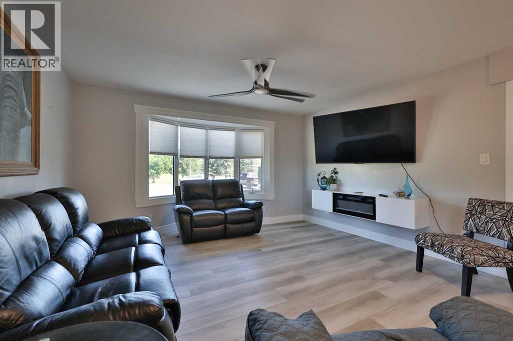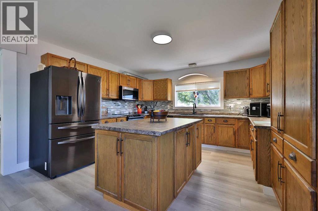 Welcome to this beautifully updated family home in Magrath, Alberta, where stunning curb appeal and a spacious double attached garage with a large driveway—including RV parking—set the stage for comfortable, practical living! Inside, you’ll be impressed by the extensive renovations, including fresh paint, new vinyl plank flooring, modern baseboards, new windows throughout, and a fully refreshed kitchen featuring brand new stainless steel appliances and a stylish new sink. The main floor offers a warm and welcoming living room complete with a beautiful electric fireplace, perfect for cozy evenings at home. With five generously sized bedrooms, three full bathrooms, and a large bonus room upstairs, there’s space for everyone in the family to spread out and enjoy. The spacious kitchen and dining area with a large island is ideal for everyday meals and entertaining, while the formal dining room at the back of the home provides a peaceful view of the massive, fully fenced backyard! That formal dining space currently used as a pool table room also has an incredible wood-burning stove! Sitting on half an acre, the outdoor space is perfect for kids and pets to run and play, surrounded by beautiful mature trees that offer both shade and privacy. Thoughtful touches continue with a large back storage room off the mud hall, giving kids the perfect spot to unload backpacks, coats, and snow gear. A brand new hot water on demand system adds to the home's efficiency and comfort. This is a fantastic family home with so much square footage, you won’t know what to do with it—truly a rare find in a wonderful community. Call your REALTOR® and book your showing today! (id:28267)