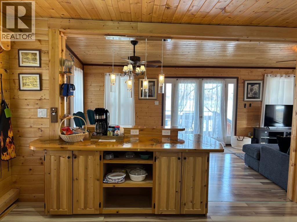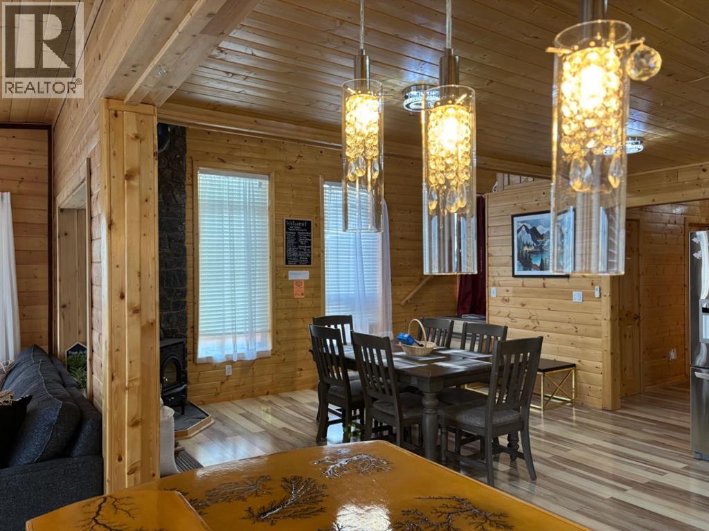Cozy, warm, inviting, relaxing are all words to describe this beautiful cabin nestled in the neighbourhood of Mountain Vista Estates just outside of Hill Spring. The log exterior, the wood v joint interior, the vaulted ceiling, the wood burning stove, the open kitchen, dining and living room, the back deck and sitting area right on the pond, the 3 season shed with a 2 piece bathroom are all features that make this home a one of a kind. It is currently being used for personal use and an AirBNB rental. Located close to Waterton and the mountains it is regularly booked from April to October. The quiet peaceful outdoors are ideal for watching sunrise and sunsets, and enjoying the ducks, geese and other wildlife. The exterior was repainted 3 years ago, and, the stove and water tank were recently replaced. The annual fee is not necessarily an HOA fee but a neighbourhood fee that is calculated yearly dependent on costs that include such things as "snow removal, grass cutting of common spaces, road maintenance, electrical bills for water pump systems, irrigations water, garbage disposal, capital projects, etc." The neighbourhood is part of a water coop for drinking water but also has seasonal irrigation water for the yards and outdoor use. There is natural gas in the area but this home uses propane tanks that are filled a couple times a year depending on usage. It also has a holding tank for sewer which is cleaned out about every 3 months depending on usage as well. The man made pond is great for kayaking or canoes and there is also a fire pit and horse shoe pits for community use. The furnishings in the home are negotiable. If you are looking for a new residence, a get away home, or an investment property this might be the one for you. Come check it out! (id:28267)
