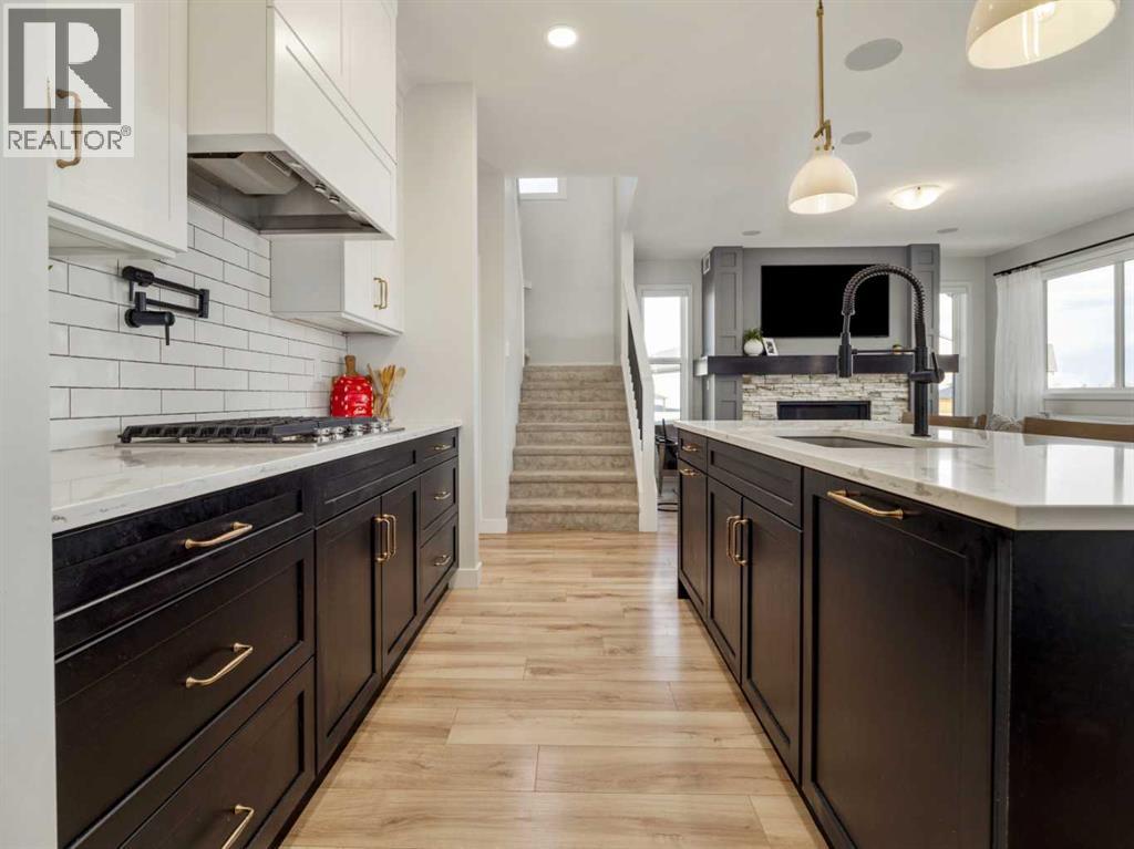 Welcome to 2701 46 Street S ... where design, space, and technology meet to create one of the most complete family homes on the market. With 6 bedrooms, 3.5 bathrooms, and over 2350 sq ft above grade, this property delivers every feature buyers say they want, but rarely find all in one place.The main floor sets the tone immediately: a wide, welcoming foyer (not the cramped kind), high ceilings, and natural light spilling through oversized windows. The open-concept living area centers around a stone-faced gas fireplace and custom feature wall ... equal parts warmth and statement. The kitchen is a true showpiece with two-tone cabinetry, stone counters, brass hardware, pot filler, wall oven and built-in microwave, and a large island that ties the entire space together. A built-in coffee bar/butler’s pantry, formal dining area overlooking the yard, and smart-home lighting and window blind controls complete the main level. There’s also a dedicated office or flex room behind glass French doors, with in-floor power ready for a clutter-free setup.Upstairs, the layout was designed for how folks actually live: four bedrooms, including a stunning primary retreat with massive windows, a spa-style ensuite (dual sinks, full-tile shower, walk-in closet), and an upper-floor laundry room that’s an actual room ... not machines hidden in a hall closet. The additional full bathroom includes dual sinks and a separated toilet/shower area so multiple people can use it at once. A bonus room with custom in-wall speakers gives you a perfect rec room or media space to unwind in.The fully finished lower level takes the home to another level ... professionally completed as a two-bedroom, one-bathroom legal suite-style space. Ideal for multi-generational living, extended guests, or simply more room to grow, it includes a full kitchen, living area, and private bedrooms that feel bright and inviting, not “basement-like.”The property is complete with central air conditioning, underground sp rinklers, automated lights and blinds, and a 200-amp panel ... ready for EV charging or future upgrades. Every square foot here has been finished with purpose, quality, and care.If you’ve been waiting for a home that actually checks every box, this is it. Fully loaded. Fully finished. Fully ready for what’s next. Call your real estate professional for your private viewing today. (id:28267)