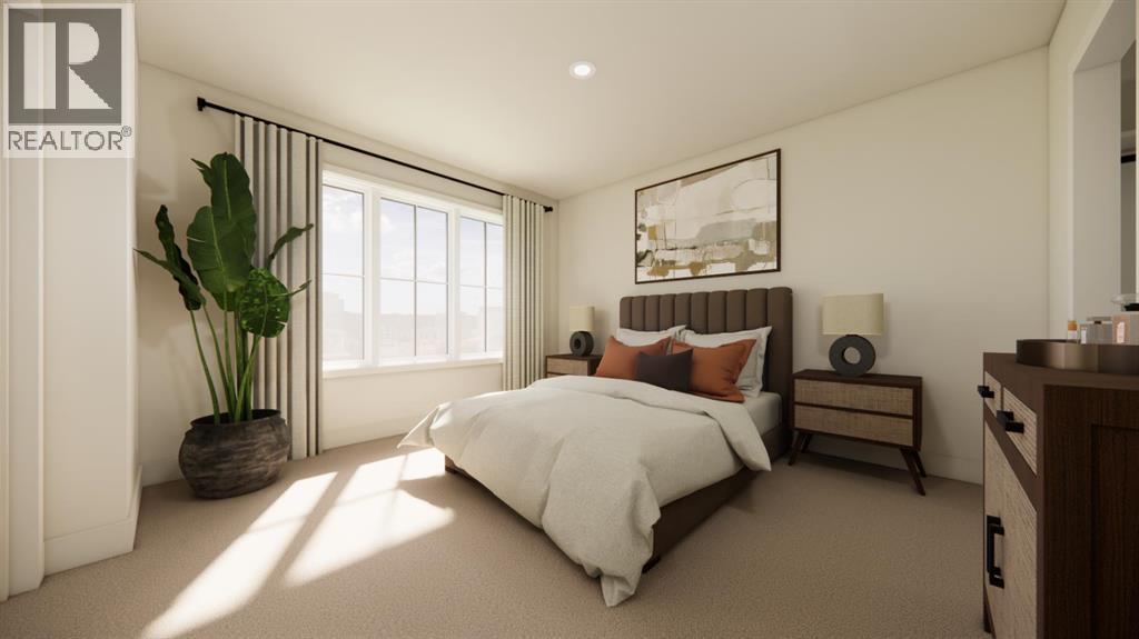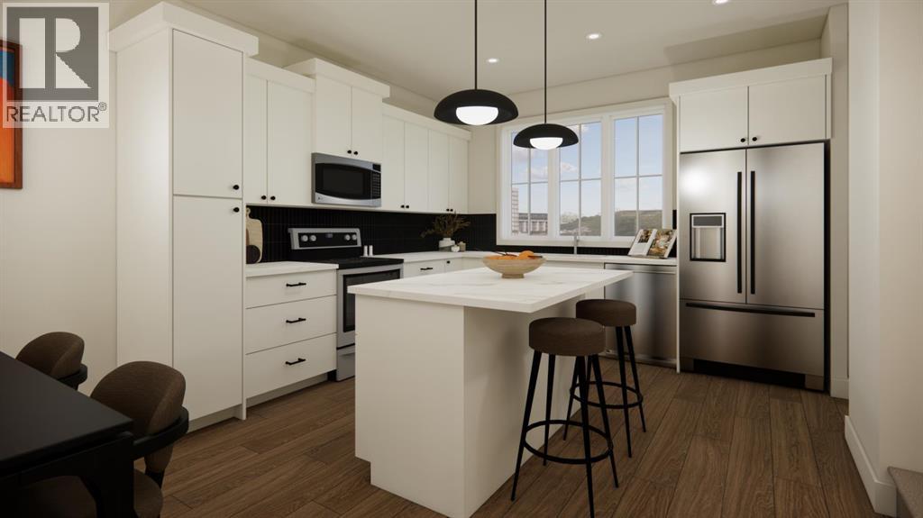 No condo fees, brand-new construction, and front landscaping already completed—this end-unit townhome by Stranville Living Master Builder delivers modern design with genuinely low-maintenance ownership. Located in the brand new community of Malloy Landing, directly across from the SHIFT Community Recreation Centre, this home combines thoughtful architecture with everyday convenience.Inside, the main living space immediately stands out with soaring 12-foot ceilings that create an airy, open feel rarely found in townhome living. Just a few steps up, the kitchen and dining area sit on a split-level design that naturally defines each space while keeping the layout open and connected. The kitchen is finished with quartz countertops throughout, a large island with bar seating, and clean, contemporary cabinetry that balances style with function.The primary bedroom is spacious and well-appointed, featuring a full ensuite with dual vanities and a walk-in shower, offering both comfort and practicality. Two additional bedrooms are thoughtfully positioned nearby, along with a modern four-piece bathroom—ideal for family living, guests, or a dedicated home office setup. Main floor laundry adds another layer of everyday convenience.Outside, this home is fully turnkey. Front landscaping and wing fencing are included, along with a rear deck that extends your living space outdoors. The double rear parking pad provides off-street parking with easy access, completing the package without added monthly costs.With quality construction, elevated ceiling heights, and a location that puts recreation and amenities right across the street, this brand-new townhome offers modern living without the burden of condo fees—an increasingly rare find in today’s market. Gst and a 10 year new home warranty is also included in the list price. (id:28267)