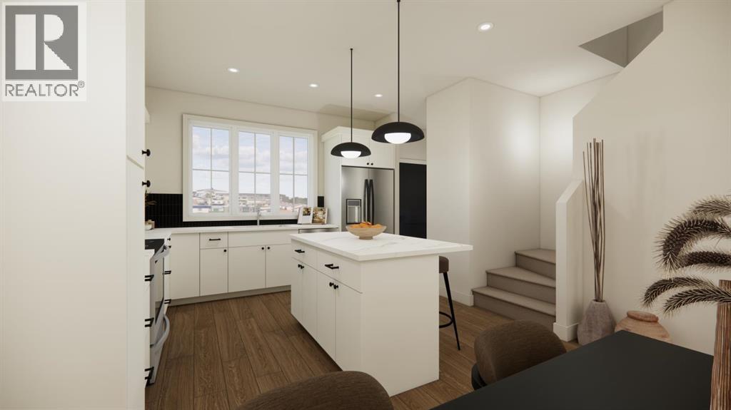 This brand new townhome by Stranville Living Master Builder showcases the Kendrick floor plan, a refreshingly unique design that stands out the moment you walk through the door. With elevated finishes throughout and a thoughtful layout, this home offers a level of style and functionality that’s hard to find in today’s market. The main living area immediately impresses with soaring 12-foot ceilings that create an open, airy feel, while the architectural split-level design subtly separates the living room and dining area with a short set of steps, adding visual interest and a sense of defined space without sacrificing flow.The kitchen is both sleek and practical, designed to complement the modern aesthetic while still offering plenty of workspace and storage for everyday living. Natural light pours through the main level, enhancing the clean lines, warm finishes, and overall inviting atmosphere of the home. Whether you’re hosting friends or enjoying a quiet night in, this layout simply works.Upstairs, you’ll find three well-proportioned bedrooms, including a spacious primary retreat that feels genuinely private. The primary bedroom features a well-appointed ensuite with dual vanities, a walk-in shower, and a generous walk-in closet, making busy mornings and end-of-day routines effortless. The additional bedrooms offer flexibility for family, guests, or a dedicated home office.For added convenience, a double car parking pad is located in the back with alley access.Location is a major highlight here. Situated directly across the street from the brand new SHIFT Leisure Centre and a brand new high school, this home is perfectly positioned in the growing community of Malloy Landing in Coaldale. It’s a setting that blends modern living with everyday convenience, ideal for those who value thoughtful design, quality construction, and a neighbourhood built for the future. A back deck and front landscaping are included in the list price, as well as GST and a 10 year new h ome warranty. (id:28267)