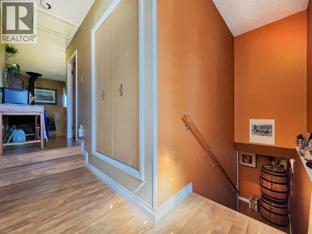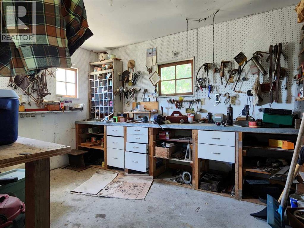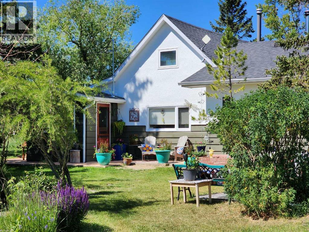 Set on 12 scenic acres in the heart of Alberta’s ranching country, this exceptional property offers the perfect blend of rural tranquility and modern comfort. With sweeping views of rolling hills and the distant Rocky Mountains, it provides a peaceful retreat just a short drive from Stavely. Conveniently located about 1.5 hours from both Calgary and Lethbridge, it combines serene country living with easy access to city amenities.Originally built in the early 1900s with a 1960s addition, the renovated farmhouse exudes timeless character. The home has been thoughtfully updated with a refreshed kitchen, flooring, mostly newer windows, and fresh exterior paint—seamlessly blending vintage charm with modern convenience.The main floor features a cozy primary suite, a bright kitchen and dining area, an inviting living room with a wood-burning stove, a 4-piece bathroom, mudroom/porch, and main floor laundry. Upstairs are two additional bedrooms, while the fully finished lower level includes a spacious recreation room, a quiet office, a fourth bedroom, and a cold storage room.The landscaped yard showcases mature trees, vibrant perennial gardens, and two patios perfect for outdoor entertaining or peaceful relaxation. A treed shelterbelt surrounds the home, providing a natural windbreak, added privacy, and year-round beauty. A dedicated greenhouse offers ample space for gardening enthusiasts to grow vegetables, herbs, or flowers year-round.In June, a new water well was drilled, adding reliability and long-term value. The property also benefits from a registered easement on title for a pipeline from a neighboring gravity-fed spring water system, supplying fresh water to the home, gardens, lawns, and livestock pens—an exceptional asset for sustainable rural living.Nestled among the trees is a charming 11x24 rustic log cabin, complete with electrical service, a metal roof, and a wood stove. Whether used as a guest suite, creative studio, workshop, or private retreat, th is versatile space adds both charm and function.Equestrian enthusiasts will appreciate the 60x71 ft indoor riding arena with skylights and a roping pen. The arena can also be converted into a Quonset for additional enclosed storage if desired. Fenced corrals suitable for horses or other livestock accompany the property, along with two storage sheds, a workshop/clubhouse, and a large open pole shelter—ideal for firewood cutting, parking vehicles, or storing farm and ranch equipment.Ideal for horse lovers, hobby farmers, or anyone seeking peace and beauty in country living, this property combines quality infrastructure, thoughtful upgrades, and a stunning natural setting. It’s a rare opportunity to own a truly special piece of Alberta. (id:28267)