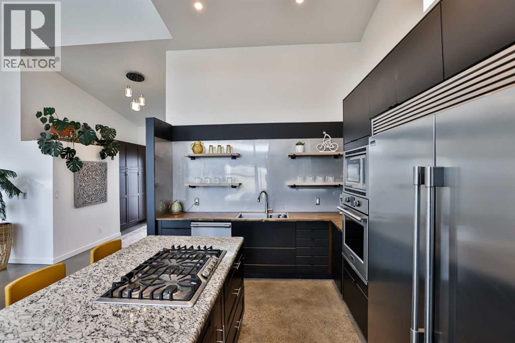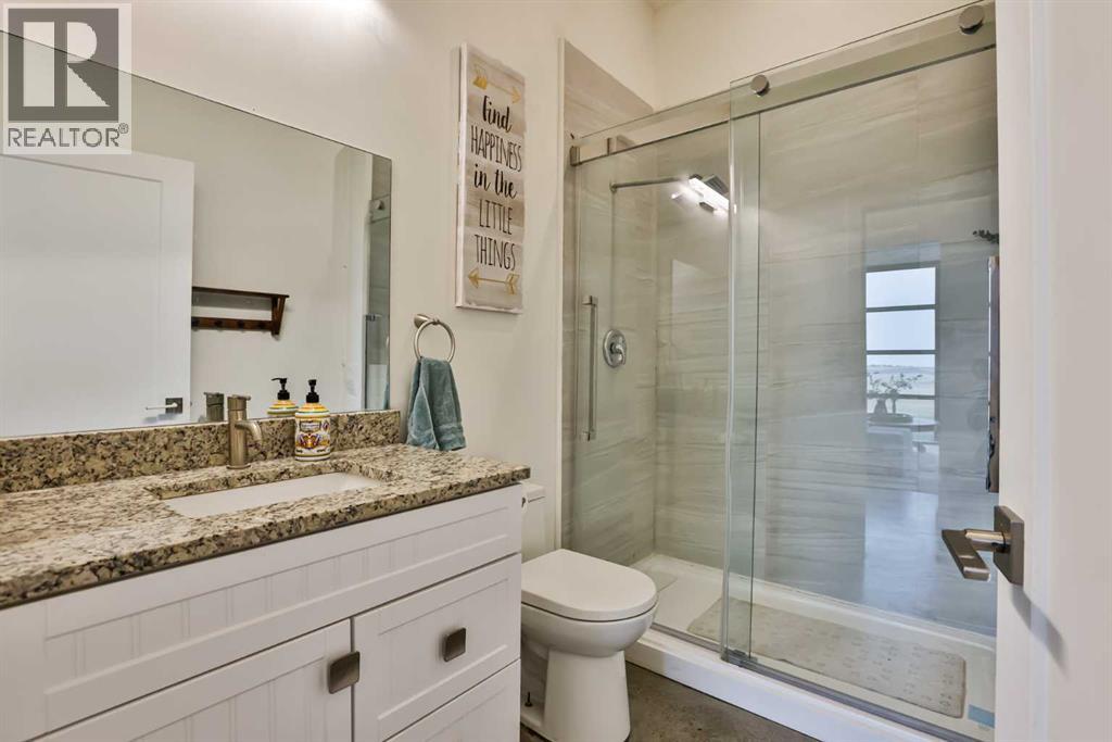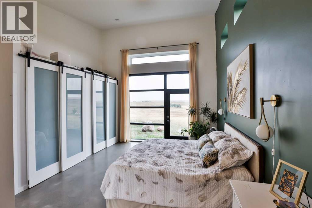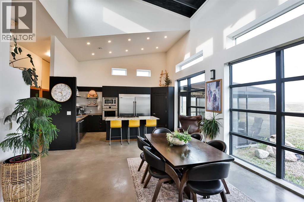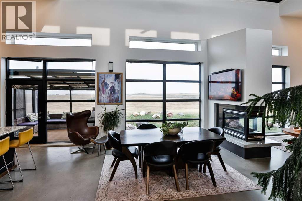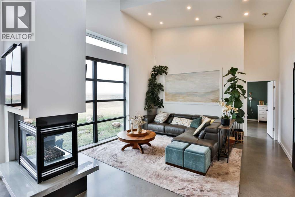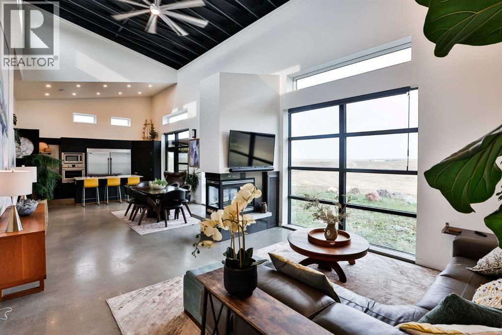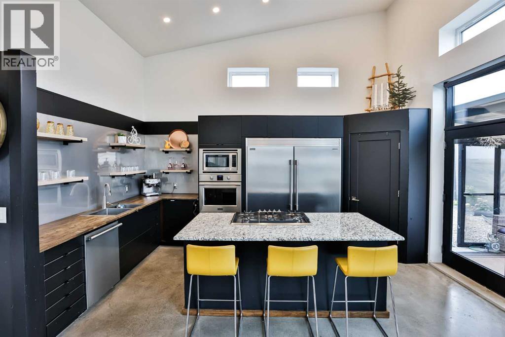 Welcome to 309 Alta Vista Blvd., a modern ranch-style oasis perfectly situated on 13.49 picturesque acres in Carmangay, Alberta. Backing onto the serene Coulee and the soothing flow of Little Bow River, this property offers the intimate charm of small-town living with all the comforts of modern design—only 40 minutes from Lethbridge and 15 minutes from Vulcan.Built in 2018, the slightly over 1,700 ft² bungalow marries contemporary style with top-tier construction. The home features durable ICF block walls paired with Lux triple pane windows and spray foam insulation, ensuring energy efficiency and year-round comfort. Enjoy the luxury of in-floor heating and a state-of-the-art HRV system that circulates fresh air throughout the residence. An on-demand hot water system and 200 amp service. Step inside to discover a modern aesthetic defined by concrete floors, a shed roof vault design with additional transom windows, and a striking three-sided fireplace that creates a captivating focal point in the living area. The expansive kitchen is designed for the modern chef, boasting a built-in fridge & freezer, wall oven & microwave, five-burner gas cooktop, butcher block countertops, granite counters, stainless steel backsplash, and a convenient corner pantry—perfect for gourmet gatherings and everyday meal prep.The soaring ceilings flow gracefully into the primary bedroom, a tranquil retreat with awe-inspiring views of the coulee. Elegant barn doors separate the spacious closets, the ensuite has double sinks, a large tiled shower and a thoughtfully placed window flood the space with natural light. Two additional bedrooms, divided by a stylish black metal and glass barn door, share a full bathroom featuring a generous five-foot tile shower, ensuring ample space for family or guests. Practicality meets design with abundant built-in storage right from the welcoming entrance, complemented by a laundry room and a discreet mechanical room tucked behind the kitchen. For those loo king to harness the beauty of nature, the property offers access to the river. All the conveniences of modern town living are at your fingertips with in-town water. Outside, enjoy low maintenance yet eye-catching curb appeal. The exterior is finished in dark, rich colours accented with textured steel details. A detached triple-car garage spans an impressive 32 feet wide by 24 feet deep, featuring three overhead doors—one operated remotely—for all your storage and vehicle needs. Between the home and garage, a specially protected area hosts a hot tub, windscreen, and fire pit area, creating an ideal outdoor retreat.The natural landscaping around the house artfully blends with the surrounding coulees. Larger decorative shrubs add captivating texture while maintaining a seamless connection to the land, making this property a perfect sanctuary for those who appreciate modern comforts amid rustic beauty. (id:28267)