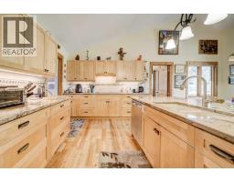This Erickson-built home is nestled on a generous 6.11-acre lot within Villa Vega Acres. A beautiful home surrounded by mature trees, a stream and a small pond – what more could you ask for? Built in 2002, the home has been meticulously cared for, including new Hardie Board siding installed in 2025. The open floor plan on the main level creates a warm and inviting atmosphere with vaulted ceilings, beautiful wood beams, and a cozy wood-burning fireplace. Expansive windows lead to peaceful views in every direction, filling the space with natural light. The kitchen has granite countertops, a spacious island, and ample cupboard storage. There is direct access to the laundry room/mudroom with extra storage for small appliances and pantry items. Patio doors open onto a wrap-around deck, ideal for enjoying your quiet surroundings in the sunshine or shade. The primary suite is conveniently located on the main level and features both a walk-in closet and a luxurious five-piece ensuite. The ensuite includes a soaker tub with scenic views, providing a relaxing retreat. A beautiful library completes the main level, with bookshelves lining the walls, and large windows letting in abundant light. With plenty of room for comfortable furniture, the library may end up being your favourite room in the whole house. The walk-out lower level is designed for both family living and entertaining, complete with a pool table. There is one spacious bedroom with a four-piece ensuite, as well as two additional bedrooms. One of these bedrooms has access to a four-piece bathroom via a convenient Jack & Jill door. The thoughtful layout provides flexibility for families needing extra space or for hosting overnight guests. A triple-car attached and heated garage rounds out the house, and there is also a double detached garage with a carport on the side, offering additional covered parking or storage. For the gardening enthusiasts, there is a fenced garden area with established raspberries and strawbe rries for your enjoyment. Call your favourite REALTOR® to see this property - you will not be disappointed! (id:28267)