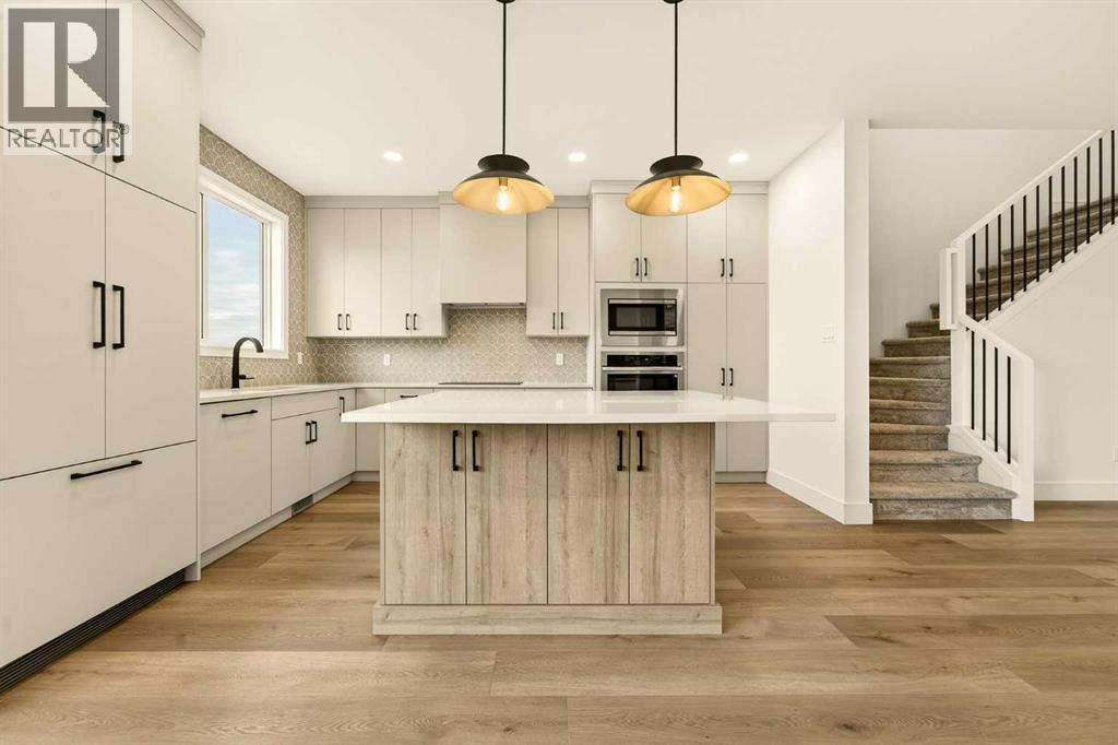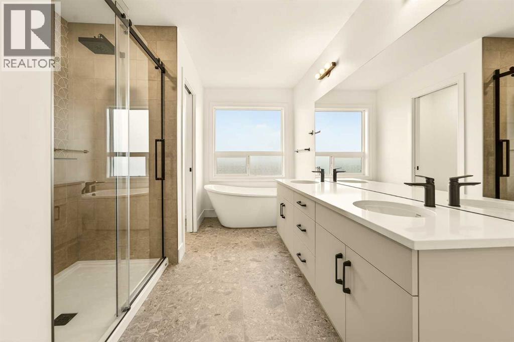 Built by Stranville Living Master Builder, the Brechin model is a striking new home located in the desirable community of Southbrook, perfectly positioned backing onto a pond with uninterrupted views. This brand new home comes with a 10 year new home warranty and GST is included in the sale price. A full-length deck spans the entire back of the home, creating an ideal vantage point to enjoy the water and open skies while extending your living space outdoors in a way that feels both intentional and serene. Adding to the home’s functionality is an extended garage measuring 26 x 22, offering excellent space for larger vehicles, additional storage, or a workshop setup.Inside, the wide-open main floor is designed for modern living, offering a seamless flow that feels spacious the moment you step in. The kitchen is the heart of the home and it delivers on both form and function, anchored by a massive square island with additional cabinetry below for extra storage. The sink is thoughtfully placed beneath a window overlooking the pond, turning everyday tasks into something a little more enjoyable. High-end, fully paneled appliances elevate the space, including a Fisher & Paykel refrigerator, a paneled dishwasher, a built-in oven and microwave, and a sleek matte induction cooktop that ties the whole design together. The living room is warm and inviting, centered around an electric fireplace with a custom mantel that adds character without overwhelming the clean, modern aesthetic.The second level features three spacious bedrooms along with a bonus room that works perfectly as a family lounge, media space, or home office. The primary bedroom enjoys peaceful pond views and flows into an ensuite that truly has it all, including dual vanities, a walk-in shower, a standalone soaker tub, and a private water closet. From the ensuite, you’re led into a generous walk-in closet that continues directly into a full-size laundry room, adding a level of convenience that’s both practica l and thoughtfully designed. This Southbrook home offers a refined layout, premium finishes, and a setting that makes everyday living feel just a little more elevated. (id:28267)