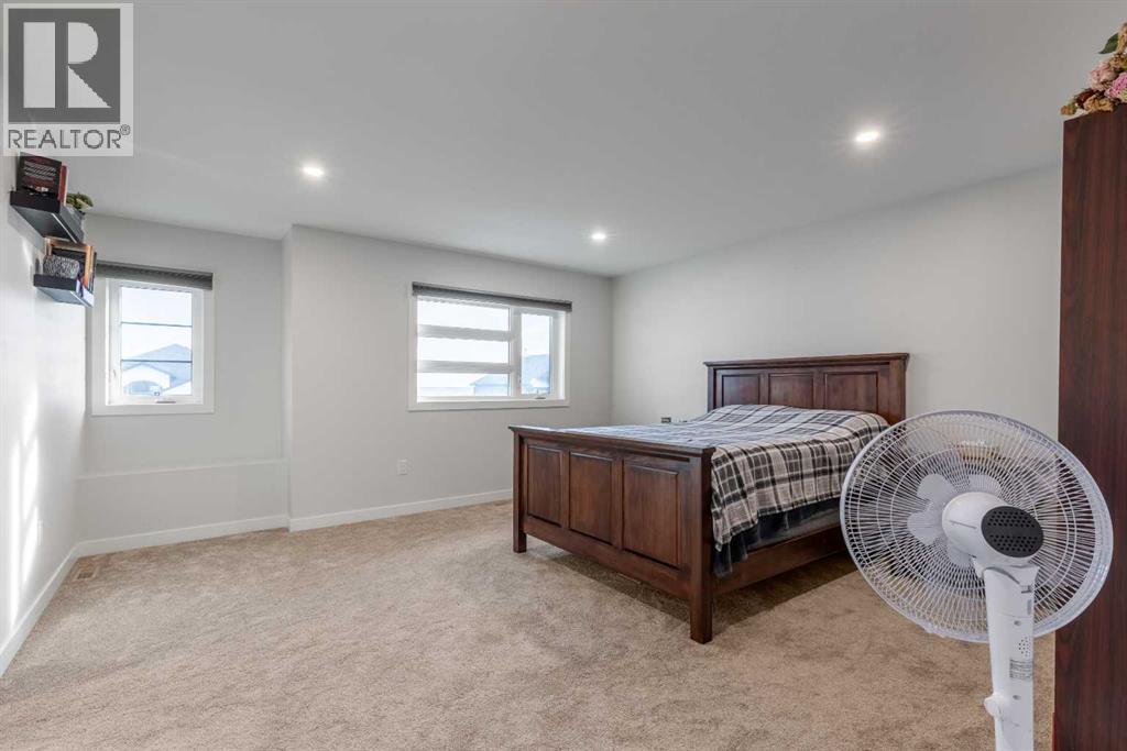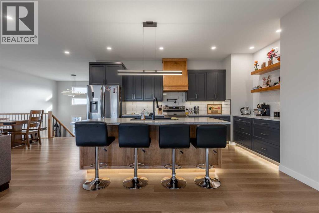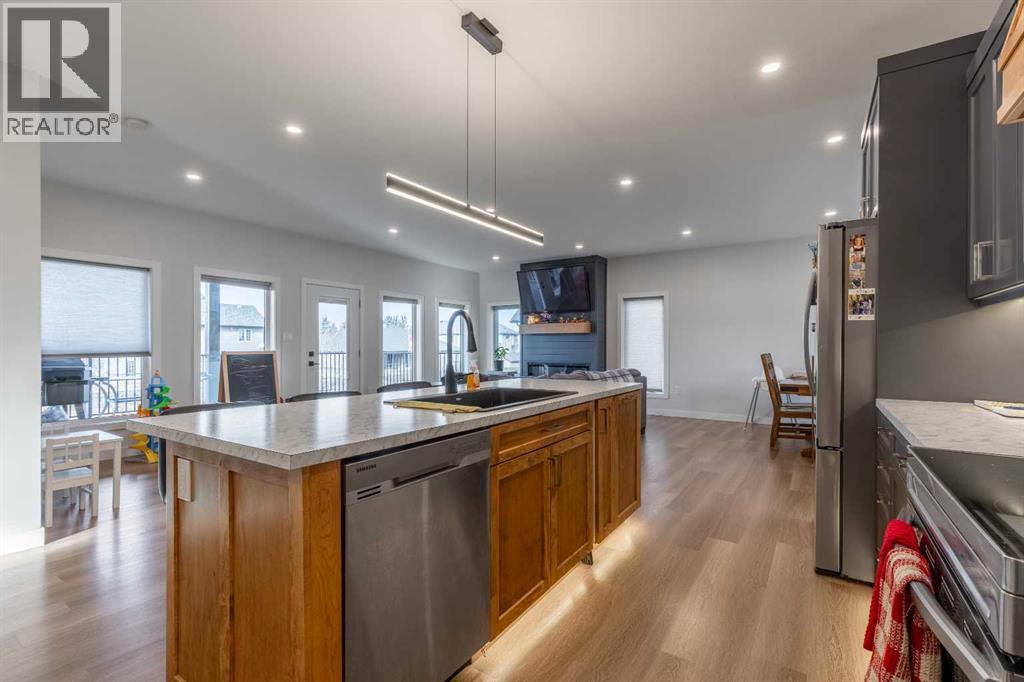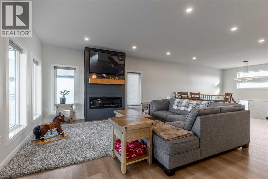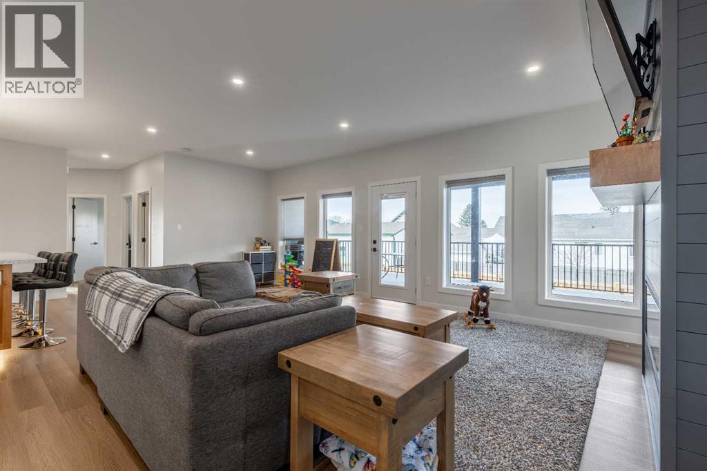 This Nobleford bi-level home was built with comfort in mind, offering a perfect layout for for busy families with enough space to work, play, entertain, and relax! Past the triple attached garage and front porch you'll enter into a bright front foyer with high ceilings. On the main level, a large living room is located beside a comfortable dining room and a spacious kitchen with tons of cupboard space and a huge central island with a sink and breakfast bar. Past the walk-in pantry and down the hall, you'll find two bedrooms and a four-piece bathroom. The entire upper level is a luxurious primary bedroom suite with a walk-in closet and ensuite bath which features a double vanity and a walk-in rain shower with built-in ledge shelving. Downstairs, you can set up the play room or entertainment centre of your dreams, with a large rec room leading down a hall to two more bedrooms, another four-piece bath, a storage area, and a laundry room. On the covered rear deck complete with seating space and recessed lighting, you can look out over the landscaped back yard, keeping an eye on the kids as they play while entertaining friends and family in style. If a stunning home in a quiet neighborhood sounds like the place for you, give your REALTOR® a call and book a showing today! (id:28267)