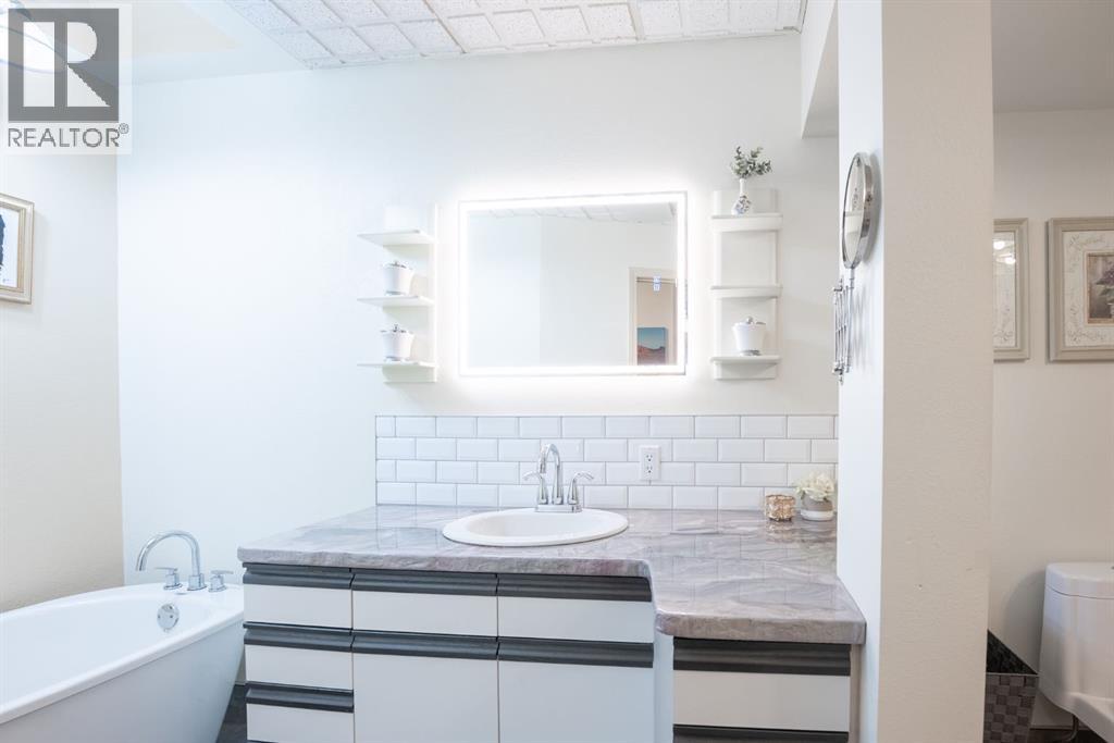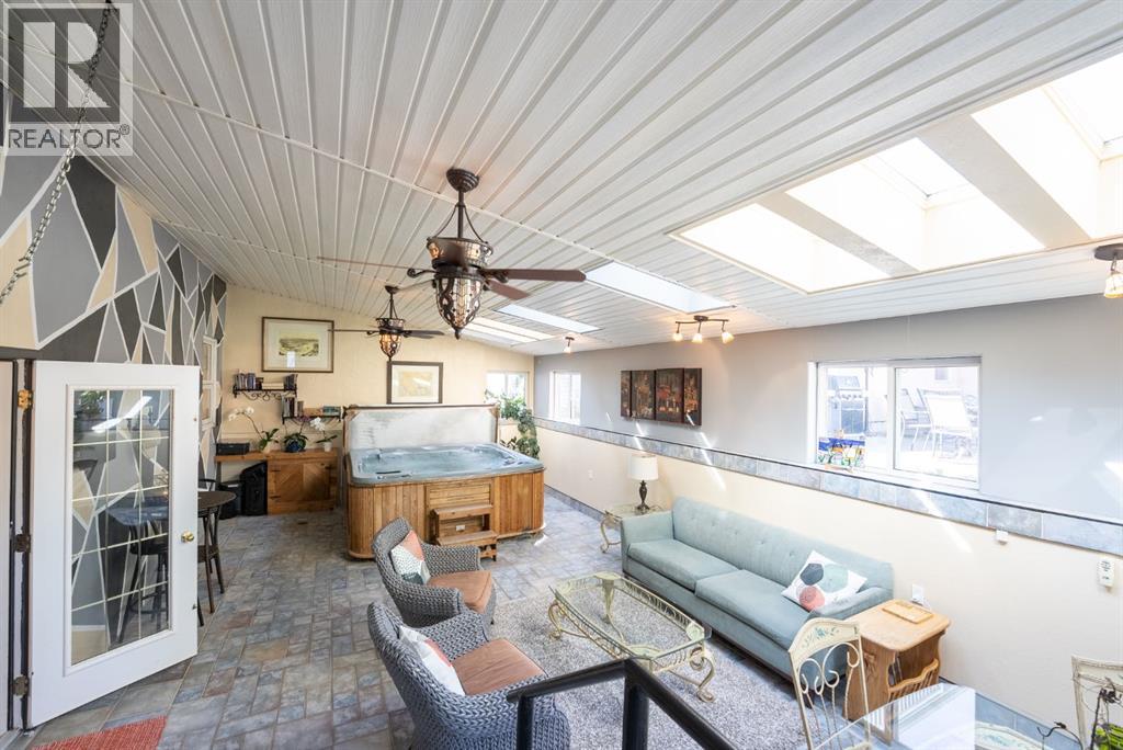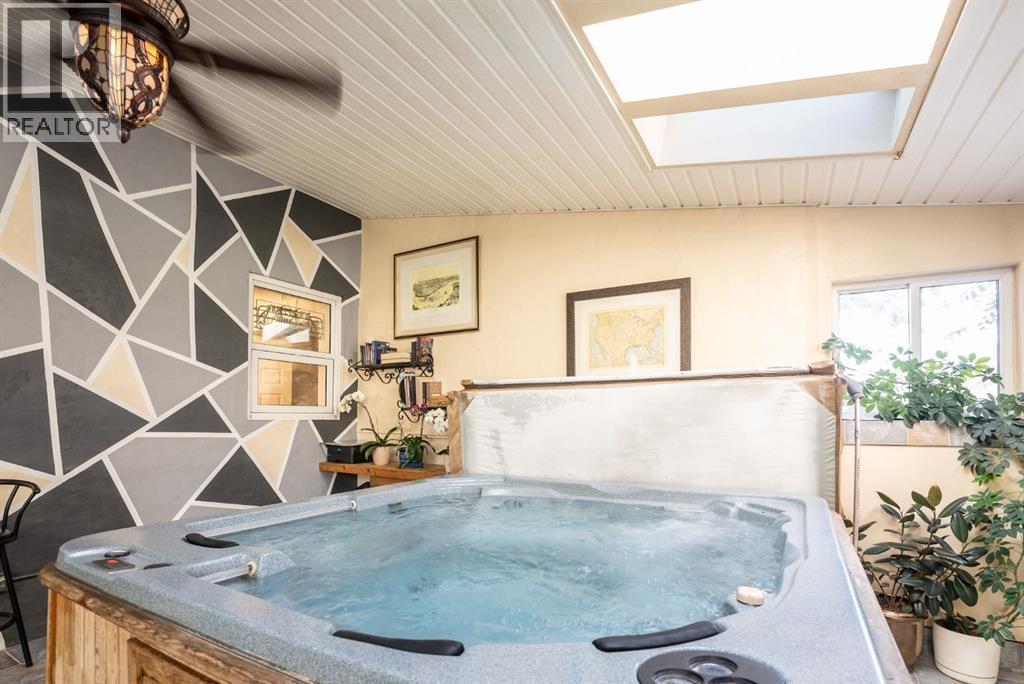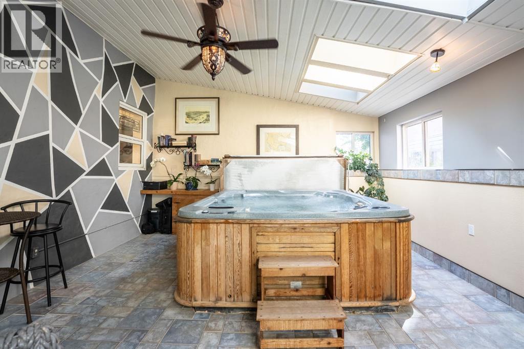 Where History Meets HeartEvery so often, a property comes along that’s truly one of a kind — something you feel the moment you step inside. Once a local church, this extraordinary Southern Alberta home has been lovingly reimagined into a warm and inspiring living space that beautifully blends old-world character with modern comfort.With nearly 5,000 sq. ft. of finished living area, this home offers a lifestyle that’s as flexible as it is stunning. Original maple hardwood floors carry the stories of the past, while thoughtful updates bring a sense of calm luxury throughout. The open-concept main floor is bright and spacious — perfect for gathering, creating, and just being at home.The chef’s kitchen is designed for connection — with generous counter space, custom cabinetry, and room to cook and entertain with ease. Off the kitchen, the sunroom feels like a private escape all its own, with skylights, in-floor heating, and walls of windows surrounding the hot tub — a peaceful spot to unwind any time of year.Downstairs, you’ll find a completely reimagined lower level that mirrors the light and openness of the main floor. Reinforced with steel I-beams and finished with care, it’s a practical and inviting extension of the home, complete with its own walk-up to the yard.The upper level — once a photography studio — is a space that sparks creativity. With soaring 12-foot ceilings, original oak floors, and flexible rooms that can serve as offices, a private retreat, or a studio, it’s ready to evolve with your needs.Step outside and discover your own private sanctuary — three city lots surrounded by mature trees, custom garden beds, and the kind of privacy you don’t often find in town. Whether it’s quiet mornings with coffee or evenings around the firepit, this yard was made for gathering and slowing down.The oversized heated garage (26x28) includes a 775 sq. ft. suite above — a bright, self-contained one-bedroom with in-suite laundry, 12’ ceilings, and A/C — perfect f or guests, family, or rental income. There’s also plenty of parking, including gated RV space and a reinforced parking pad.With its metal roof, custom craftsmanship, and rich history, this property is more than just a home — it’s a statement of style, soul, and possibility.Come see what makes it so special. (id:28267)