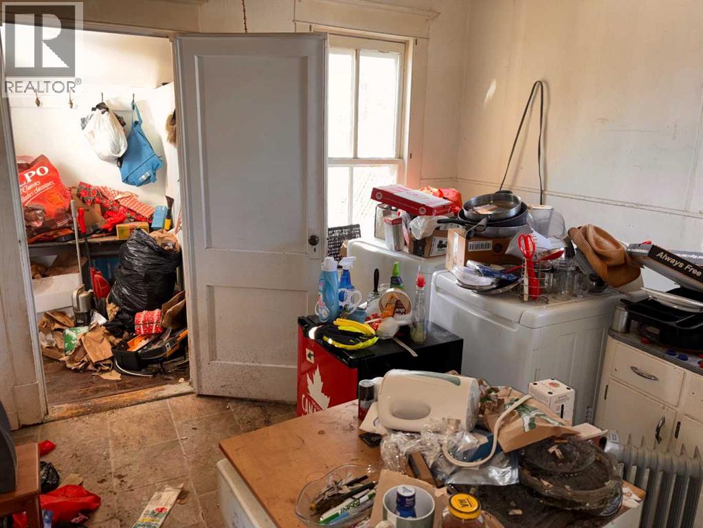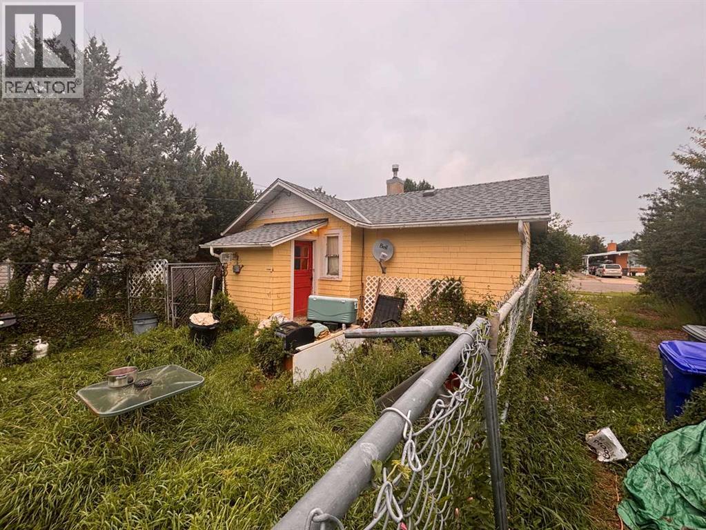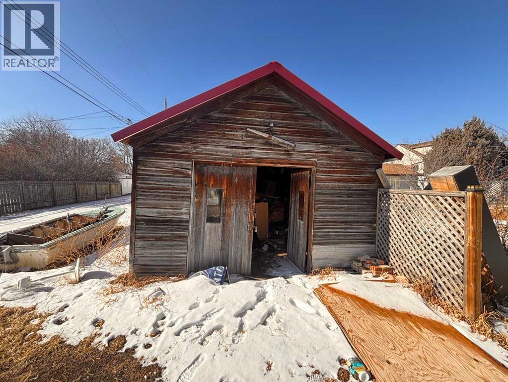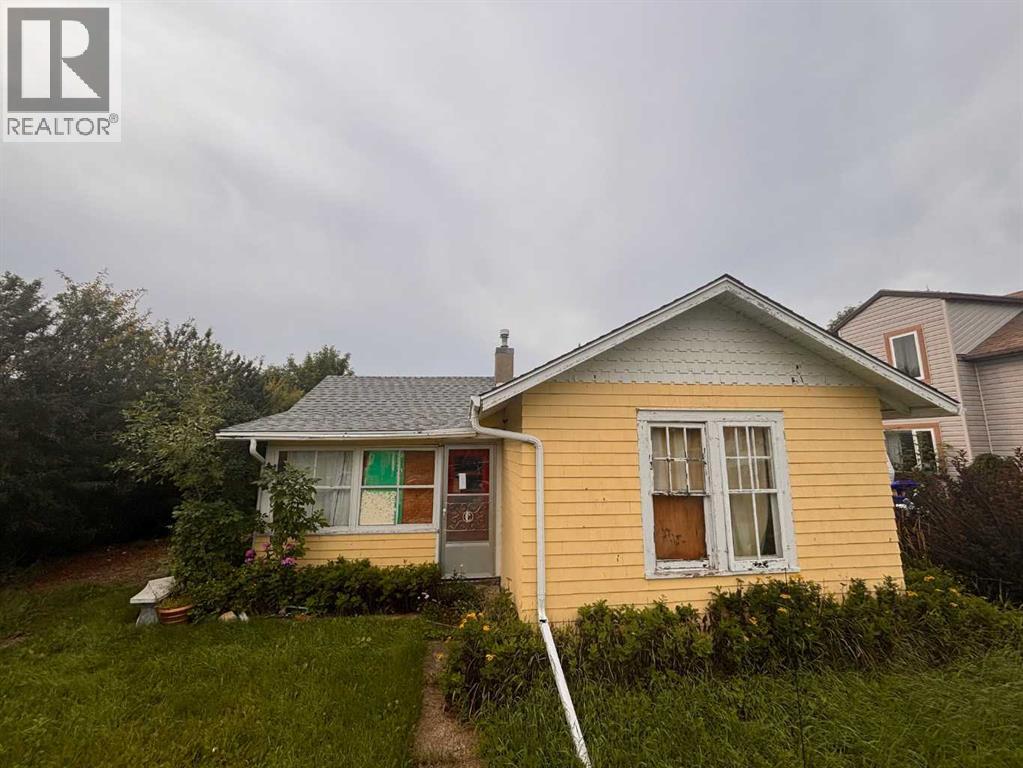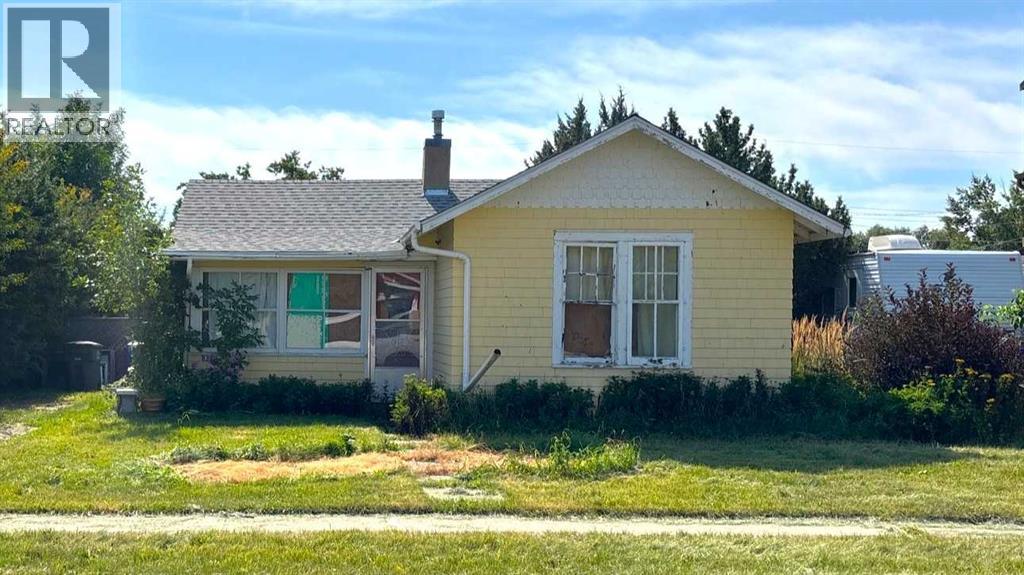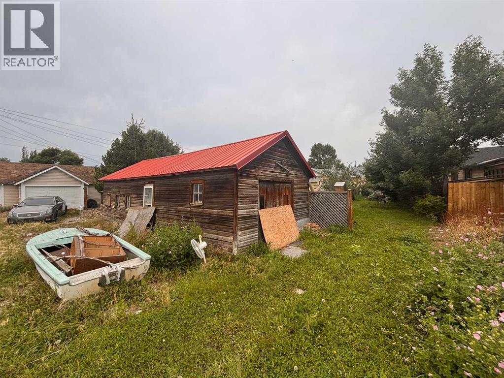 SOLD “as is – where is, on completion” *All offers must be cash and unconditional. Handyman special?, possibly, but much more appropriate for an in-fill opportunity. Located on a quiet street just one block to park, playground; short walk to post office & downtown business district. 1 bedroom bungalow with a full bath featuring a claw foot tub; eat-in kitchen with adjacent pantry, living room, bedroom and a sun porch. Original windows, wide baseboards and original hardwood floors in living room & bedroom. A partial basement houses the mechanical & storage area with an older forced air furnace. Large 50 X 140 lot features perennial beds, large trees, hedges, RV parking and additional parking space off the alley, beside and behind the 32x14 garage / shed. (id:28267)