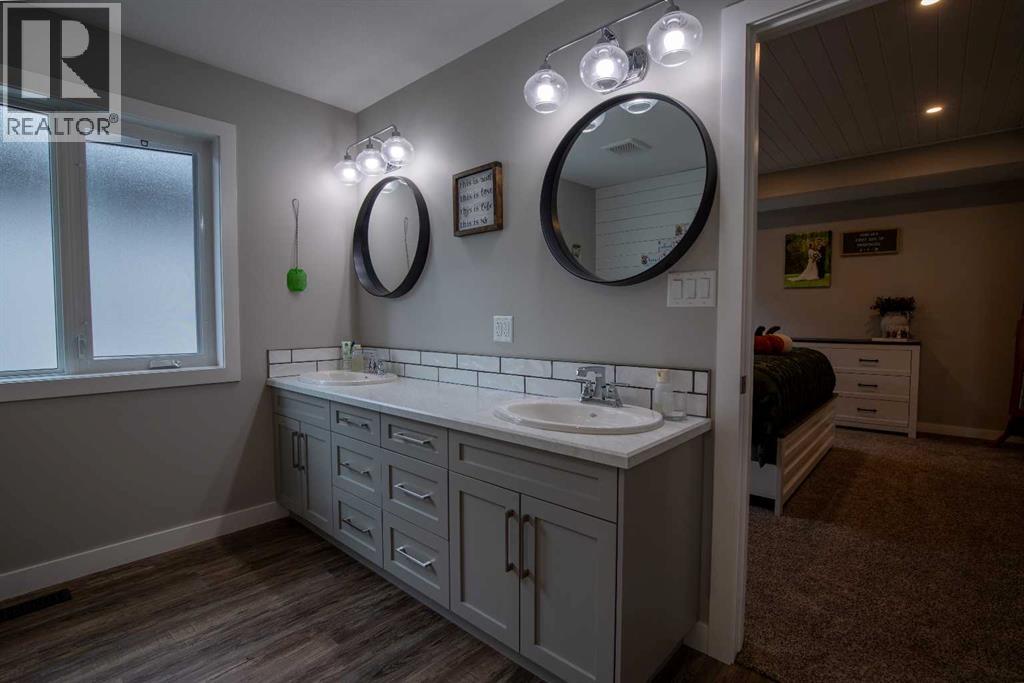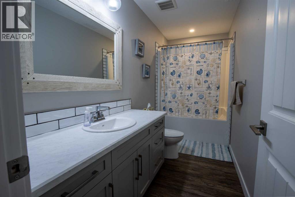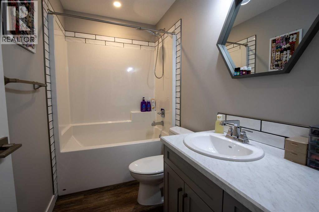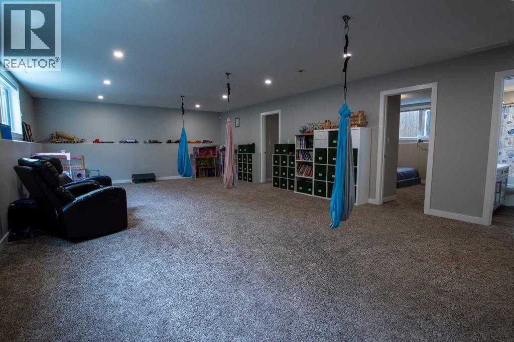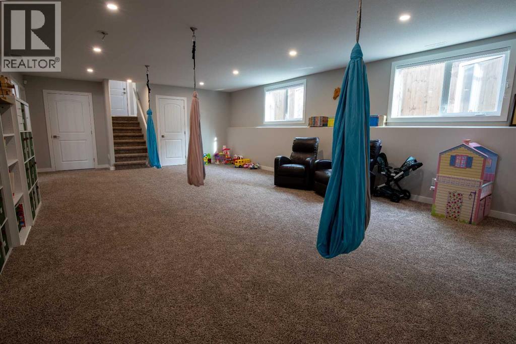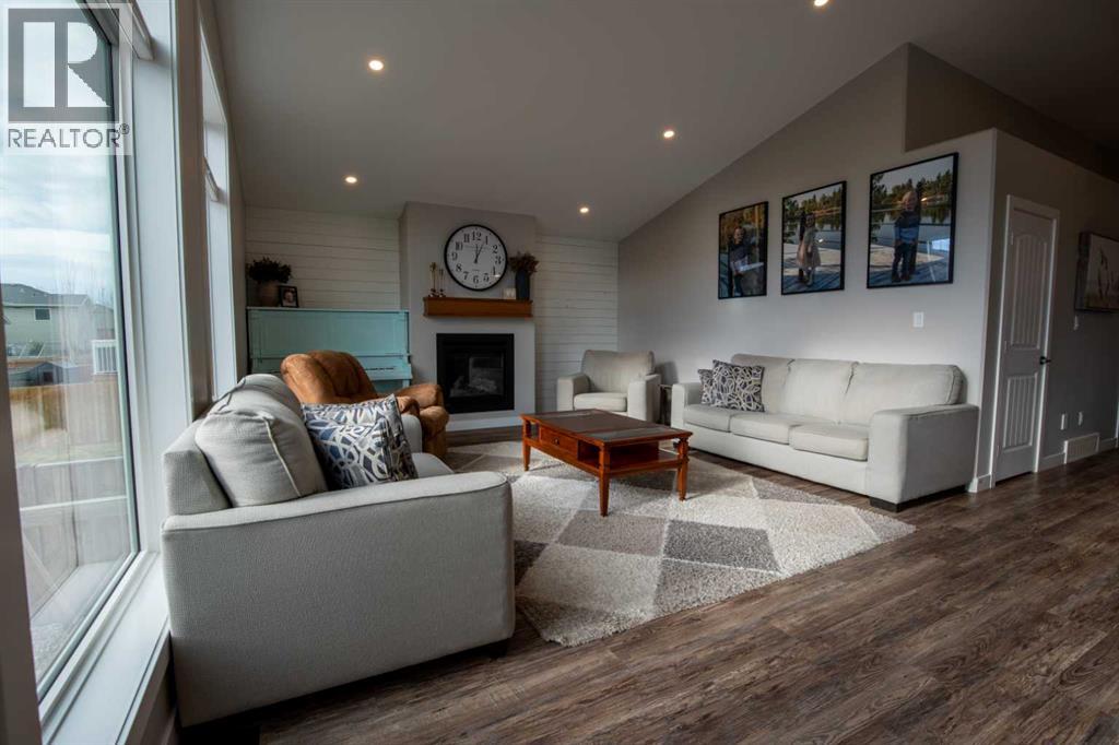 Take a look at this beautiful 2-storey Coalhurst home! This six-bed, four-bath home features a spacious interior with an inviting atmosphere and tasteful attention to detail. Step inside and you'll be greeted by a bright open-concept living room and kitchen. A central kitchen island provides plenty of space for meal prep and a breakfast bar for busy mornings. The nearby dining area is bright and welcoming with both pendant and recessed lighting above. The living room offers a restful space for hosting friends or relaxing solo, with a fireplace and view of the backyard through impressive windows along the rear wall of the home. Also on the main level, the primary suite features a luxurious five-piece ensuite bathroom and walk-in closet. Upstairs, a laundry room with counterspace and cupboard storage can be found alongside a full four-piece bath and two bedrooms, creating the perfect spot to set up a nursery or guest bedroom. On the lower level, a large rec room is surrounded by three more bedrooms, a storage room, and another full bathroom providing plenty of space for the whole family to spread out. Step outside onto the rear deck, and you'll see a play centre and concrete patio with low-maintenance landscaping and young trees throughout which will offer added privacy as they grow. If a beautifully-maintained home with a smart layout and plenty of room to grow into sounds like the place you've been waiting for, give your REALTOR® a call and book a showing today! (id:28267)