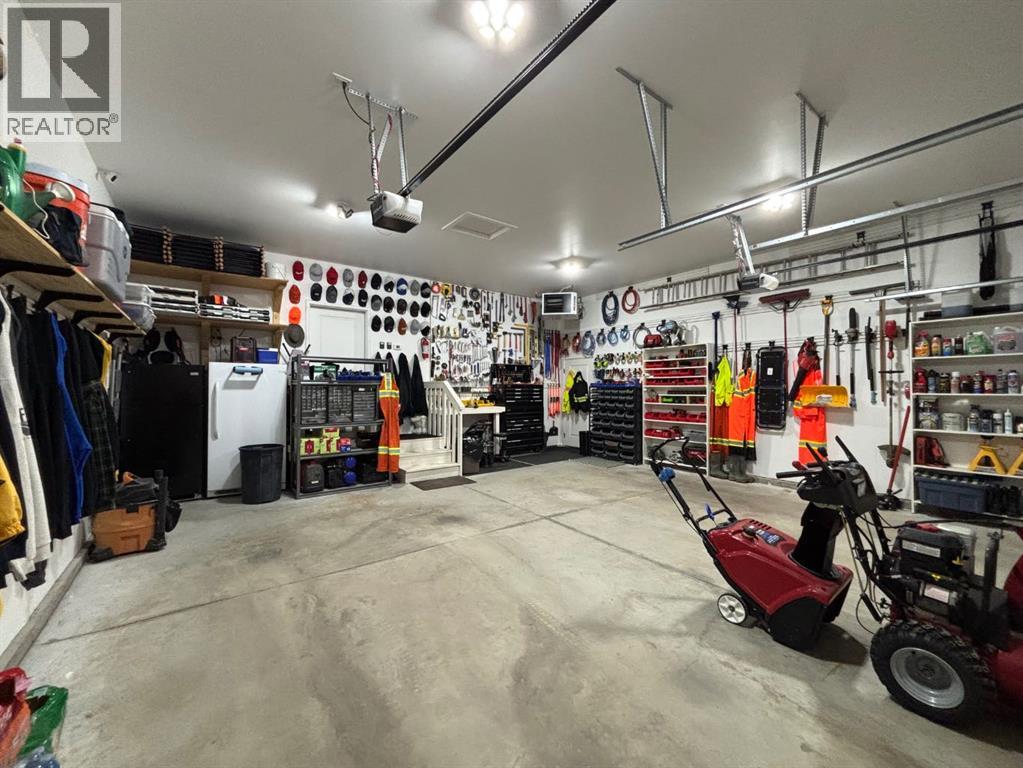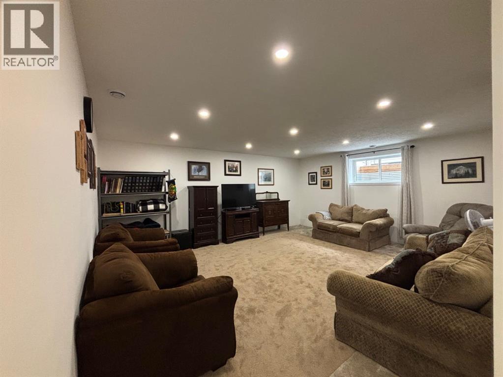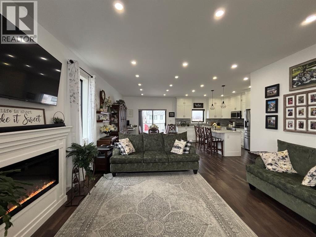 This beautifully built home, completed in 2022, offers 5 bedrooms and 3 bathrooms and truly has it all. The main level welcomes you with a bright, open concept layout featuring the living room, dining area, and kitchen perfect for both everyday living and entertaining. Large windows and abundant pot lights flood the space with light. The spacious kitchen is thoughtfully designed with lots of cabinet space, a large island, and a walk in pantry. Down the hall, you’ll find a 4-piece bathroom, a bedroom, and the primary. The primary bedroom features a generous walk in closet and a stunning 3-piece ensuite with a beautiful shower. The basement includes three additional bedrooms, another 4-piece bathroom, a large family room, and an expansive storage area. Additional highlights include a heated double garage with high ceilings, plenty of parking with a paved driveway, and extra gravel RV parking along the east side of the home. The exterior is just as impressive, with Gemstones installed, and beautifully maintained front and back yards equipped with underground sprinklers. The underground sprinklers can also be connected to town water if the seasonal water isn't accessible. The fully fenced backyard features a 10x14 shed, growing Swedish Columnar Aspen trees, a Silver Cloud Maple tree and a walk out deck that connects directly to the dining area. This exceptional home is move in ready and not to be missed. (id:28267)