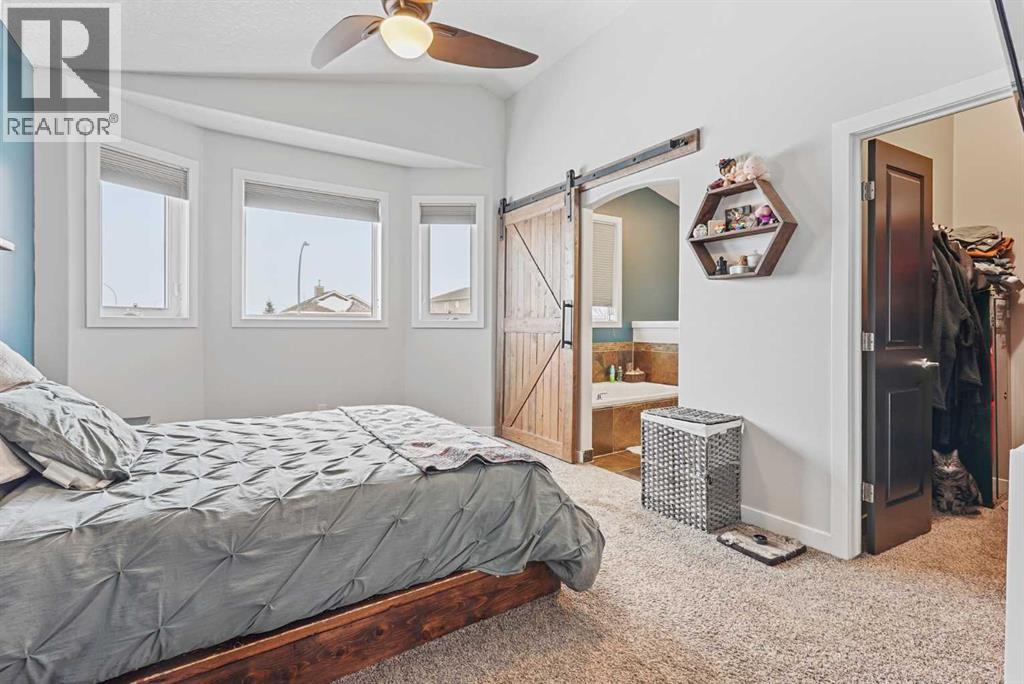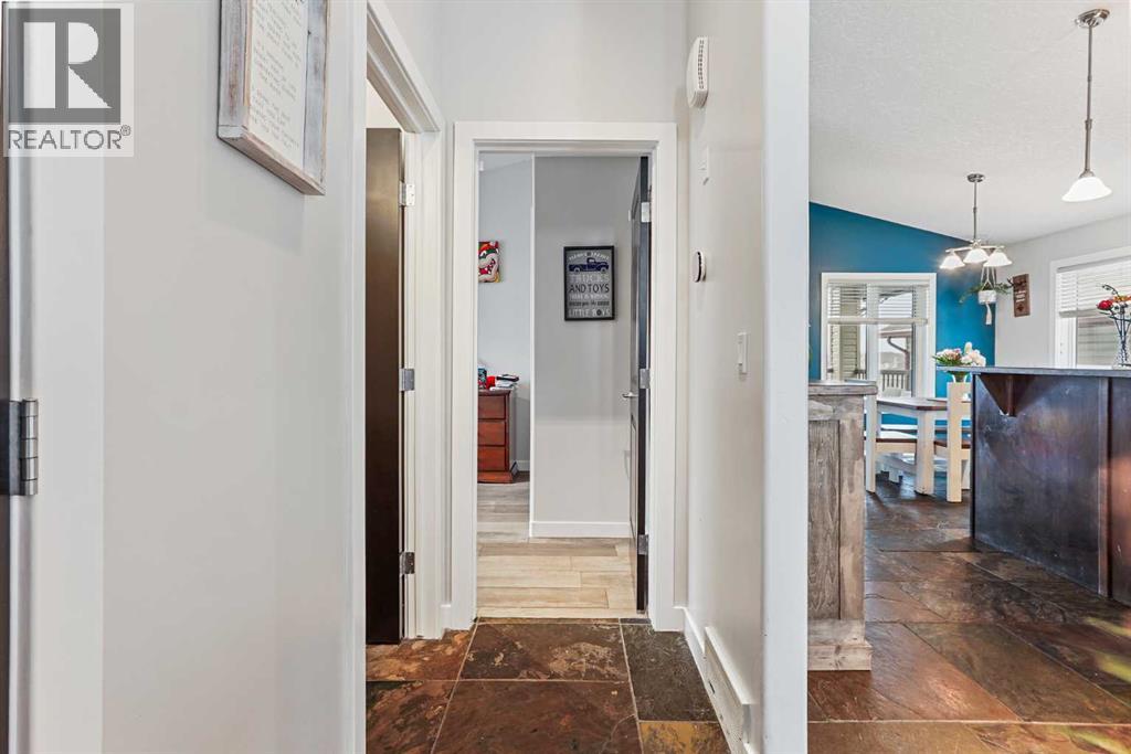 This modified bi-level home offers a balanced layout that prioritizes both natural light and personal privacy. The main floor features airy vaulted ceilings and durable slate flooring that runs through the primary living areas, anchored by large windows that bring in sun throughout the day. A standout feature of the floor plan is the master suite, which is positioned privately above the double attached garage and includes its own four-piece ensuite. Two additional bedrooms and a second full bathroom complete the main level, providing plenty of space for family or guests.?The home continues to impress in the bright walkout basement, which leads directly to a recently landscaped backyard. This lower level adds a fourth bedroom, a third four-piece bathroom, and a dedicated office space perfect for a quiet work-from-home setup. With a double attached garage and a functional, uncrowded design, this home offers a practical and inviting environment both inside and out. Situated in a quiet neighborhood, this home is just a short walk from a local park and within easy reach of nearby shopping an d amenities. This location offers a perfect balance of community convenience and a peaceful residential feel. (id:28267)