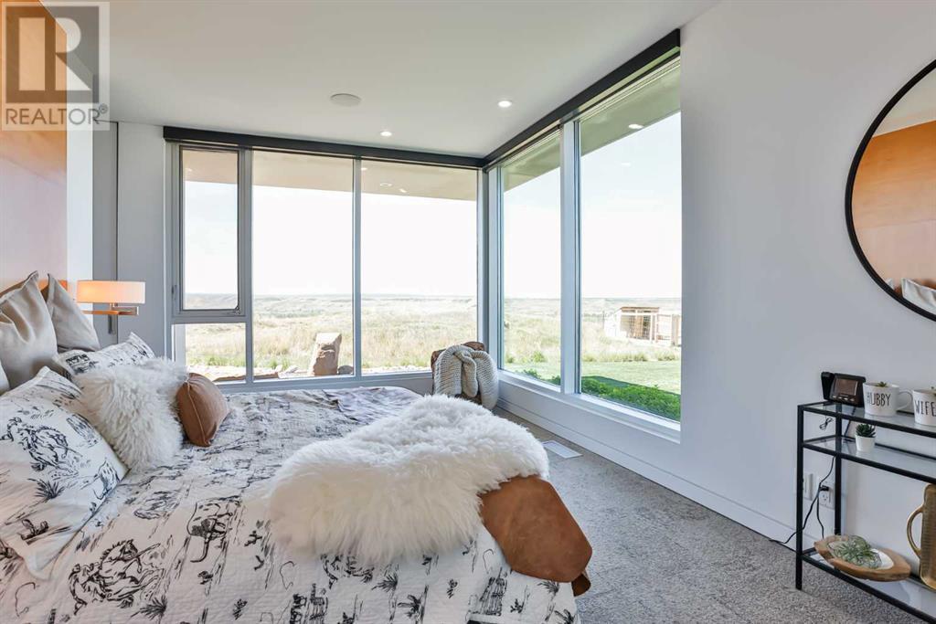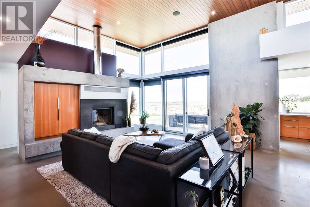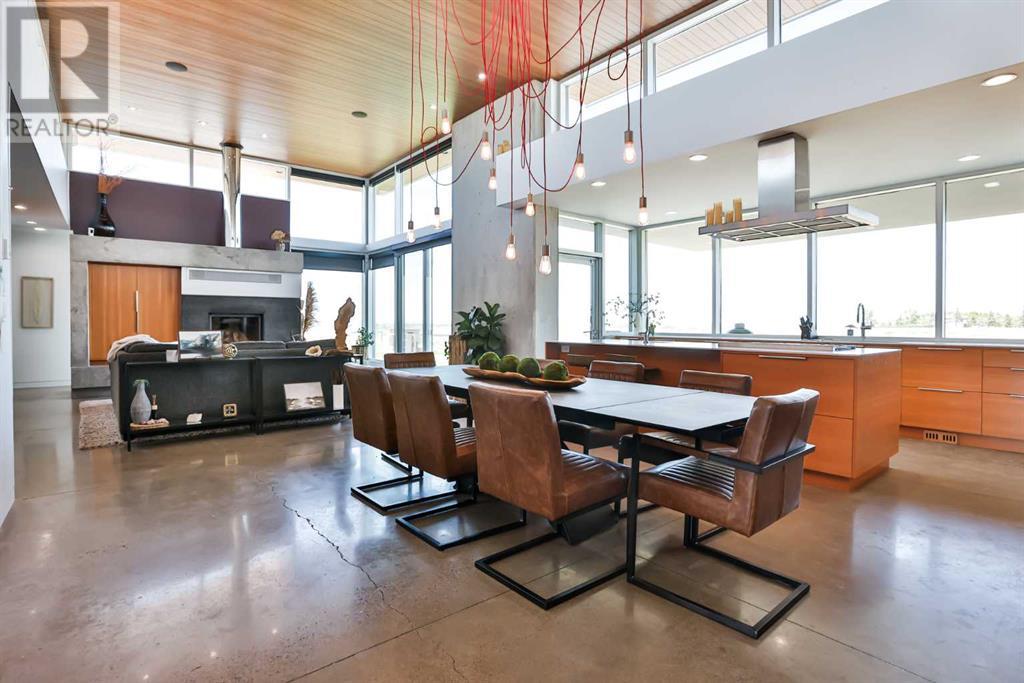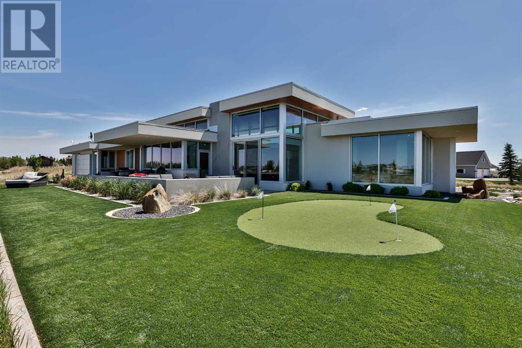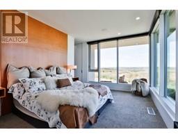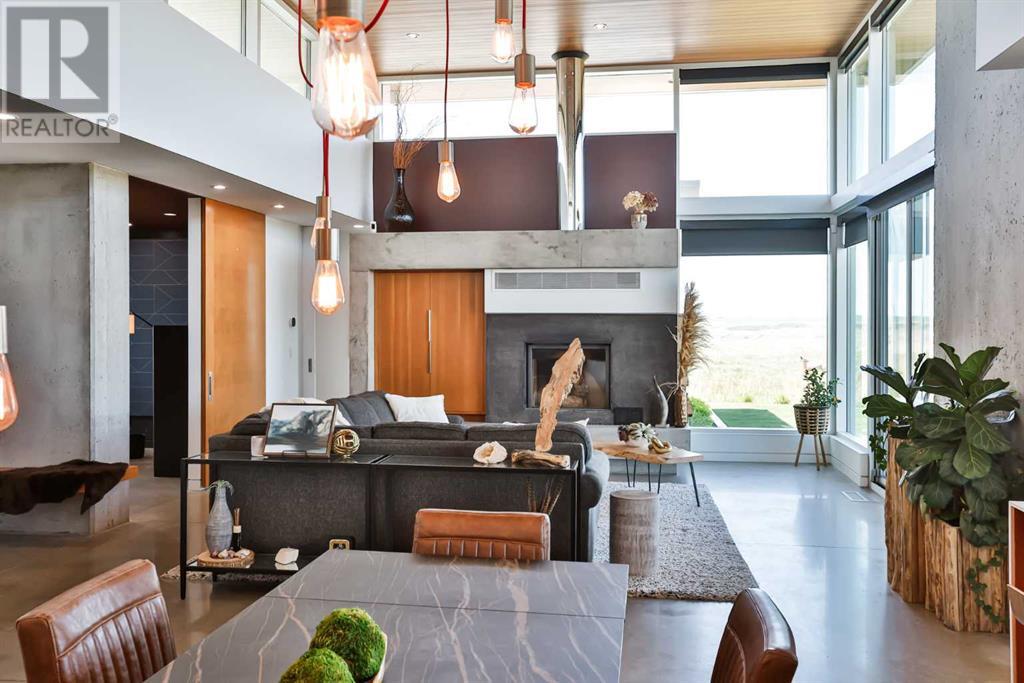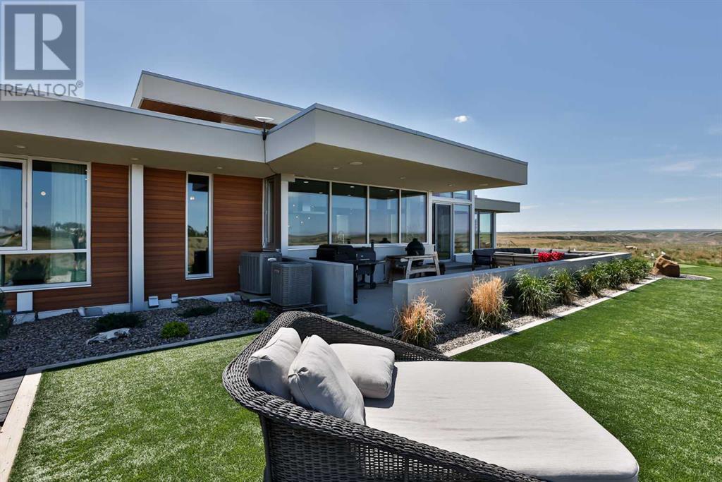 This property is as close to *Selling Sunset* as you'll find in Southern Alberta! This sprawling modern bungalow will capture your attention with the breathtaking view of the coulee in the distance. Stepping through the impressive wood pivot door, you know you're in for a treat. The main floor features 14-foot ceilings, complemented by floor-to-ceiling triple-pane commercial glass windows that will leave you speechless! The open-concept layout seamlessly combines the dining, living, and kitchen areas, with polished concrete floors being warmed by light wood cabinetry. The sleek white, quartz countertops, showcase your kitchen and island area, with windows that create a delightful connection between your indoor and outdoor spaces. The impressive appliance package, featuring a gas cooktop, a cabinet-paneled oversized fridge, a built-in microwave and oven, and a wine fridge. A coffee lover's dream, a built-in Miele espresso machine rivals even the best cafés. A cleverly hidden pantry door adds an extra touch of seamlessness! The living room is anchored by an oversized wood-burning fireplace, transom windows fill the space with natural light. There is an office with stylish floating shelves sits off of the Living room. The primary suite, features floor-to-ceiling windows that wrap the corner, providing spectacular morning & sunset views right from your bed. The walk-around closet is a shopper's dream, while the bright and airy ensuite features double vanities and a luxurious steam shower. Off the kitchen lies a spacious laundry/all-purpose room perfect for sewing or supervising homework while you prepare dinner. In the east wing, you’ll find three spare bedrooms. One has its own ensuite bathroom, while the other two share a Jack and Jill bathroom with a beautifully tiled shower, double vanities, and a skylight that invites natural light. Continuing down the hallway, another floor-to-ceiling glass panel reveals your very own gymnasium, measuring an impressive 32 x 40 fee t with 20-foot ceilings, complete with built-in basketball hoops, pickleball court & 3 wide closet for organizing all your sports gear. Floating wood stairs with striking black railings lead you to the basement living room, perfect for movie nights, and entertaining with your side bar. With large windows typical of a walkout basement, this space feels open and bright, completed by a half bath. Outside the gym exit, is a newly installed large sunken patio that blends with the home’s aesthetic. Complete with double gas fireplaces, a pergola, and oversized hot tub. The main patio off the kitchen features a covered deck, built-in speakers, a gas fire pit, and views that are unmatched in all of Southern Alberta. Equipped with cutting-edge technology, most lights, blinds, heating, cooling, and music can be controlled via a control panel or your phone—an upgrade valued at $100,000! The home also offers both forced air and indulgent in-floor heating. Call your REALTOR® for a private viewing today! (id:28267)