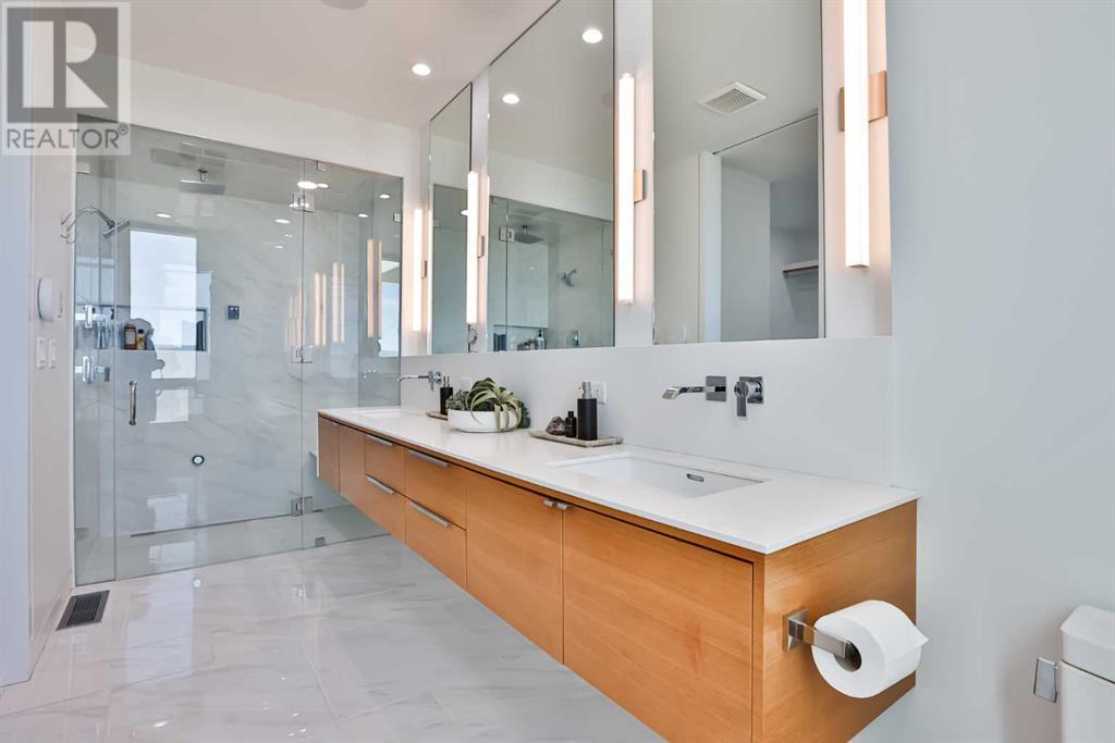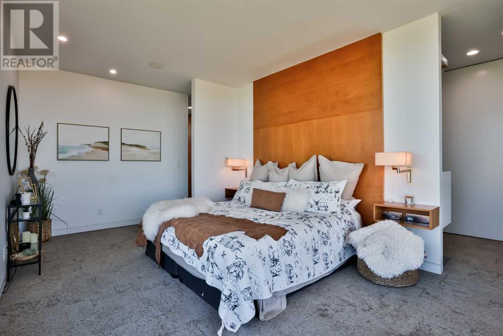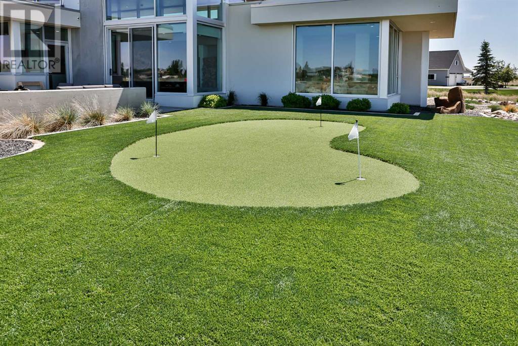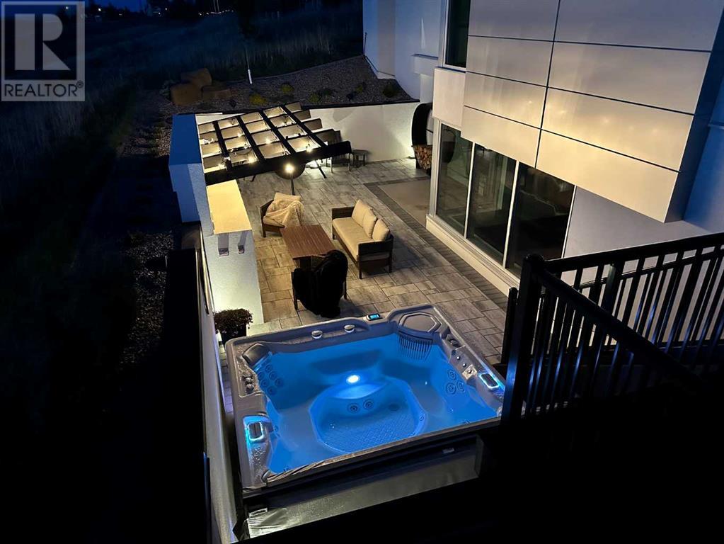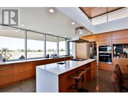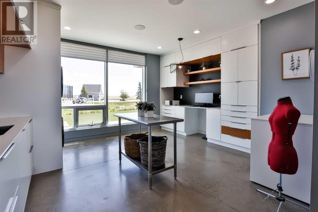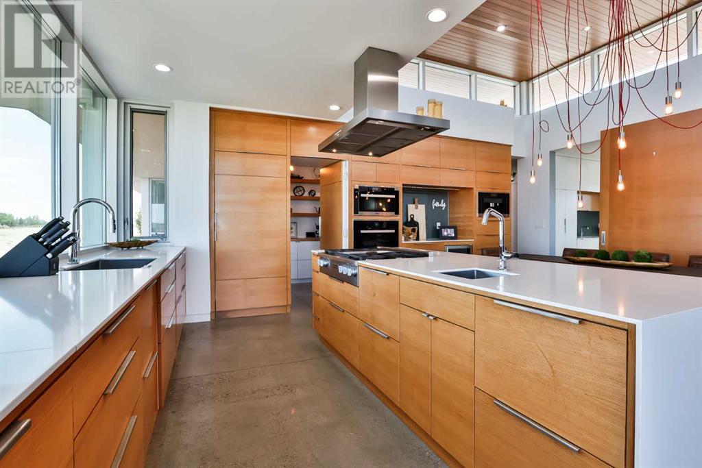 This property is as close to *Selling Sunset* as you'll find in Southern Alberta! This sprawling modern bungalow will capture your attention with the breathtaking view of the coulee in the distance. Stepping through the impressive wood pivot door, you know you're in for a treat. The main floor features 14-foot ceilings, complemented by floor-to-ceiling triple-pane commercial glass windows that will leave you speechless! The open-concept layout seamlessly combines the dining, living, and kitchen areas, with polished concrete floors being warmed by light wood cabinetry. The sleek white, quartz countertops, showcase your kitchen and island area, with windows that create a delightful connection between your indoor and outdoor spaces. The impressive appliance package, featuring a gas cooktop, a cabinet-paneled oversized fridge, a built-in microwave and oven, and a wine fridge. A coffee lover's dream, a built-in Miele espresso machine rivals even the best cafés. A cleverly hidden pantry door adds an extra touch of seamlessness! The living room is anchored by an oversized wood-burning fireplace, transom windows fill the space with natural light. There is an office with stylish floating shelves sits off of the Living room. The primary suite, features floor-to-ceiling windows that wrap the corner, providing spectacular morning & sunset views right from your bed. The walk-around closet is a shopper's dream, while the bright and airy ensuite features double vanities and a luxurious steam shower. Off the kitchen lies a spacious laundry/all-purpose room perfect for sewing or supervising homework while you prepare dinner. In the east wing, you’ll find three spare bedrooms. One has its own ensuite bathroom, while the other two share a Jack and Jill bathroom with a beautifully tiled shower, double vanities, and a skylight that invites natural light. Continuing down the hallway, another floor-to-ceiling glass panel reveals your very own gymnasium, measuring an impressive 32 x 40 fee t with 20-foot ceilings, complete with built-in basketball hoops, pickleball court & 3 wide closet for organizing all your sports gear. Floating wood stairs with striking black railings lead you to the basement living room, perfect for movie nights, and entertaining with your side bar. With large windows typical of a walkout basement, this space feels open and bright, completed by a half bath. Outside the gym exit, is a newly installed large sunken patio that blends with the home’s aesthetic. Complete with double gas fireplaces, a pergola, and oversized hot tub. The main patio off the kitchen features a covered deck, built-in speakers, a gas fire pit, and views that are unmatched in all of Southern Alberta. Equipped with cutting-edge technology, most lights, blinds, heating, cooling, and music can be controlled via a control panel or your phone—an upgrade valued at $100,000! The home also offers both forced air and indulgent in-floor heating. Call your REALTOR® for a private viewing today! (id:28267)