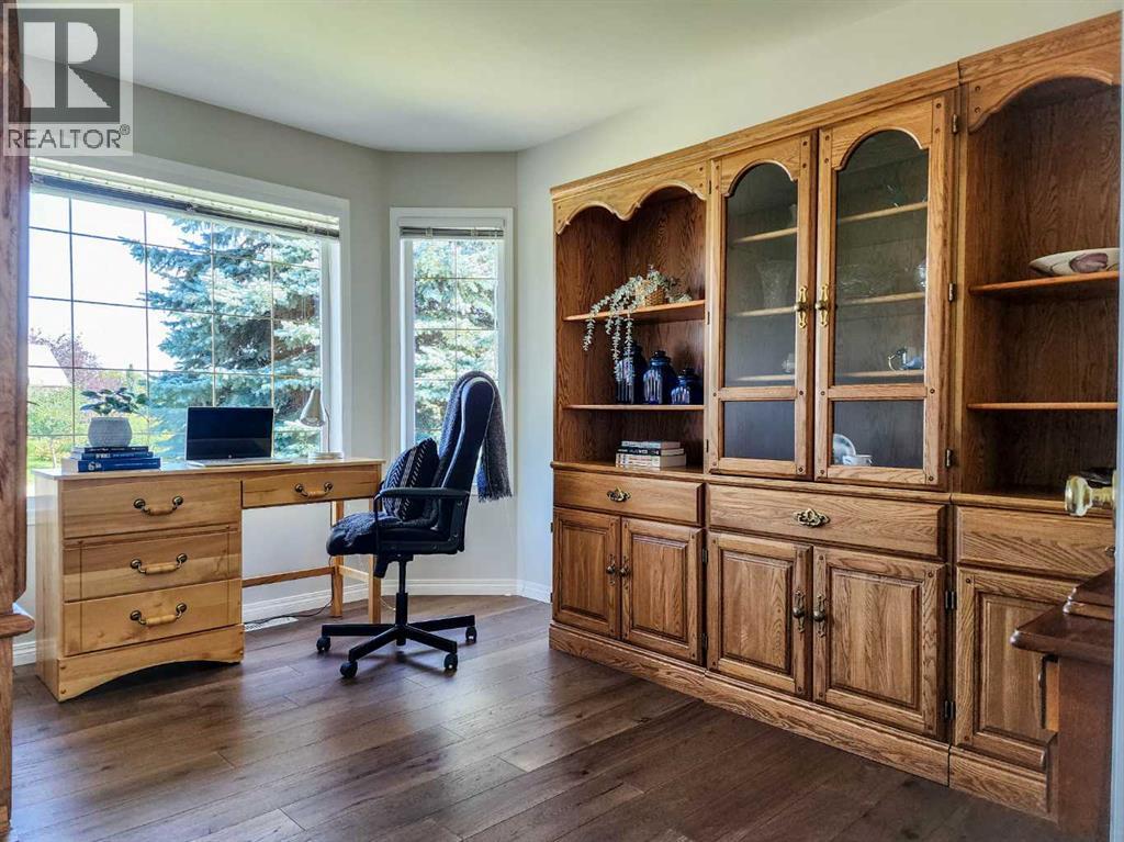 Golf Course Living at Its Finest – Immaculate Custom Home on the 7th Fairway in Claresholm.Welcome to this beautifully appointed custom home, perfectly situated along the 7th fairway of the Claresholm Golf Course. With breathtaking views from nearly every room, this 2-bedroom plus den (or optional 3rd bedroom), 2-bath residence offers modern updates and thoughtful functionality — ideal for retirees, professionals, or families seeking serene golf course living.Lovingly maintained by its original owner, the home was extensively renovated just five years ago and features a refined, open-concept layout with high-end finishes throughout.Step through the tiled foyer and into the airy main living space, where vaulted ceilings and oversized picture windows flood the home with natural light and stunning fairway views. The living room is anchored by a dramatic three-sided glass fireplace, framed by custom built-in shelving and decorative ledges — perfect for plants, art, or curated collections.The chef’s kitchen is the heart of the home, featuring floor-to-ceiling custom cabinetry, quartz countertops, a stylish tile backsplash, and a large center island with storage — ideal for entertaining. A generous pantry offers excellent storage, while a patio door lead directly to a spacious, maintenance-free deck — perfect for al fresco dining and sunset cocktails.The main floor also includes a versatile front den or third bedroom, a beautifully updated 4-piece bathroom, and a spacious secondary bedroom. The luxurious primary suite is a true retreat, offering private deck access and uninterrupted views of the golf course. The spa-inspired ensuite boasts a walk-in tiled shower with glass blocks which allows loads of natural light , double quartz vanity with high end cabinetry.Additional highlights include an expansive DuraDeck deck with tinted glass panels and aluminum railings, offering unobstructed views of the golf course. Inside, you'll find engineered hardwood and til e flooring throughout the main level, along with a convenient main floor laundry room located just off the kitchen. The 21' x 24' double attached garage includes a man door for easy backyard access. A spacious unfinished basement provides endless potential for future development. The low-maintenance yard and exterior ensure carefree living year-round.This is your opportunity to own a meticulously cared-for home in one of Claresholm’s most desirable golf course communities — where elegance, comfort, and lifestyle come together. (id:28267)