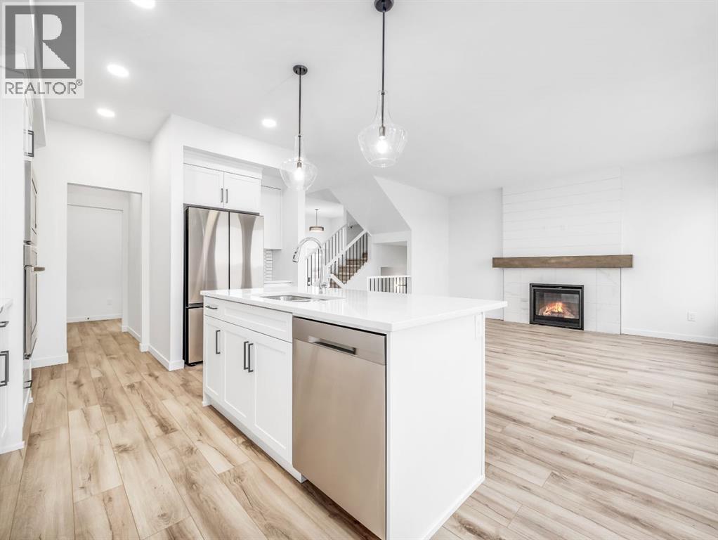 Welcome to the "Aerin "model by Avonlea Homes. RARE OPPORTUNITY TO OWN A WALKOUT BASEMENT BACKING ONTO POND, TRIPLE CAR GARAGE. Upon entry, hang up your coats in the beautiful mud room conveniently situated near the garage entrance. Unload your groceries effortlessly with immediate access from the mud room to the walk through pantry. the main floor includes a convenient 2-piece bathroom, and a central staircase. The open concept adds to the entertaining- friendly layout with easy access to the back deck. Enjoy the gas fireplace on these cold winter nights. Large windows throughout allow for natural sunlight to fill the home. The upper level features a spacious bonus room, 3 bedrooms, Master retreat with walk-in closet and 5 piece ensuite with separate tub and shower and dual sinks separated by a sliding barn door. There is also a bright laundry room with laundry sink. The unfinished basement and is set up for a future family room, bedroom and another full bath. Enjoy the TRIPLE GARAGE for parking and extra storage. Located in Southbrook close to new school, playground and park. Also close to all the amenities the South side has to offer. NHW. Home is virtually staged. (id:28267)