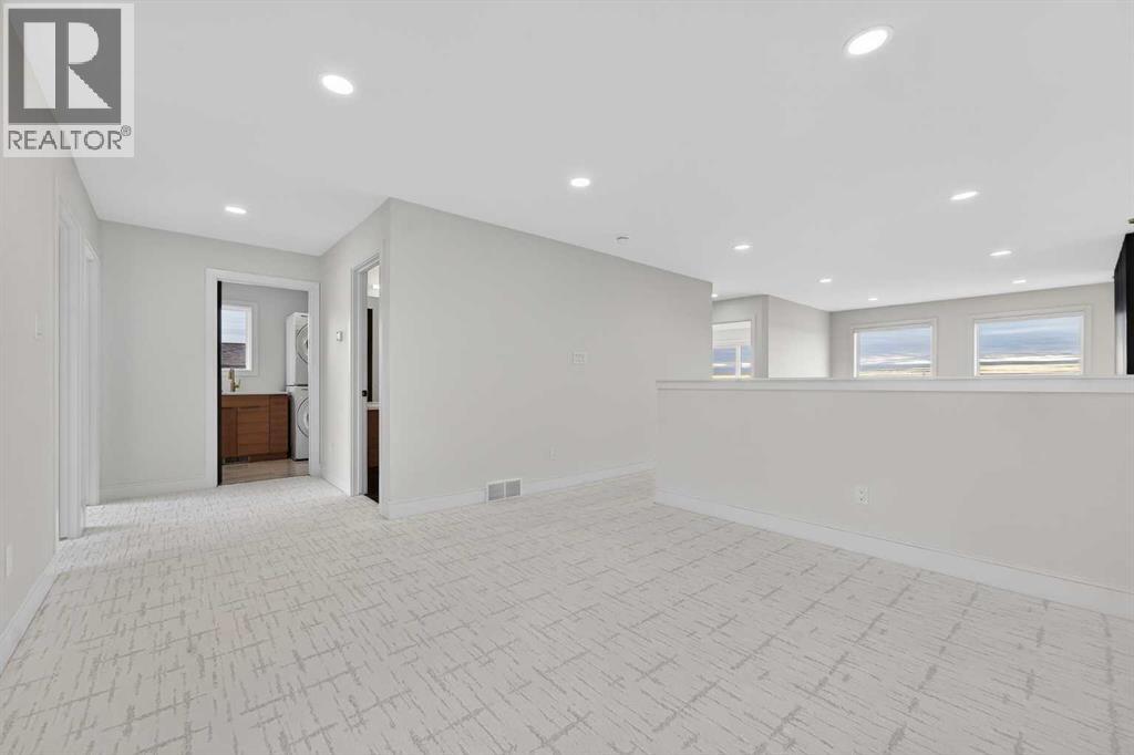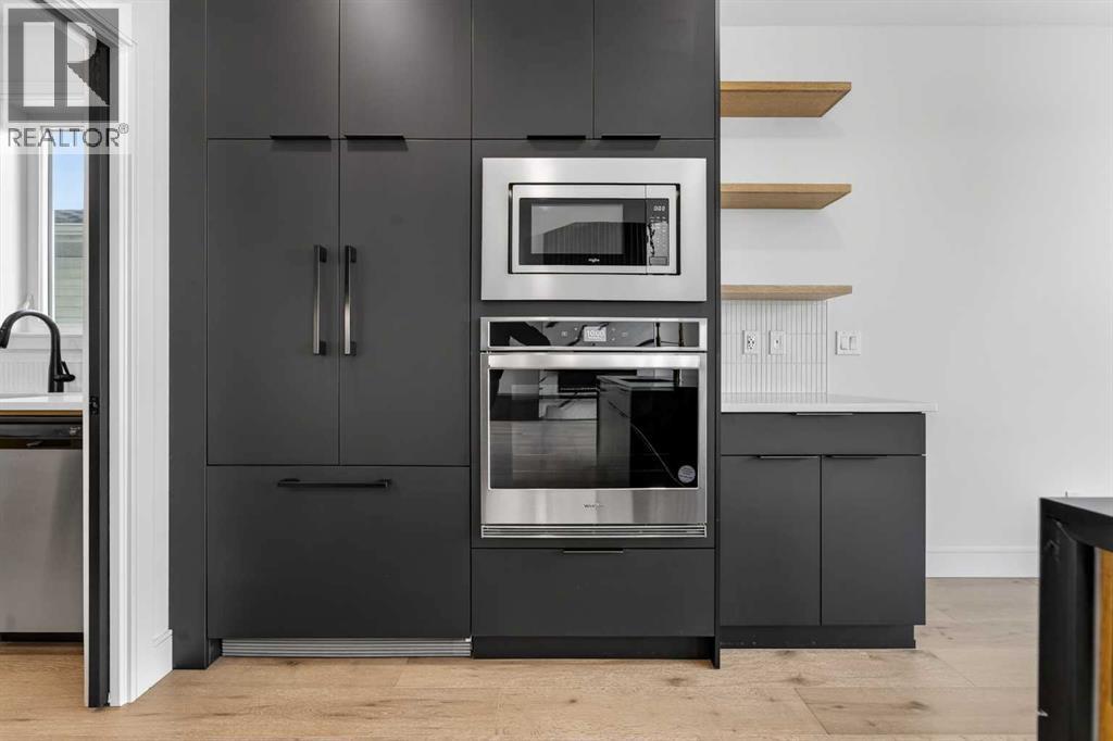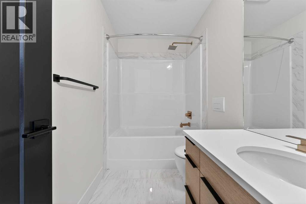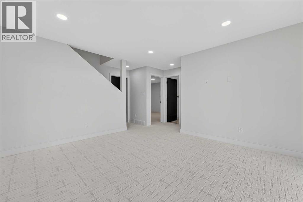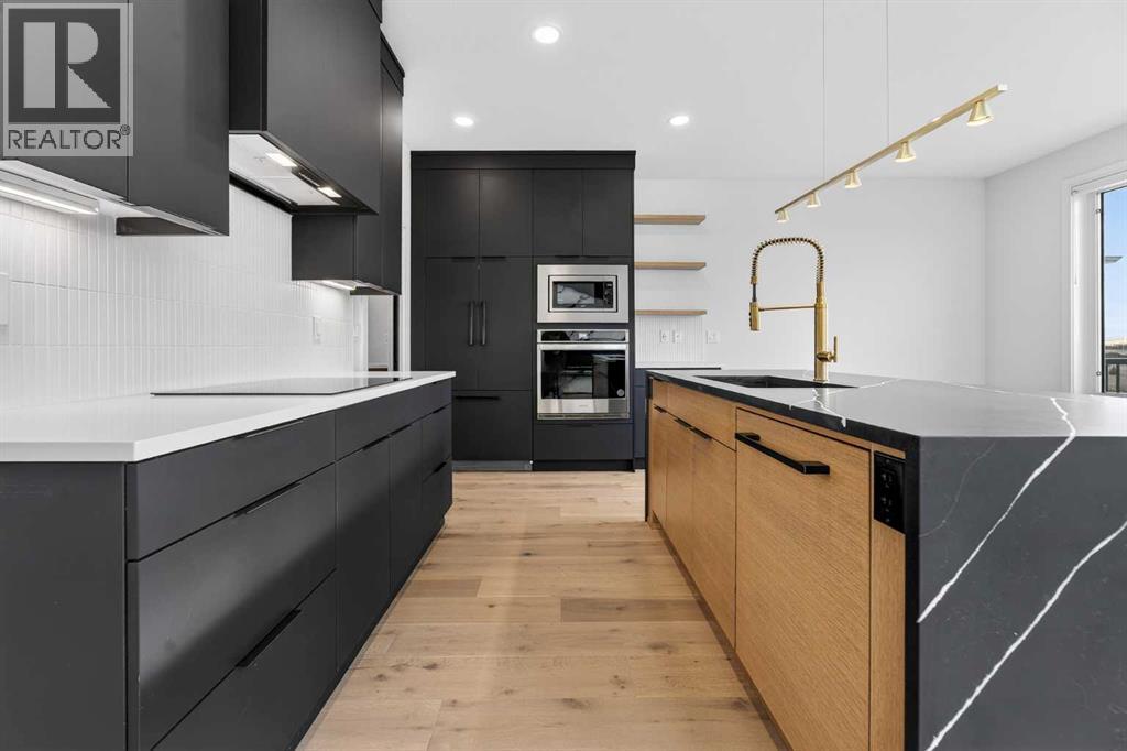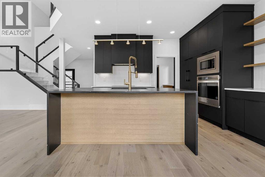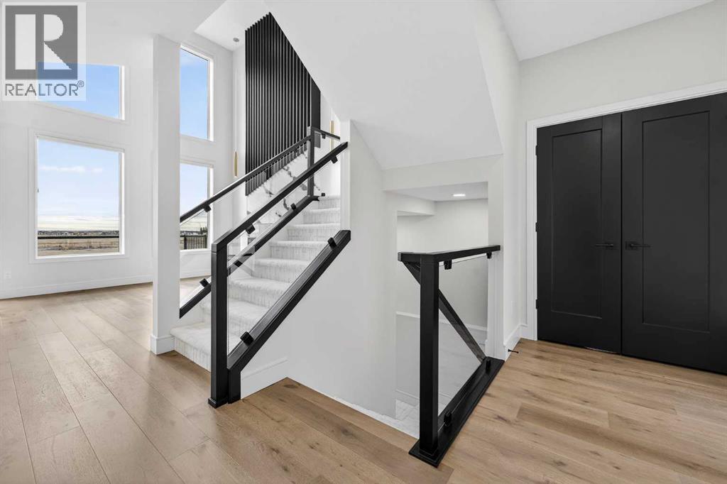 This brand new Stranville Living Master Builder showhome showcases the highly sought-after Perth 2 floor plan and is perfectly positioned in Southbrook with tranquil pond views and quick access to some of Lethbridge’s best amenities. Fully developed with a walkout basement, this home was designed to impress from the moment you step inside, blending bold architectural choices with everyday functionality in a way only a true showhome can.The main floor is anchored by a stunning open-to-above living room, where oversized windows frame the pond behind the home and flood the space with natural light. The fireplace is a true design feature here, set against dramatic vertical detailing and sleek modern finishes that instantly draw your eye upward and emphasize the home’s scale. The kitchen is equally striking, featuring a waterfall matte black island that grounds the space, paired with contrasting cabinetry, statement lighting, and a butler’s pantry complete with a gas range—ideal for both entertaining and keeping the main kitchen pristine. Step out back onto the full-length deck and enjoy uninterrupted pond views, making this space as functional as it is scenic.Upstairs, the second level offers three spacious bedrooms and a large bonus room that works perfectly as a family lounge, media space, or kids’ retreat. The primary bedroom is a standout, with expansive pond views that feel calm and private, and an ensuite that rivals a luxury hotel. Here you’ll find a floating vanity with undermount lighting, a skylight that fills the room with natural light, a standalone soaker tub, and a beautifully finished curbless shower. The walk-in closet is thoughtfully designed to connect directly through to the main floor laundry room, adding a level of convenience that’s both smart and intentional.The fully developed walkout basement continues the home’s versatility, offering two additional bedrooms, a four-piece bathroom, and direct access to the backyard and pond beyond. Whether you’re looking for space for family, guests, or simply want a home that showcases premium design from top to bottom, this Southbrook showhome delivers on every level with views, layout, and finishes that truly set it apart. (id:28267)