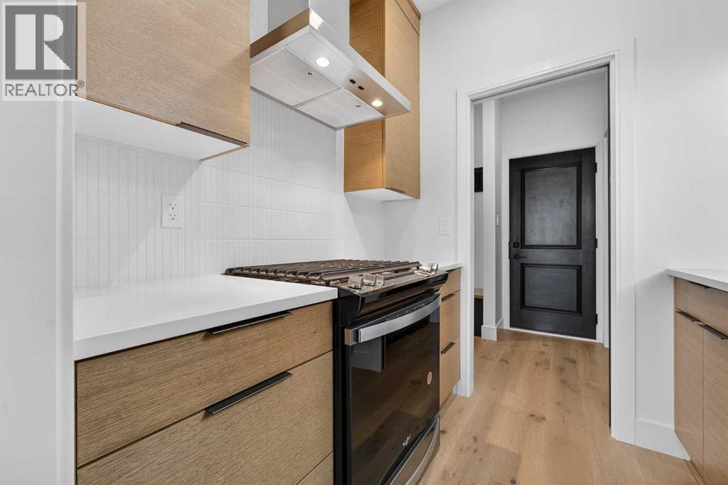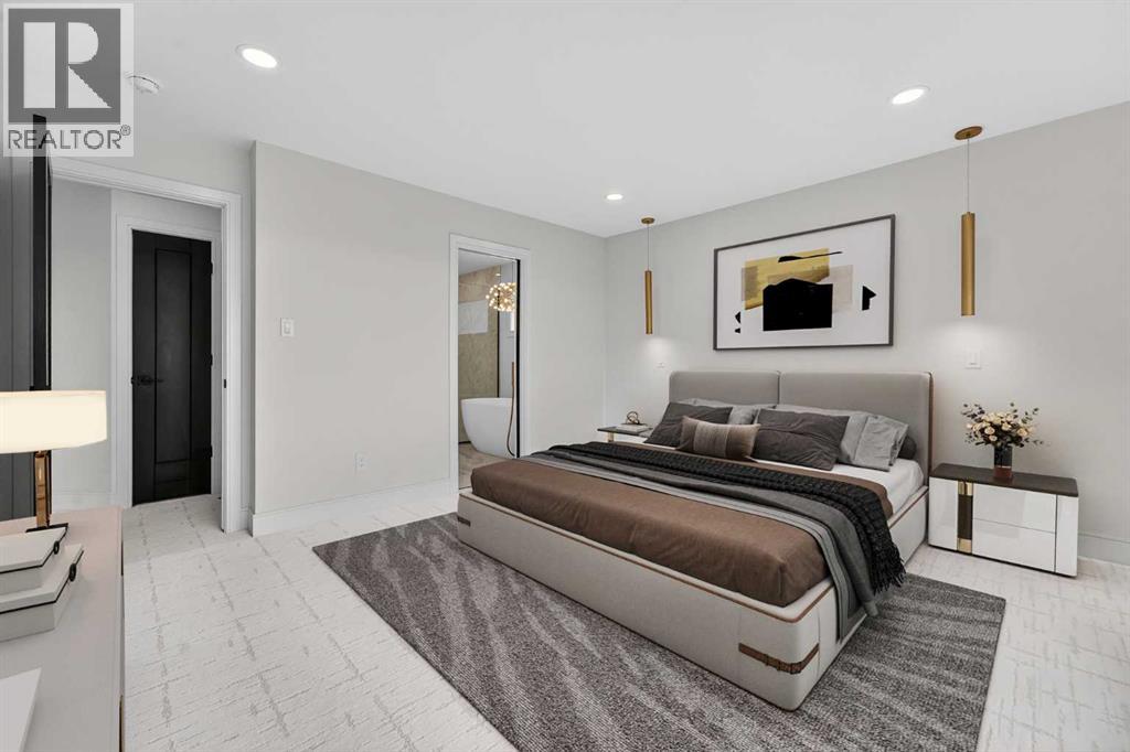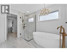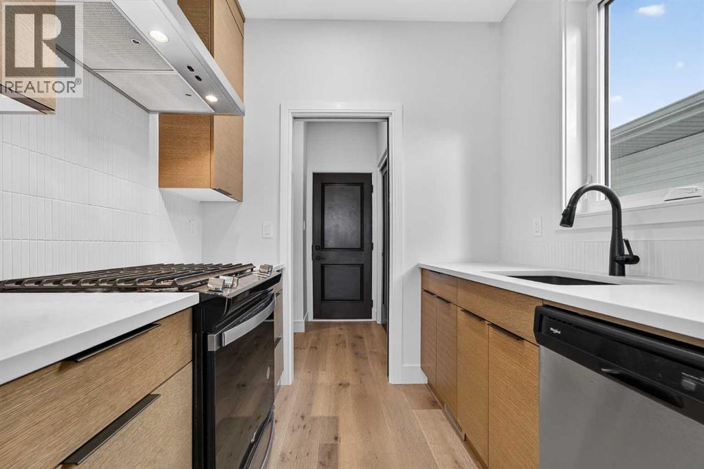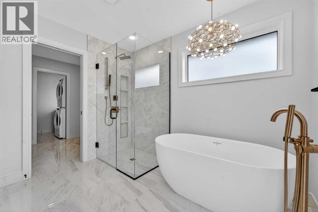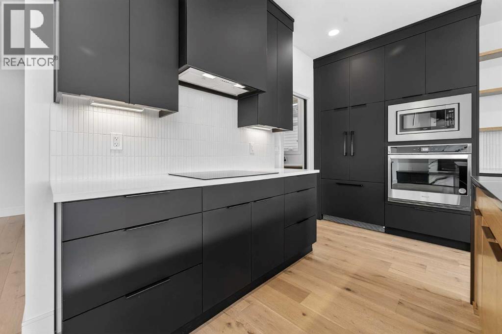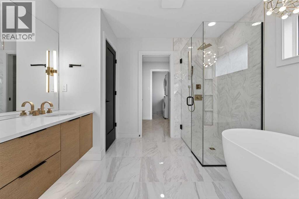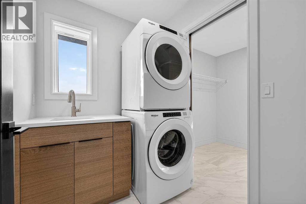 This brand new Stranville Living Master Builder showhome showcases the highly sought-after Perth 2 floor plan and is perfectly positioned in Southbrook with tranquil pond views and quick access to some of Lethbridge’s best amenities. Fully developed with a walkout basement, this home was designed to impress from the moment you step inside, blending bold architectural choices with everyday functionality in a way only a true showhome can.The main floor is anchored by a stunning open-to-above living room, where oversized windows frame the pond behind the home and flood the space with natural light. The fireplace is a true design feature here, set against dramatic vertical detailing and sleek modern finishes that instantly draw your eye upward and emphasize the home’s scale. The kitchen is equally striking, featuring a waterfall matte black island that grounds the space, paired with contrasting cabinetry, statement lighting, and a butler’s pantry complete with a gas range—ideal for both entertaining and keeping the main kitchen pristine. Step out back onto the full-length deck and enjoy uninterrupted pond views, making this space as functional as it is scenic.Upstairs, the second level offers three spacious bedrooms and a large bonus room that works perfectly as a family lounge, media space, or kids’ retreat. The primary bedroom is a standout, with expansive pond views that feel calm and private, and an ensuite that rivals a luxury hotel. Here you’ll find a floating vanity with undermount lighting, a skylight that fills the room with natural light, a standalone soaker tub, and a beautifully finished curbless shower. The walk-in closet is thoughtfully designed to connect directly through to the main floor laundry room, adding a level of convenience that’s both smart and intentional.The fully developed walkout basement continues the home’s versatility, offering two additional bedrooms, a four-piece bathroom, and direct access to the backyard and pond beyond. Whether you’re looking for space for family, guests, or simply want a home that showcases premium design from top to bottom, this Southbrook showhome delivers on every level with views, layout, and finishes that truly set it apart. (id:28267)