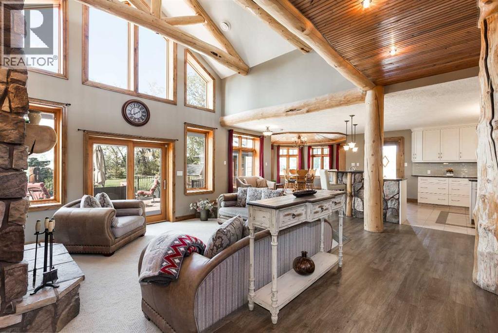This is a property you simply have to see to believe — there’s almost too much to describe! With over 4,000 sq. ft. of beautifully finished living space, plus a fully equipped in-law suite over the garage and a charming bunkhouse with its own bathroom, fireplace, and furnishings, this home feels like something straight out of *Yellowstone*. The craftsmanship, log beams, and rustic design blend seamlessly with the **breathtaking mountain views**, making this one of the most stunning properties in southern Alberta.Inside, every detail has been thoughtfully designed and meticulously maintained. Enjoy a fitness room with quality gym equipment (included), a games room with pool table, and a movie room complete with furnishings and entertainment system — all ready for your family and guests to enjoy.Step outside to your expansive wrap-around deck, crafted from durable composite decking and overlooking the manicured grounds. The outdoor living space is perfect for entertaining, featuring a swim spa, built-in cooktop and grill, and comfortable outdoor furniture — all set against a backdrop of open sky and natural beauty.The property is irrigated and features a pond, with a lake located just in front of the property as part of the neighboring parcel. A brand-new shop with two oversized bay doors and a 4-post lift offers endless possibilities for business, hobby, or storage.Everything here has been exceptionally maintained — from the **roof and siding to the **landscaping and paved driveway. The home is also equipped for peace of mind with a backup generator, available for purchase with the property.This truly is a once-in-a-lifetime opportunity to own a spectacular estate that combines luxury, functionality, and the natural beauty of southern Alberta — all at an incredible price. (id:28267)