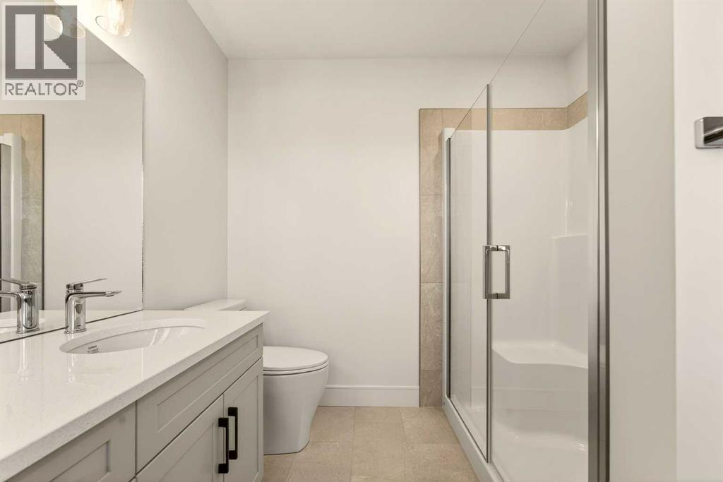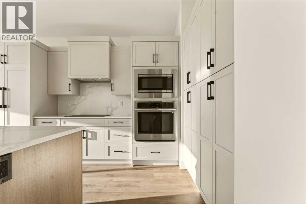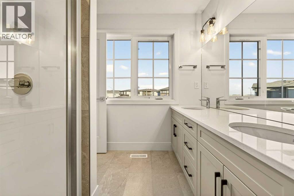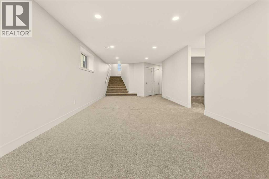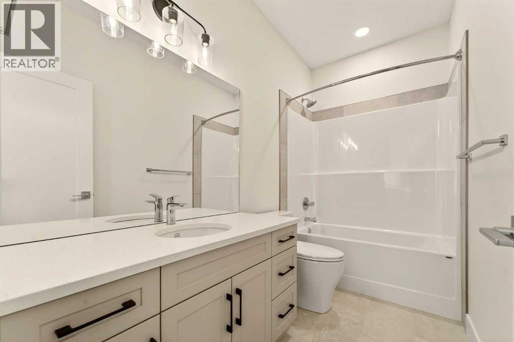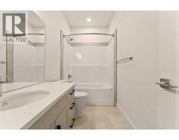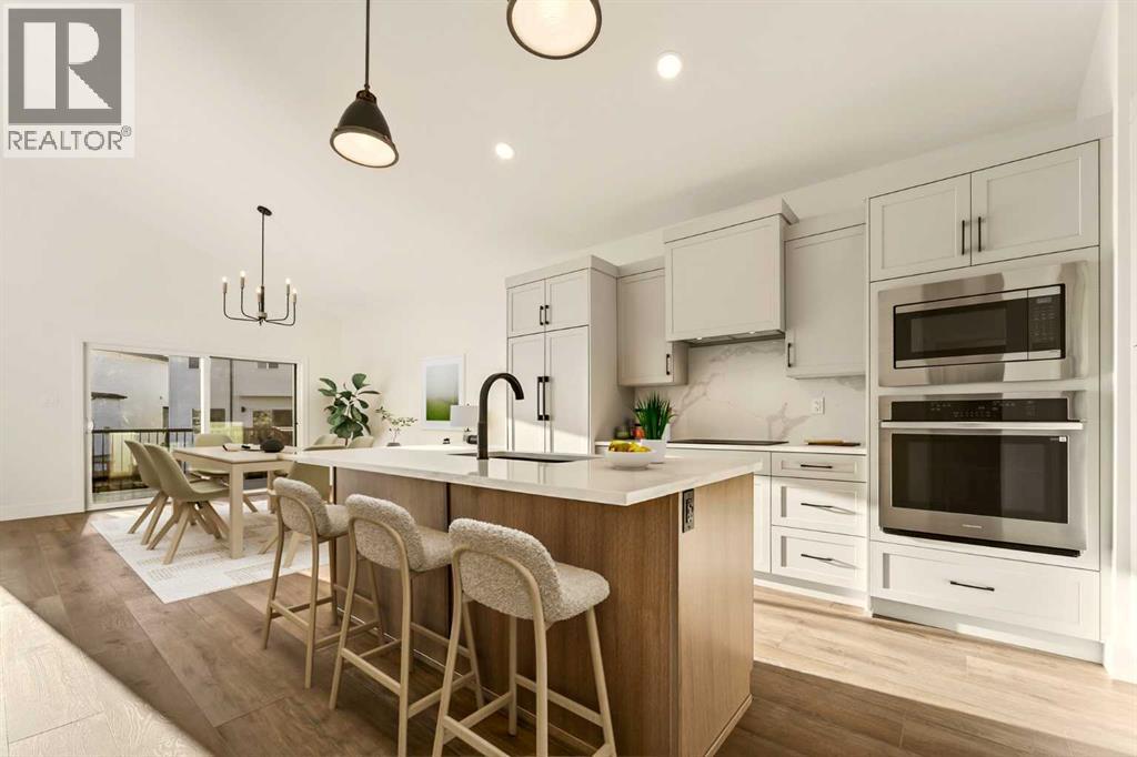 Welcome to a brand new, fully developed bi-level home built by Stranville Living Master Builder, complete with a walkout basement and finished deck, and located in one of Lethbridge’s most recreation-focused communities—Blackwolf. Tucked away on a quiet cul-de-sac, this home backs directly onto one of Blackwolf’s green strips and sits on an impressive pie-shaped lot, offering a rare combination of privacy, views, and outdoor space. Just minutes away is Legacy Park, widely regarded as the best family outdoor park in the city, making this location especially appealing for active households.The main floor is designed to impress the moment you step inside, with tall vaulted ceilings that immediately create a sense of openness and scale. The kitchen anchors the space and blends high-end finishes with thoughtful design, featuring quartz countertops, a panelled Fisher & Paykel fridge, a panelled dishwasher that disappears into the cabinetry, an induction cooktop, and built-in oven and microwave. It’s a clean, modern look that feels both elevated and practical. Adjacent to the kitchen, the dining area opens through sliding glass doors onto the finished deck, perfectly positioned to overlook the green strip and expansive backyard.The living room takes full advantage of the home’s setting with double-height windows that flood the space with natural light while framing the view and enhancing the dramatic ceiling height. Also on this level are two spacious bedrooms and a well-appointed four-piece bathroom, making the layout functional for families and guests alike.The primary bedroom is set on its own level, offering a sense of privacy that’s often hard to find. This retreat includes a spacious walk-in closet and a thoughtfully designed ensuite with dual vanities and a walk-in shower, creating a comfortable and refined space to unwind.The walkout basement is fully developed and extends the living space with two additional bedrooms and a large family room featuring slidi ng glass doors that open directly to the backyard. With direct access to the pie-shaped lot and green space beyond, this lower level feels bright, open, and seamlessly connected to the outdoors.Set in a community known for trails, parks, and lifestyle-focused design, this Blackwolf home delivers standout construction, a rare lot, and a layout that maximizes both space and setting. GST is included in the price, as well as a 10 year new home warranty, photos are virtually staged. (id:28267)