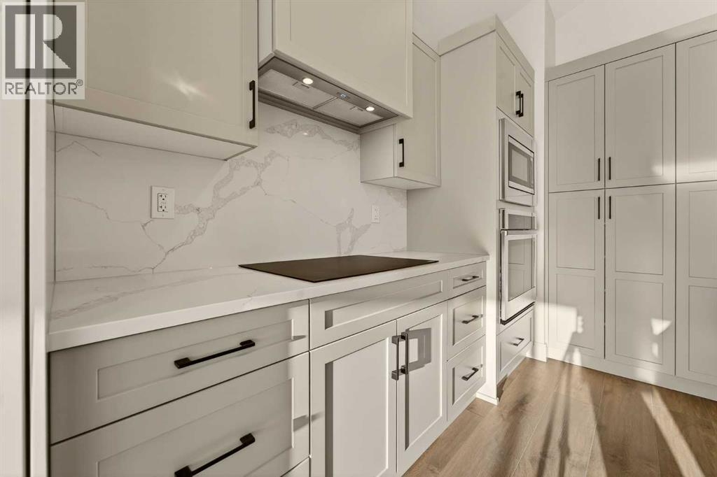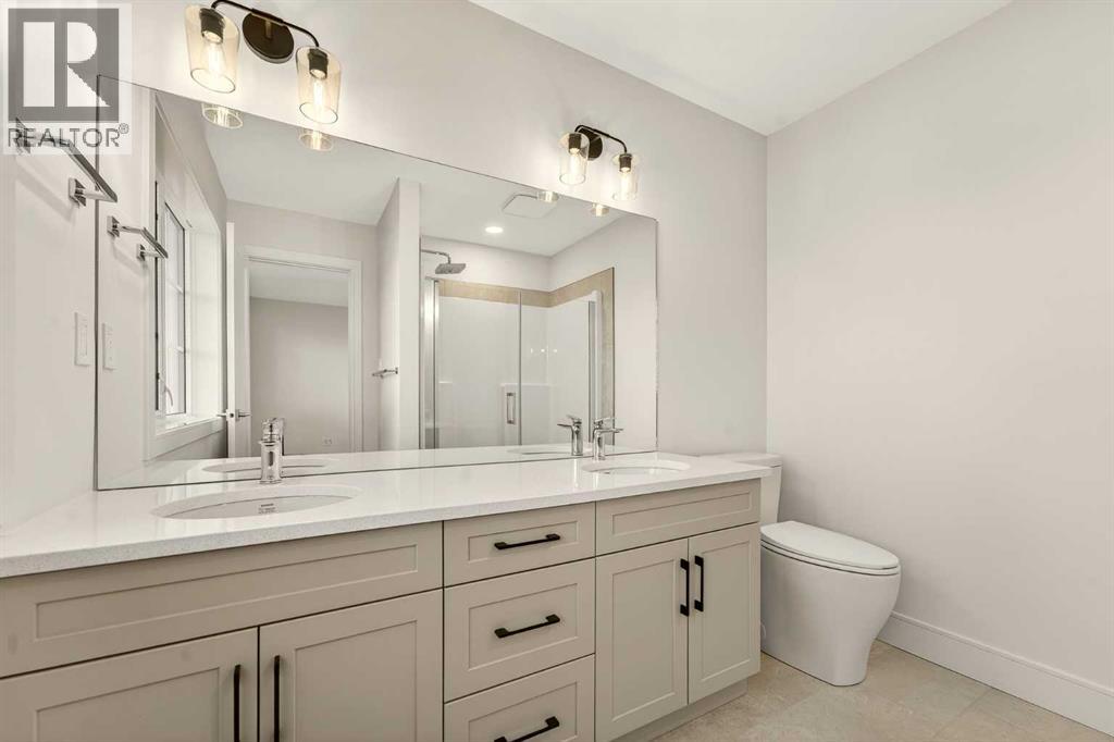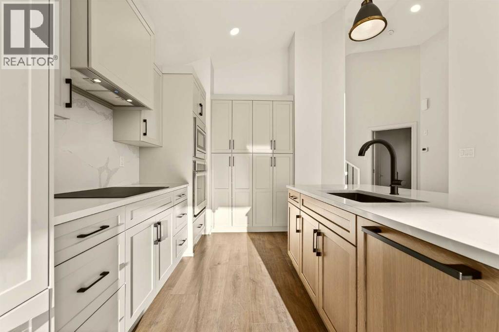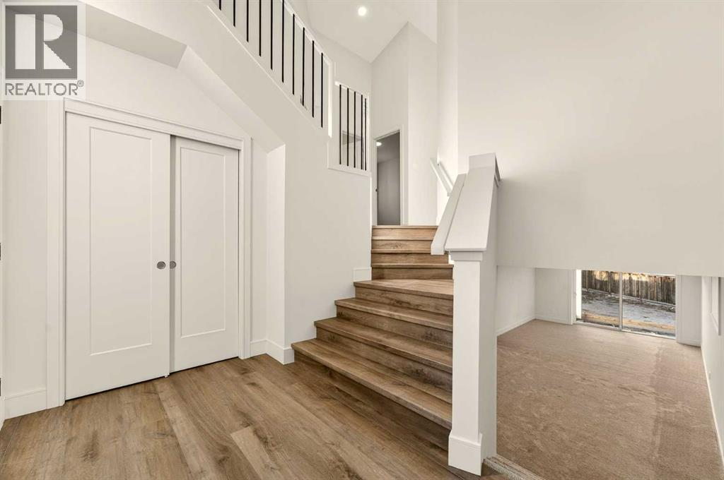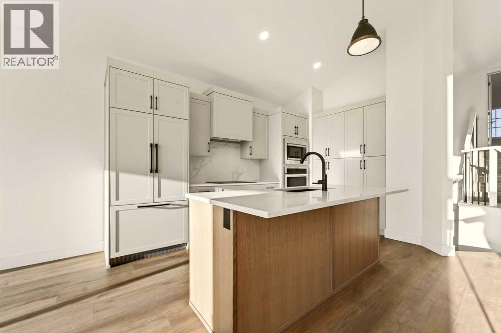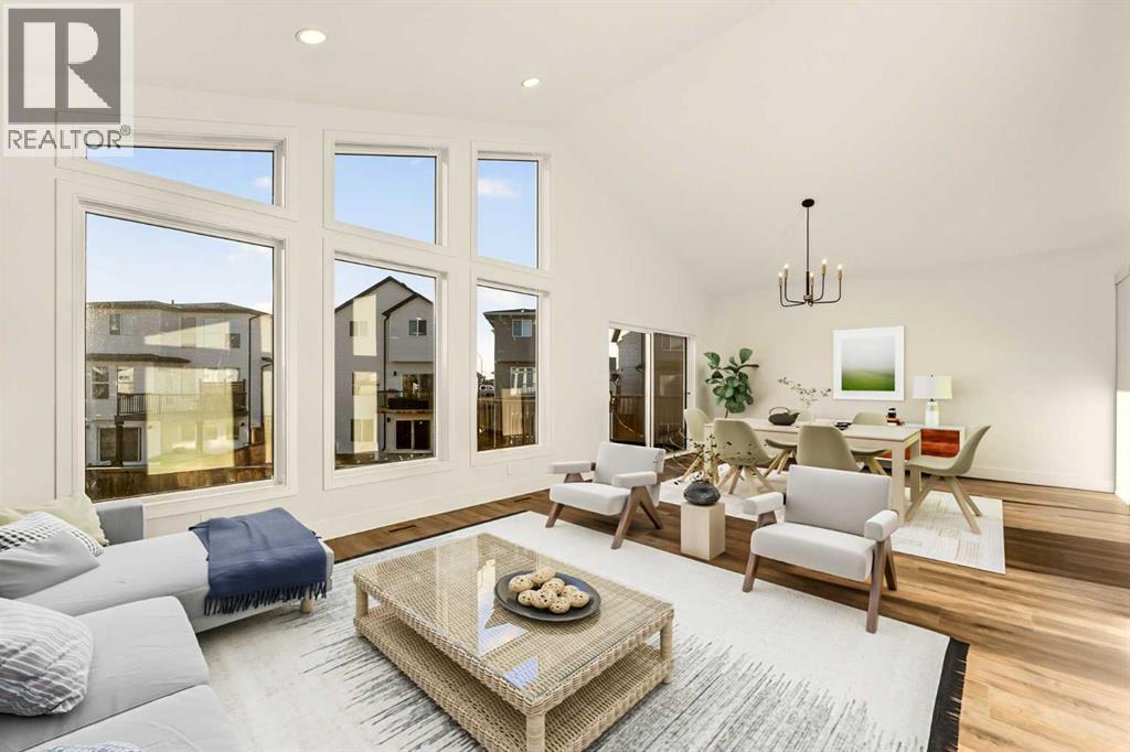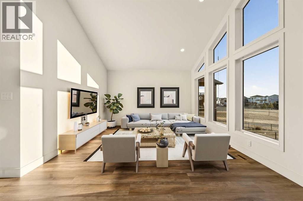 Welcome to a brand new, fully developed bi-level home built by Stranville Living Master Builder, complete with a walkout basement and finished deck, and located in one of Lethbridge’s most recreation-focused communities—Blackwolf. Tucked away on a quiet cul-de-sac, this home backs directly onto one of Blackwolf’s green strips and sits on an impressive pie-shaped lot, offering a rare combination of privacy, views, and outdoor space. Just minutes away is Legacy Park, widely regarded as the best family outdoor park in the city, making this location especially appealing for active households.The main floor is designed to impress the moment you step inside, with tall vaulted ceilings that immediately create a sense of openness and scale. The kitchen anchors the space and blends high-end finishes with thoughtful design, featuring quartz countertops, a panelled Fisher & Paykel fridge, a panelled dishwasher that disappears into the cabinetry, an induction cooktop, and built-in oven and microwave. It’s a clean, modern look that feels both elevated and practical. Adjacent to the kitchen, the dining area opens through sliding glass doors onto the finished deck, perfectly positioned to overlook the green strip and expansive backyard.The living room takes full advantage of the home’s setting with double-height windows that flood the space with natural light while framing the view and enhancing the dramatic ceiling height. Also on this level are two spacious bedrooms and a well-appointed four-piece bathroom, making the layout functional for families and guests alike.The primary bedroom is set on its own level, offering a sense of privacy that’s often hard to find. This retreat includes a spacious walk-in closet and a thoughtfully designed ensuite with dual vanities and a walk-in shower, creating a comfortable and refined space to unwind.The walkout basement is fully developed and extends the living space with two additional bedrooms and a large family room featuring slidi ng glass doors that open directly to the backyard. With direct access to the pie-shaped lot and green space beyond, this lower level feels bright, open, and seamlessly connected to the outdoors.Set in a community known for trails, parks, and lifestyle-focused design, this Blackwolf home delivers standout construction, a rare lot, and a layout that maximizes both space and setting. GST is included in the price, as well as a 10 year new home warranty, photos are virtually staged. (id:28267)