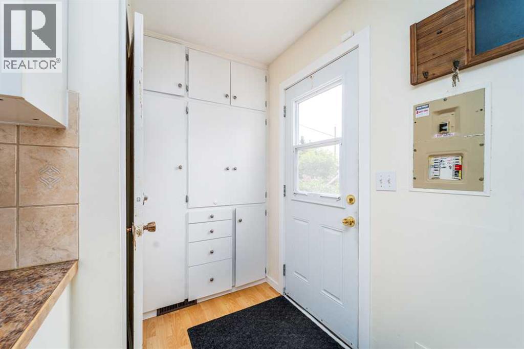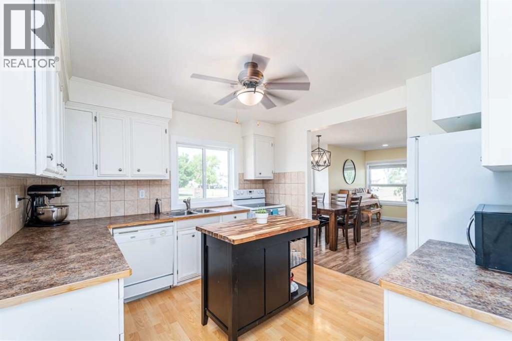 Welcome to this charming bungalow in the heart of Taber, offering both affordability and comfort. With 926 sq. ft. of living space, this 2-bedroom, 1-bathroom home is ideal for those looking to downsize, invest, or step into their very first property.Inside, you’ll find a bright and inviting main floor where the living room, dining area, and kitchen flow together seamlessly. The home has been thoughtfully updated over the years with new electrical on the main floor, fresh paint, updated flooring, blinds, a newer vanity and toilet, and a hot water tank installed in 2018. Even the sump pumps have been updated—peace of mind included, the roof has also been scheduled to be replaced.The lower level provides laundry and extra storage, keeping the main floor clutter-free. Step outside to enjoy a generous backyard featuring mature trees, a firepit, and a covered concrete pad—perfect for shade in the summer or a cozy spot to unwind in the evenings. And yes, there’s central air conditioning to keep you cool during Southern Alberta’s hot summers.The property also comes with a single detached garage and off-street parking. Located on a corner lot, the home enjoys extra yard space, privacy, and convenient access to local amenities including parks, schools, and shopping. Photos are virtually staged. (id:28267)