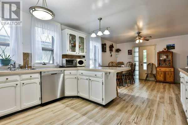 2-Storey Character Home on a Corner Lot in Taber, ABDiscover the charm of small-town living in this 2-storey character home on a corner lot. This home was built in 1912, and has 2,076 sq. ft. Step onto the wraparound front porch, perfect for enjoying morning coffee or relaxing in the evening. Inside, the main floor boasts a spacious kitchen with ample cabinets, generous counter space, and an eating bar—ideal for entertaining or casual meals. The adjoining dining room features large windows that fill the space with natural light, while the oversized living room has a cozy gas fireplace and an elegant bay window. A convenient half bathroom completes the main floor.A spiral staircase leads to the upper level, where you’ll find three generously sized bedrooms and a full bathroom. The primary bedroom has hidden laundry chute and plumbing to add a sink in the built-in vanity, along with more plumbing beside the vanity to start your ensuite reno. The fully developed basement offers even more living space, with a large family room, a fourth bedroom, a 3-piece bathroom, laundry area, and a dedicated storage room. Thoughtful features include two furnaces—one dedicated to the upper floor and one for the main and basement levels—as well as two laundry chutes for added convenience.Outside, enjoy a landscaped yard with a garden area. Parking and storage are no issue with both a double attached garage and a double detached garage.This one-of-a-kind home offers character, space, and functionality—all within a quiet, friendly community. Don’t miss your chance to make it yours! (id:28267)