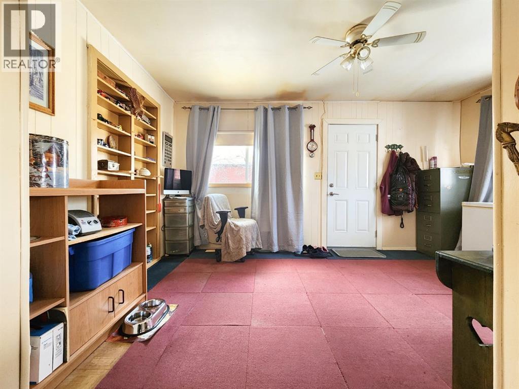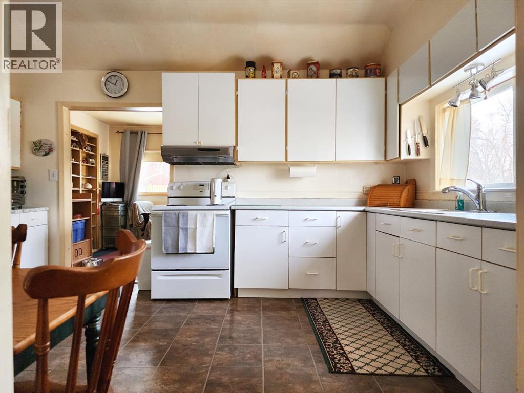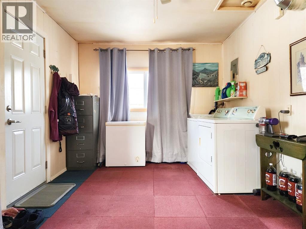 This affordable, well-maintained single-level bungalow offers approximately 1,262 sq. ft. of comfortable living space with 2 bedrooms and 1 bathroom—ideal for seniors, retirees, or young families.Step inside to a bright and spacious living and dining area featuring a charming built-in china cabinet. The kitchen offers white cabinetry and a cozy dining area, perfect for everyday meals. Just off the kitchen are two well-sized bedrooms and a four-piece bathroom. The main level is completed by a large laundry, boot, coat, and storage room conveniently located off the back entrance.Additional highlights include a detached garage, some updated windows, and a spacious lot. Located in the welcoming Town of Claresholm—known for its small-town charm, excellent schools, hospital, golf course, and strong sense of community—this home is set in a quiet area with a fully fenced yard and mature trees providing privacy and a peaceful outdoor setting. Enjoy the convenience of being close to downtown, schools, local restaurants, shops, parks, the public library, and all amenities. (id:28267)